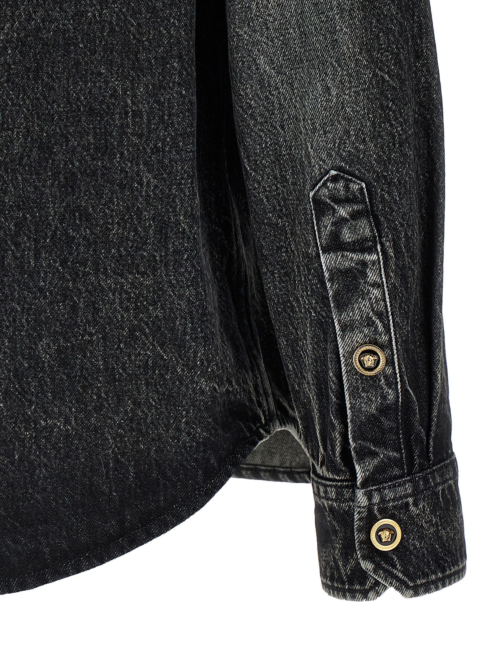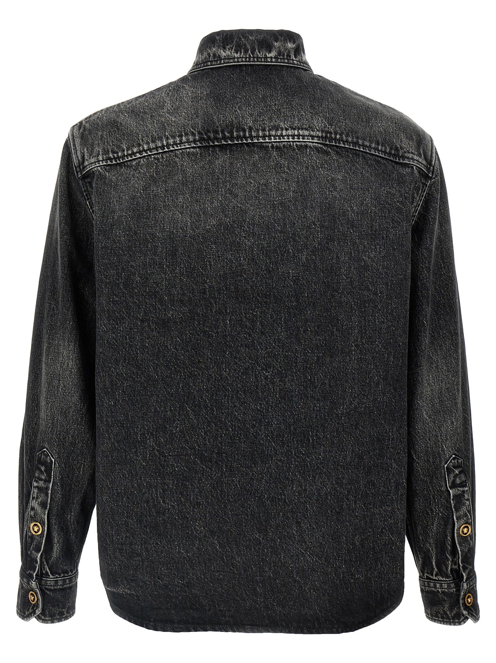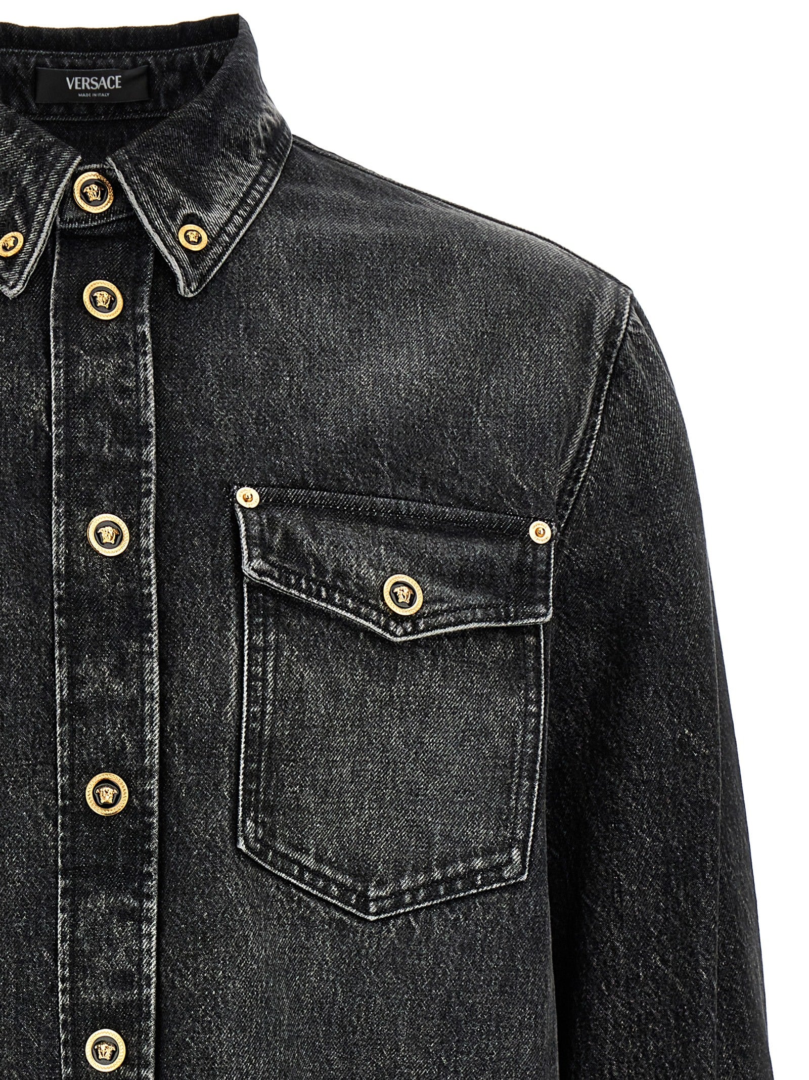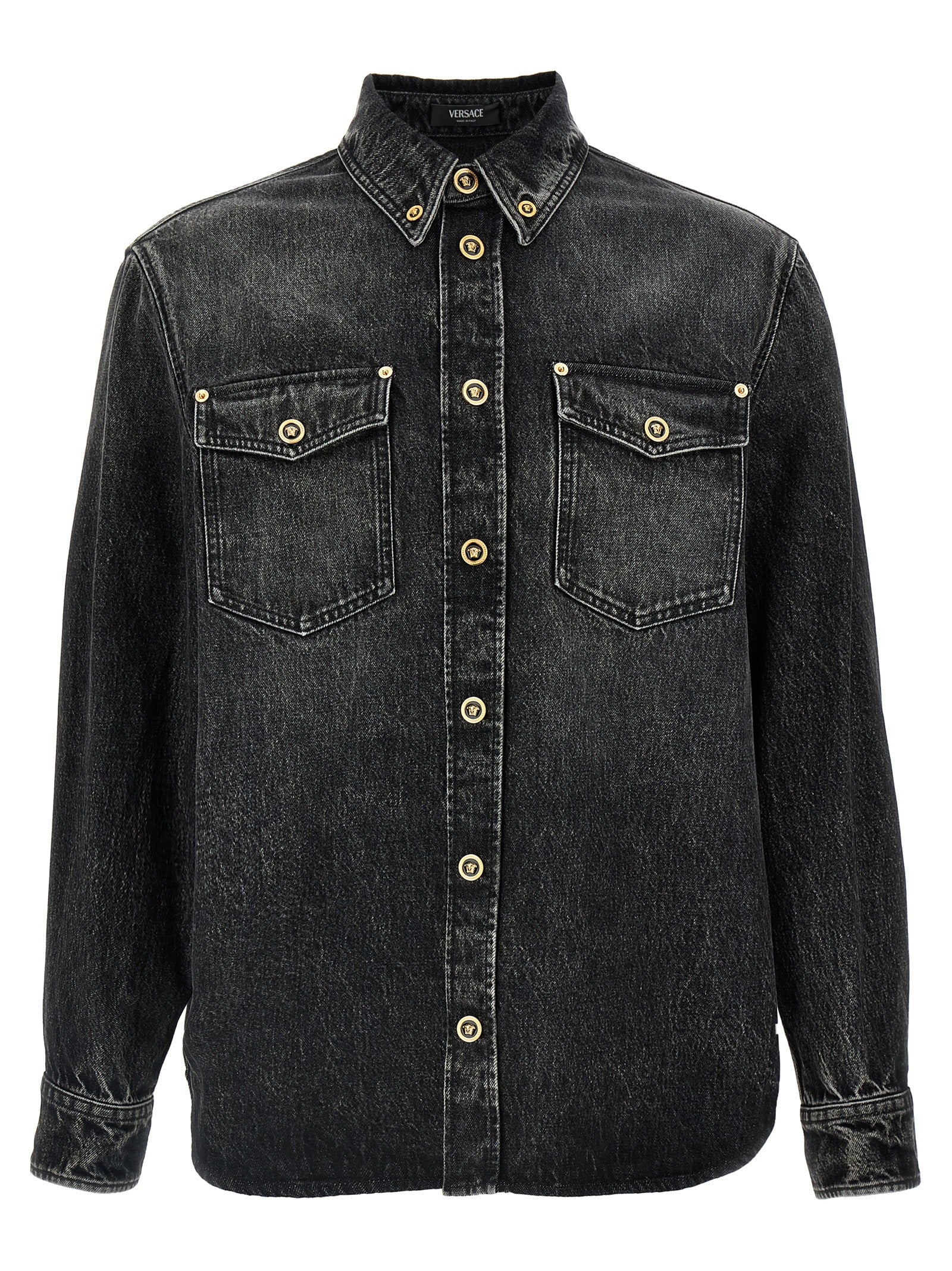 Stonewash Cotton Denim 셔츠, 버튼 다운 모델, 'Medusa'스냅 버튼 폐쇄, 포켓, 긴 커프 소매.