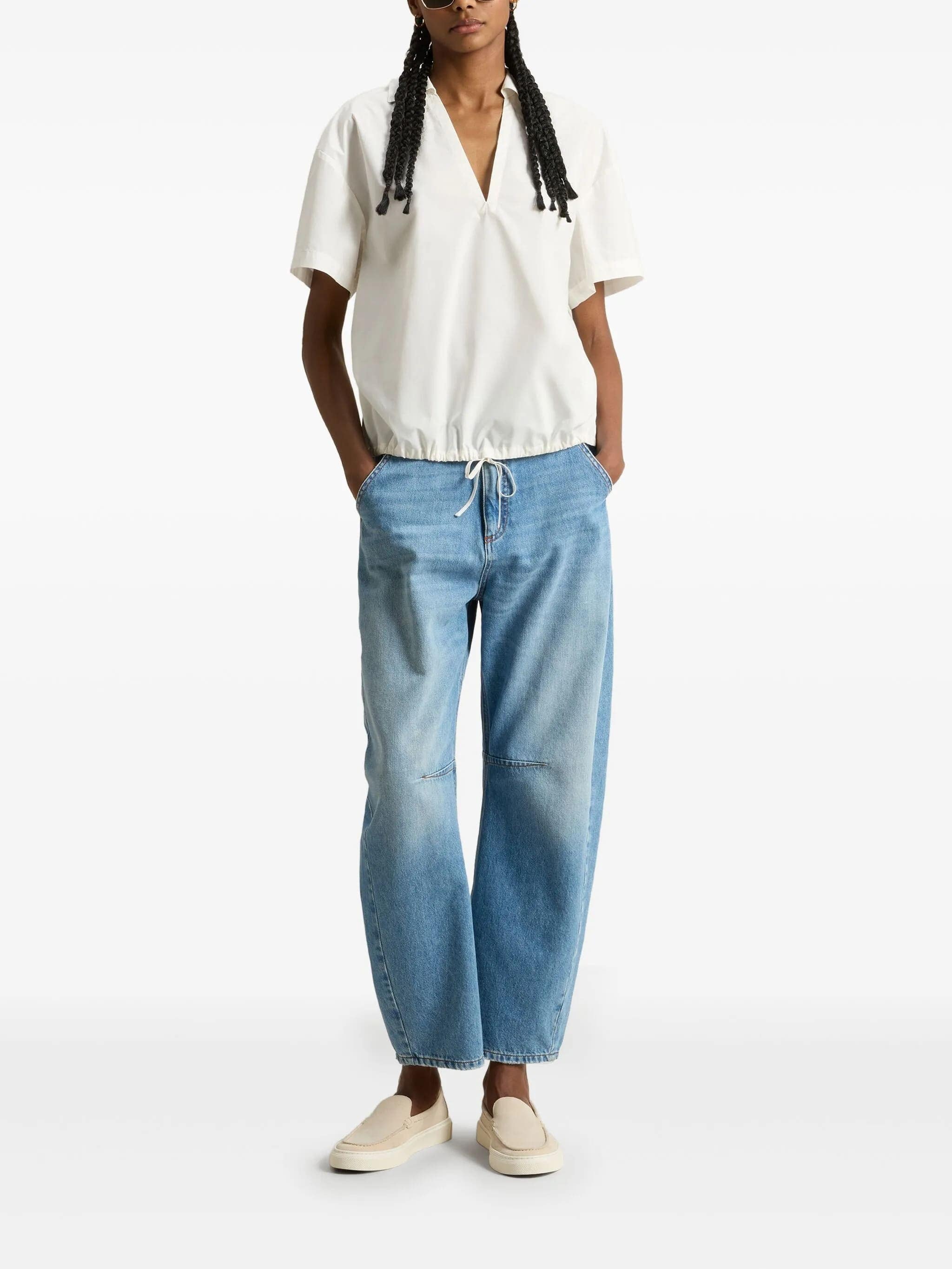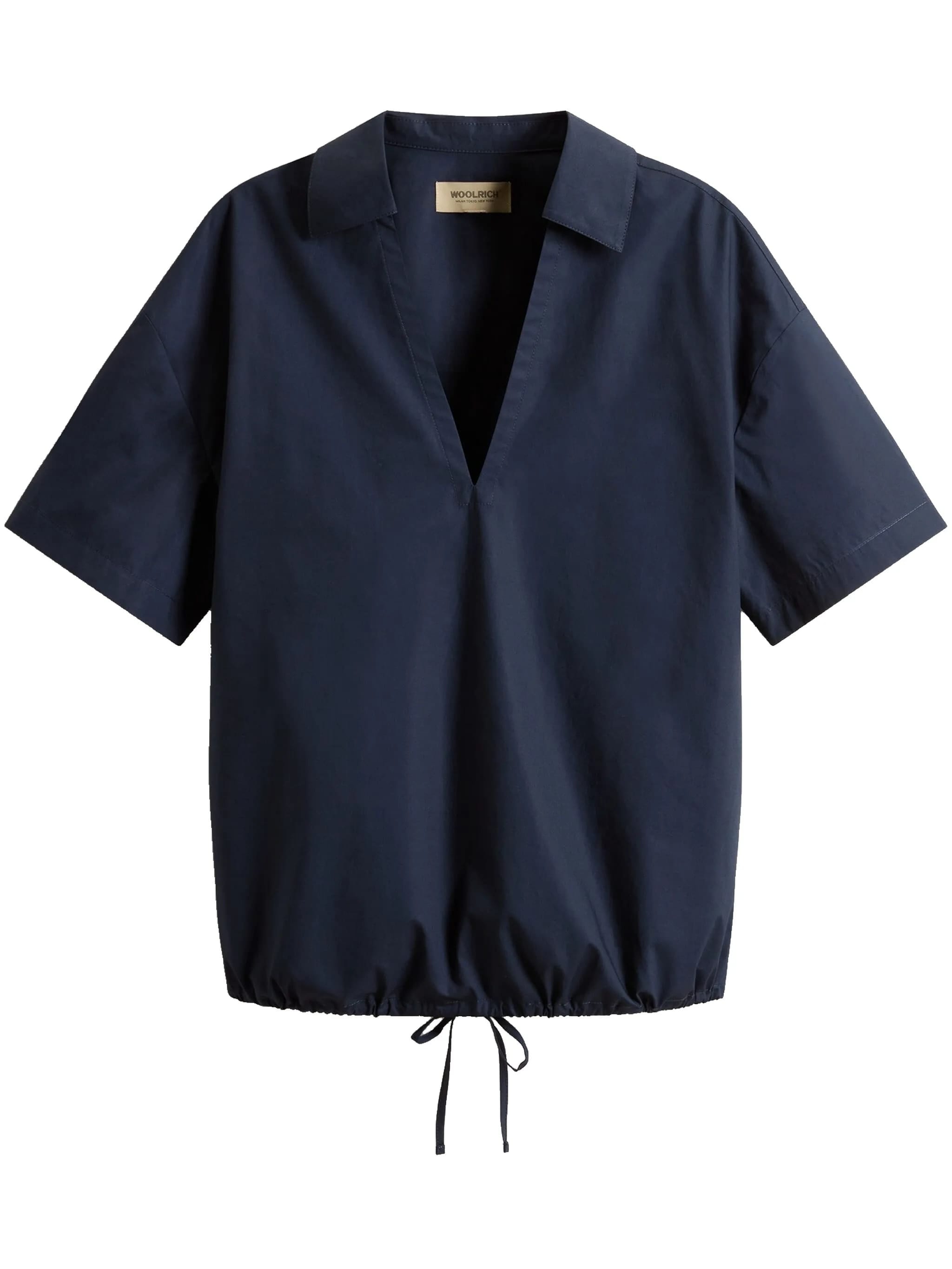 이 순수한면 포플린 블라우스는 편안함과 우아함을 결합합니다. 클래식 한 칼라와 V- 넥은 정교함을 더하며 큰 짧은 소매는 신선함과 자유를 제공합니다. 바닥의 조절 가능한 드로 스트링을 사용하면 착용감을 사용자 정의 할 수 있으므로 다재다능하고 여성스러운 의복이됩니다.