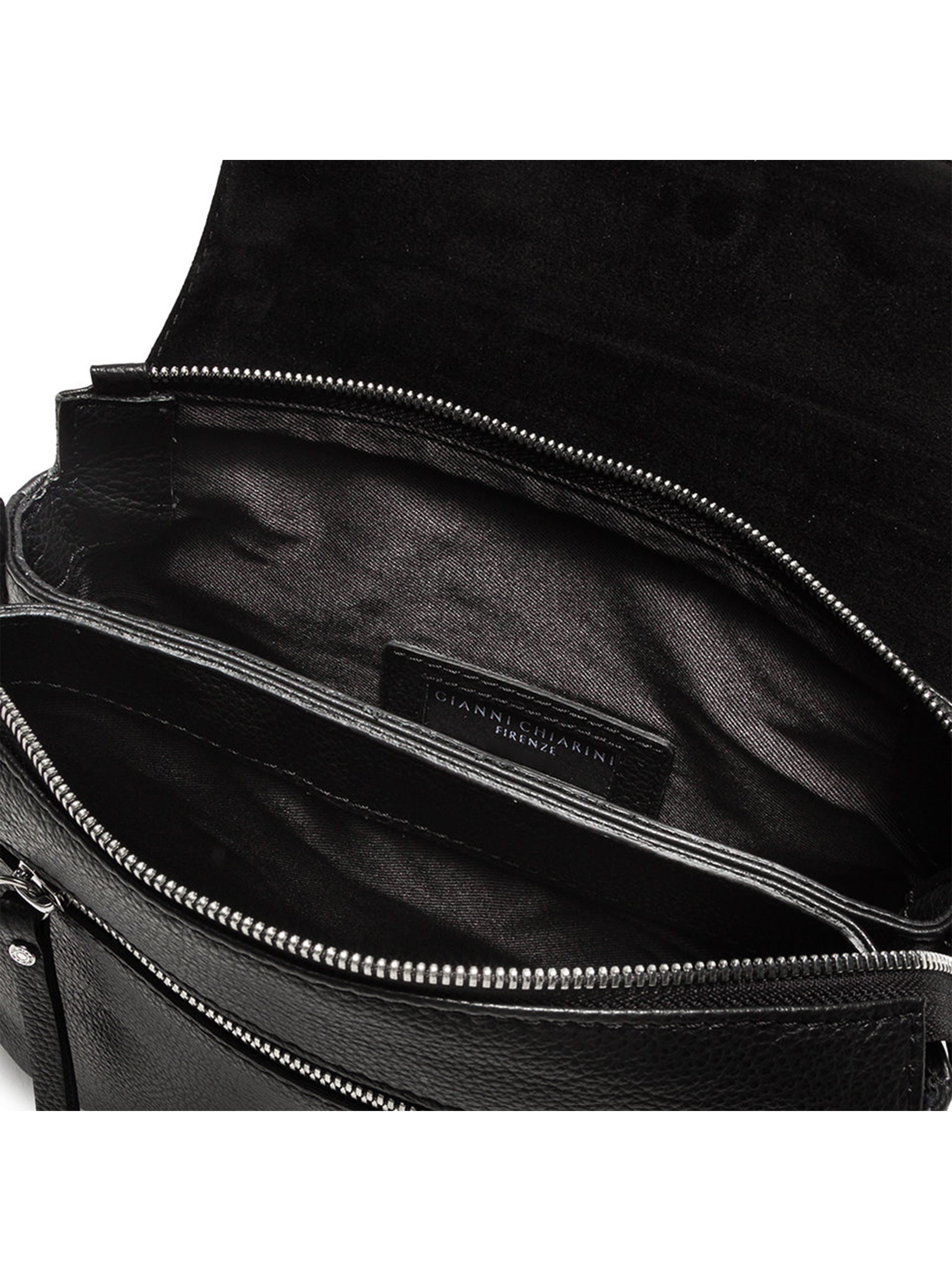 La borsa Three di Gianni Chiarini Firenze è un accessorio versatile in pelle martellata, ideale da portare a mano o con la sottile tracolla in pelle. Con il suo design giovane e moderno, arricchito da zip a contrasto, è perfetta per completare outfit casual o eleganti.