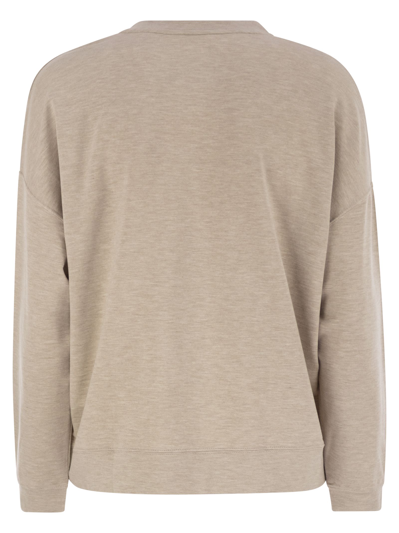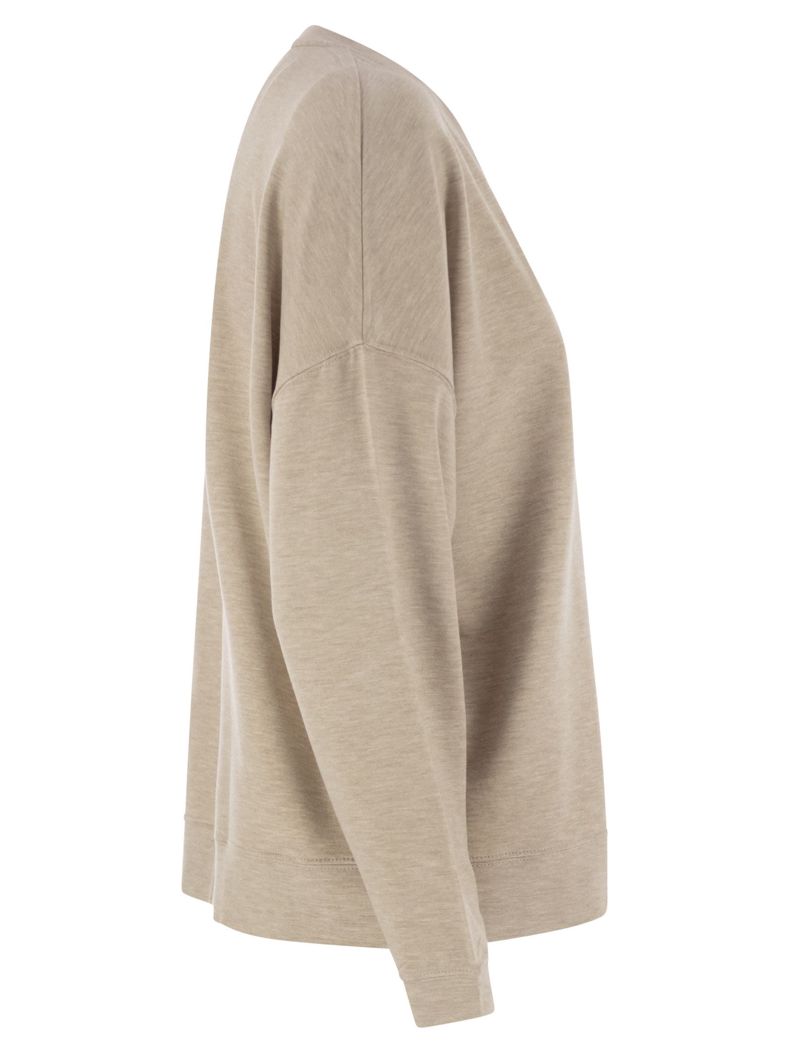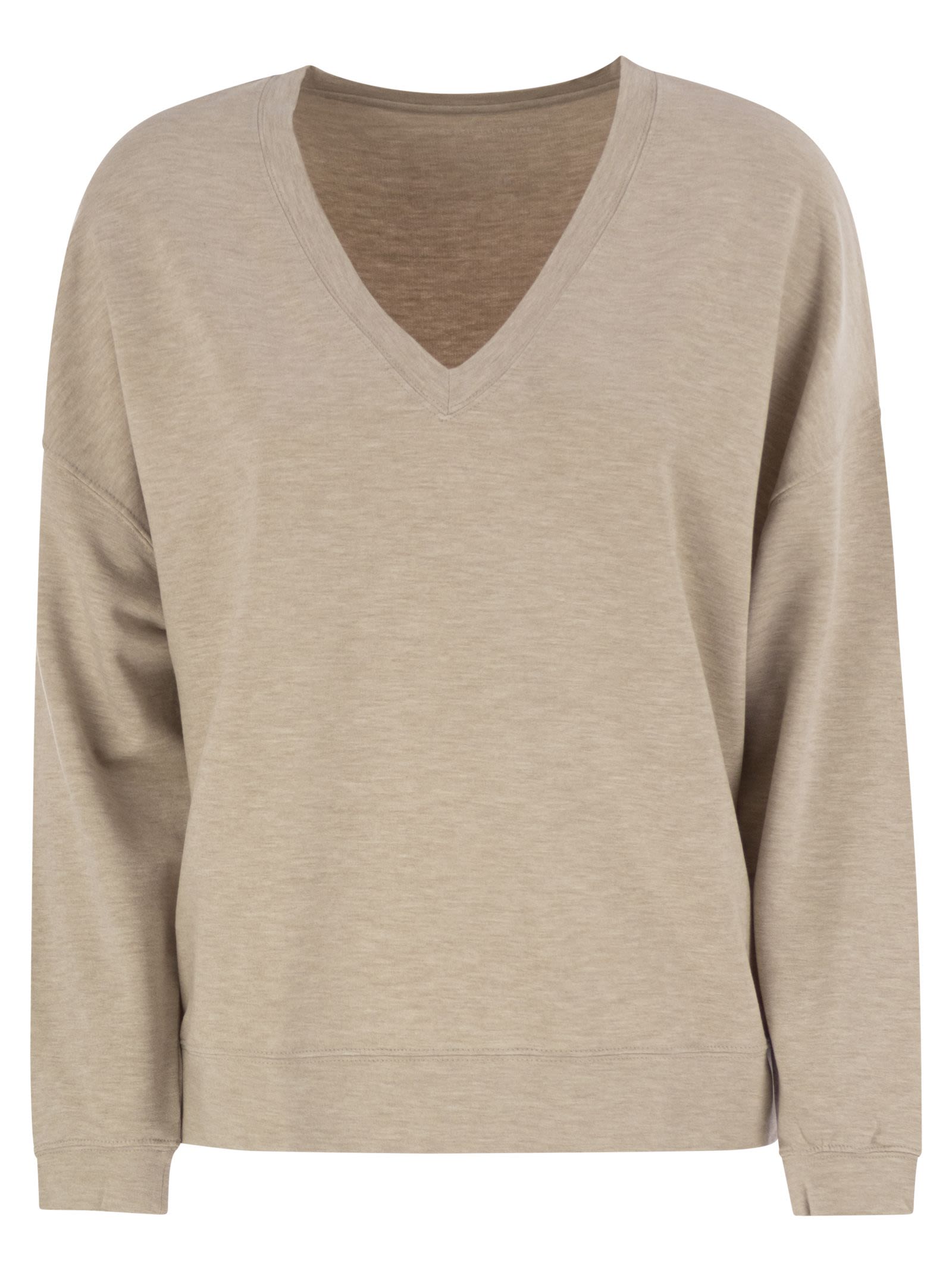 Lange mouwen trui met V-hals: een praktisch en modern kledingstuk, perfect voor het dagelijks leven. De samenstelling van viscose en elastaan ​​maakt ze bijzonder knus en zacht aanvoelen. Viscose, een materiaal dat is afgeleid van houtvezel, lijkt erg op zijde in zijn vloeibaarheid. De vervenprestaties bieden briljante kleuren die hun helderheid niet verliezen met wassen. De compositie met Elastane biedt nog meer zachtheid en comfort in beweging. - V -neckline - Gevlekte schouder - Regelmatig fit Designer ID: E25M003FSW078 386