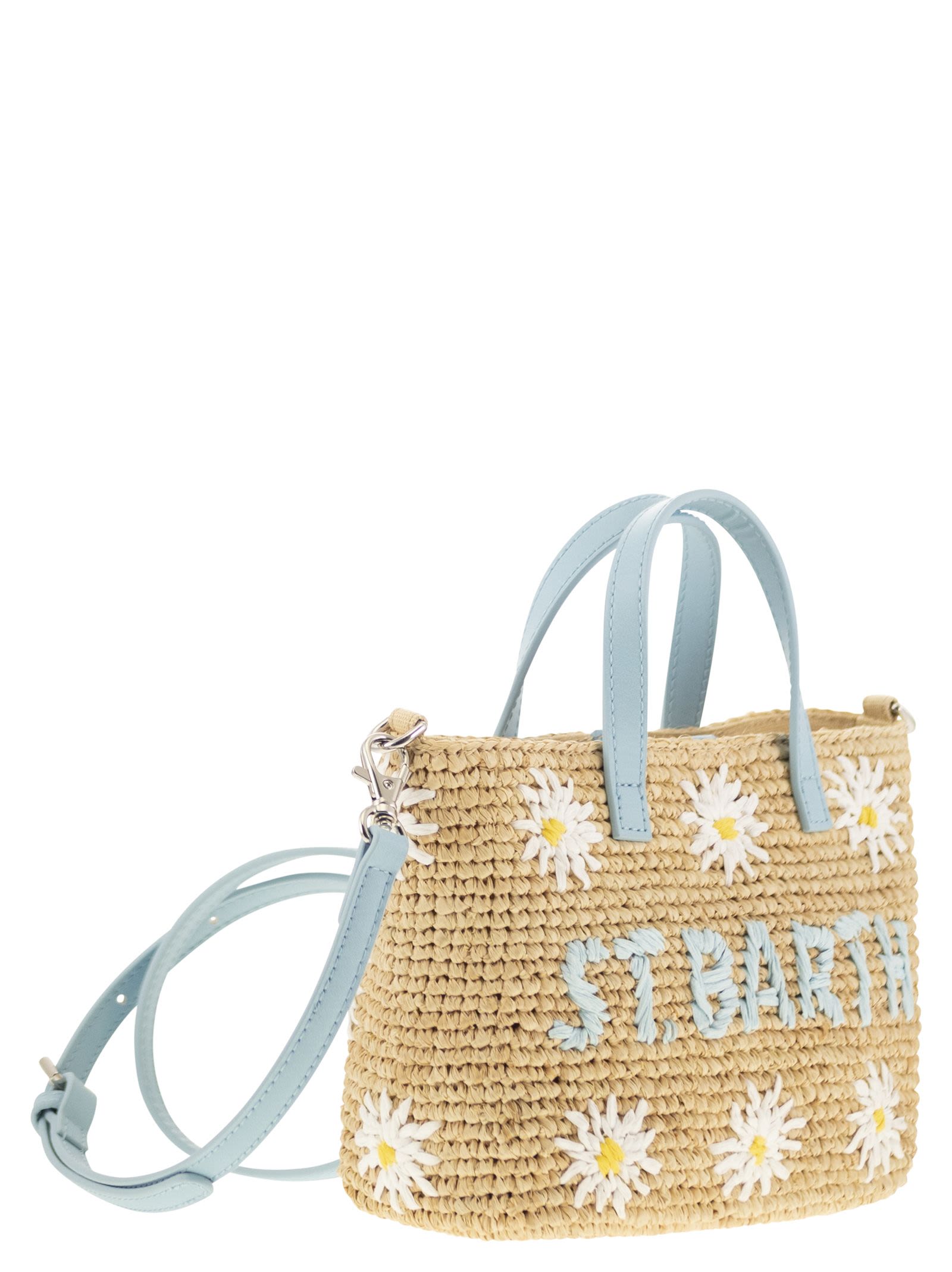 Introducing the mini raffia bag. A natural raffia bag decorated with intricate and exclusive Saint Barth logo embroidery on the front. This versatile bag has an adjustable and detachable shoulder strap. With its size, it offers space for all the day's necessities. - Natural raffia bag - Exclusive Saint Barth logo embroidery - Flower print - Adjustable and detachable shoulder strap DESIGNER ID: RAFC003 03993H