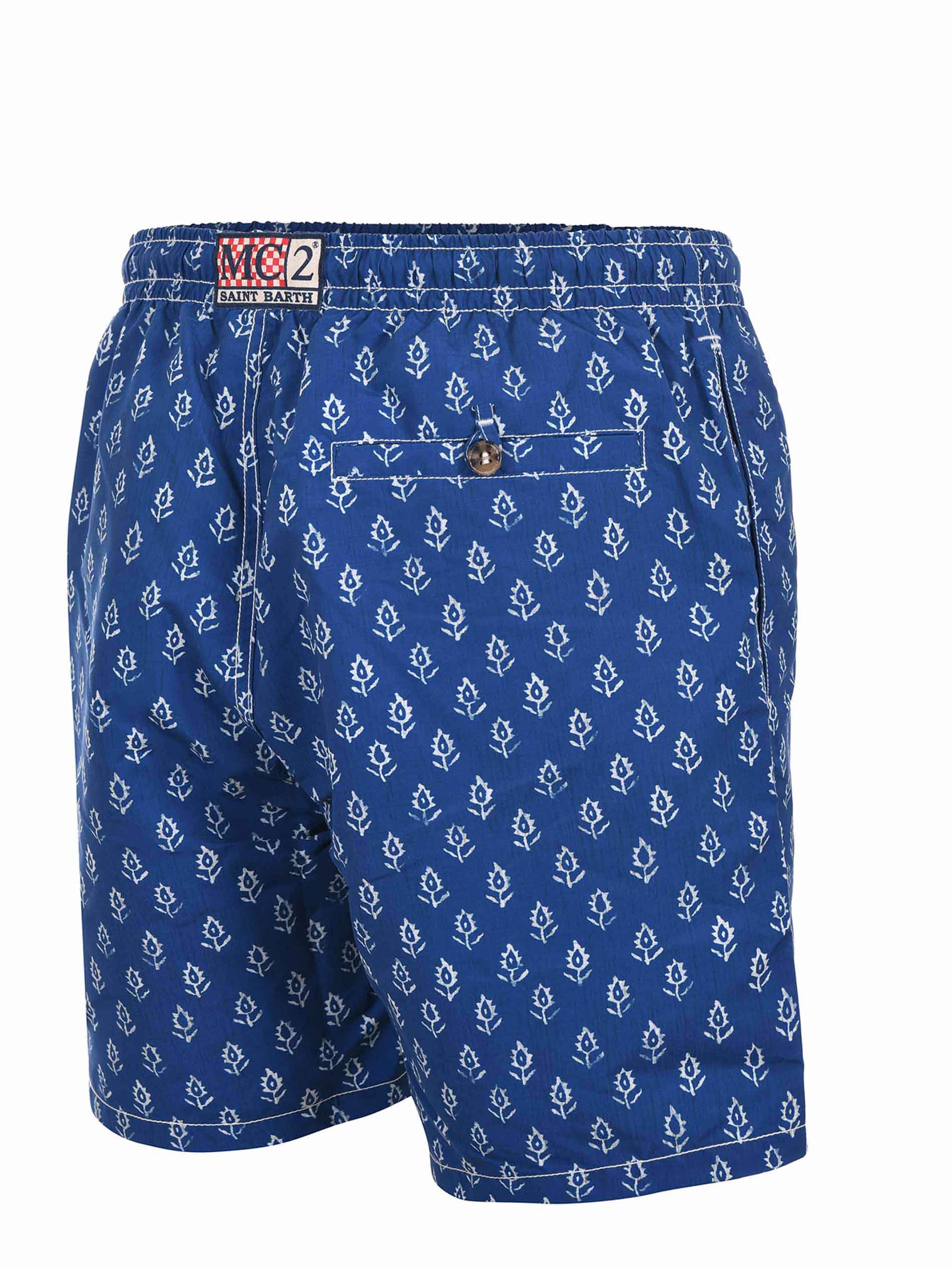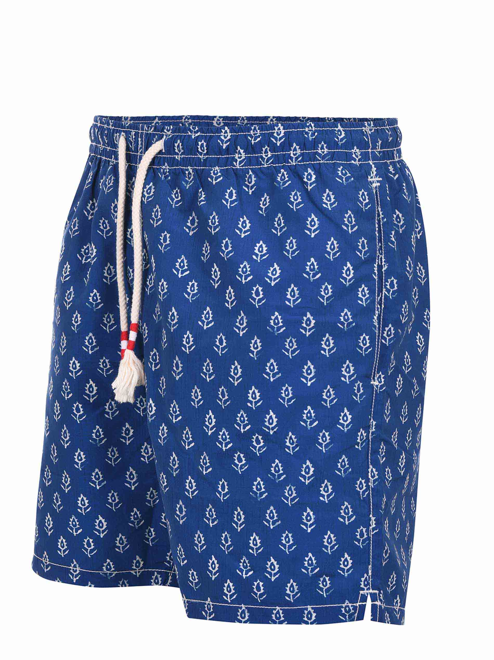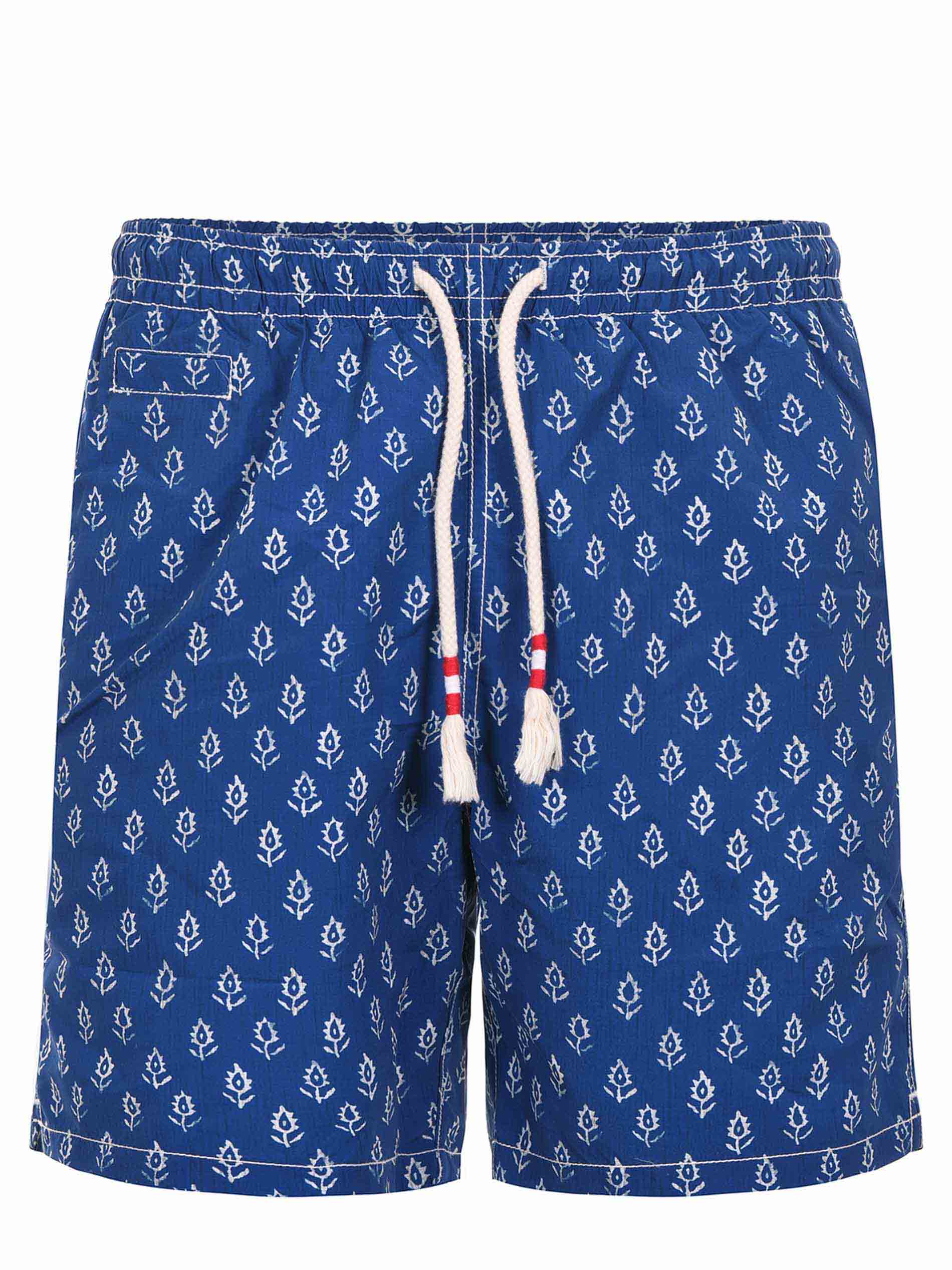 MC2 Saint Barth Swimsuit in Blue Nylon. "Floral Paisley" afdrukken op het hele oppervlak. Elastische taille met trekkoord. Mesh voering. Weltzakken. Achterzak met knop. Grootte in foto M 100% polyester