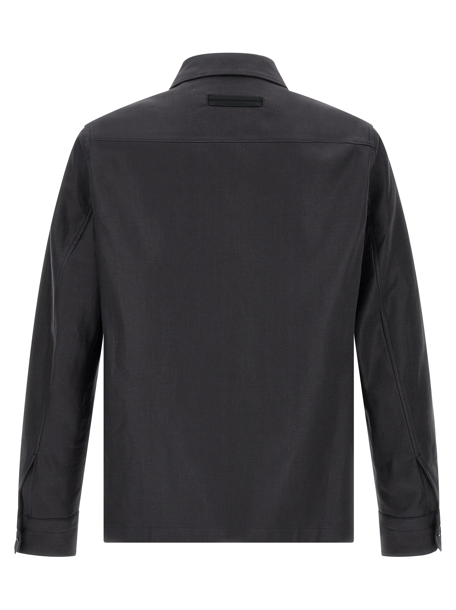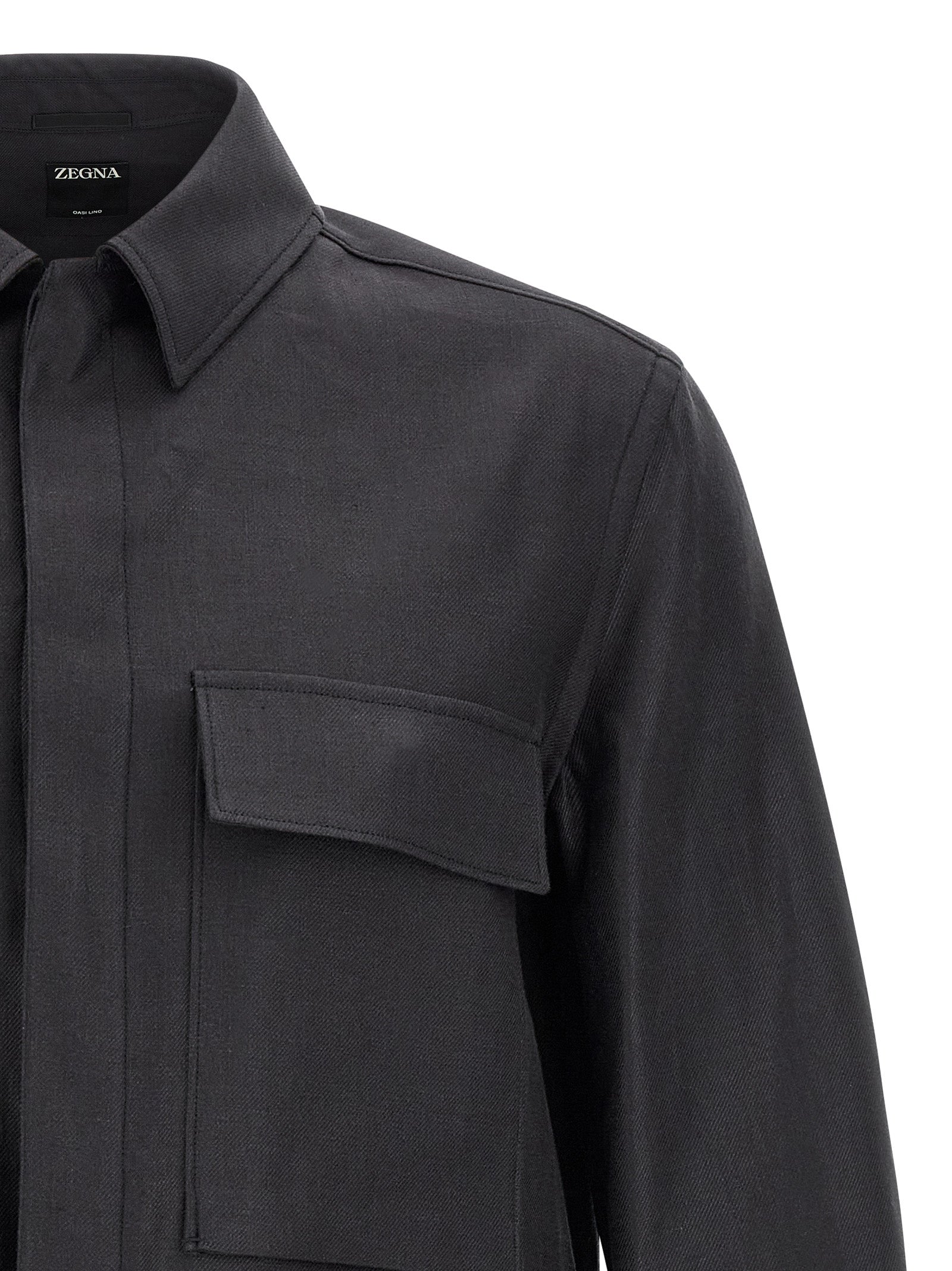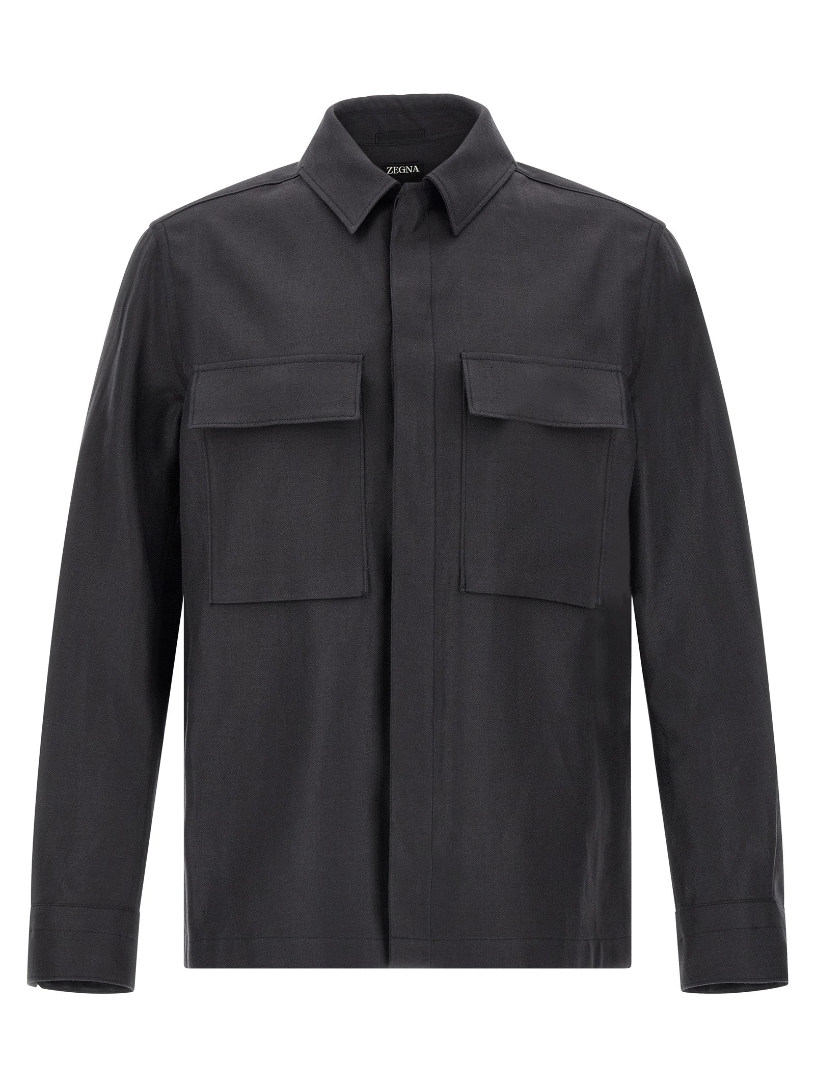 'Oasi' linnen overschrijden met knopsluiting, zakken, lange manchethonden, zijspleuten.