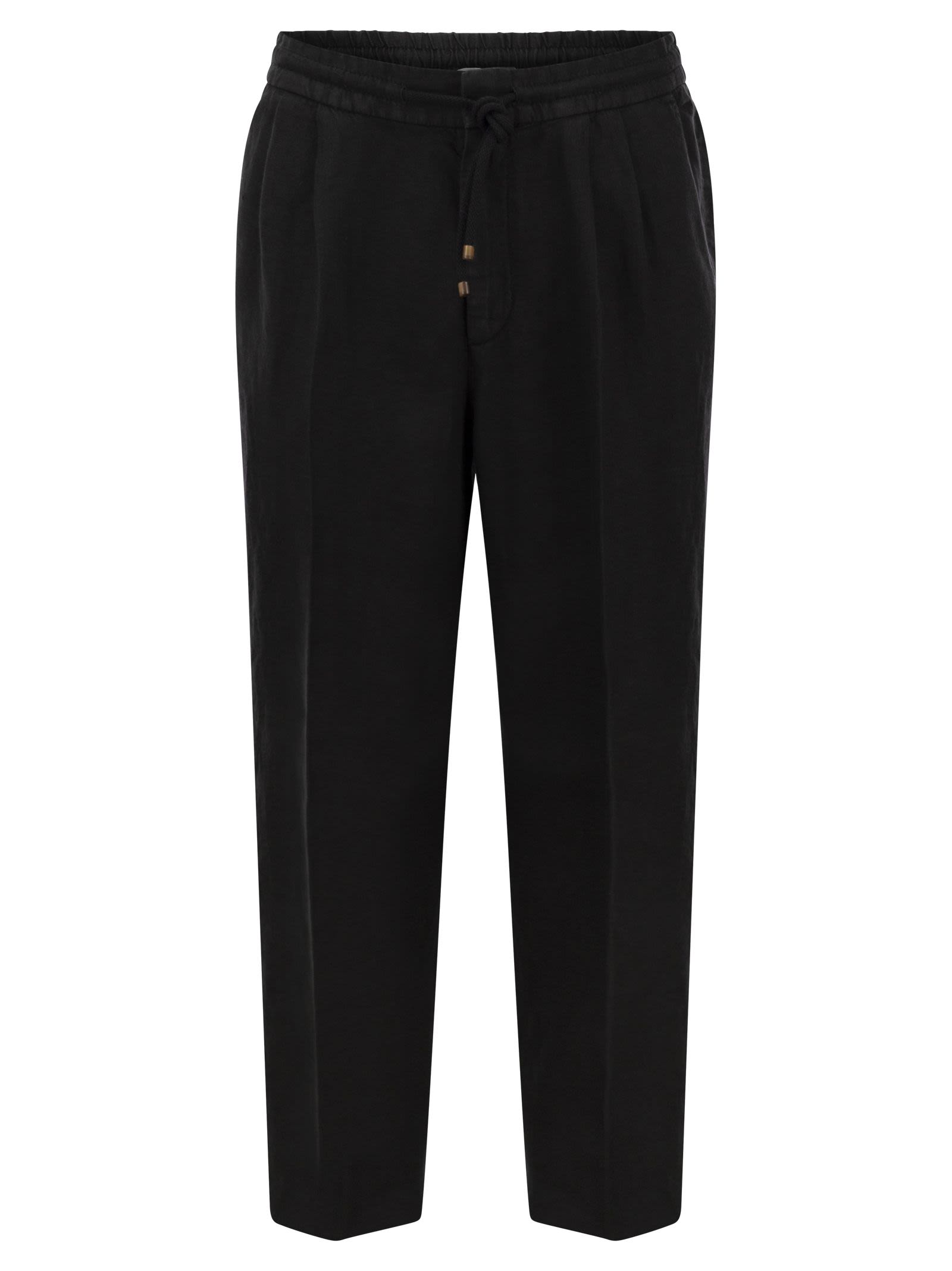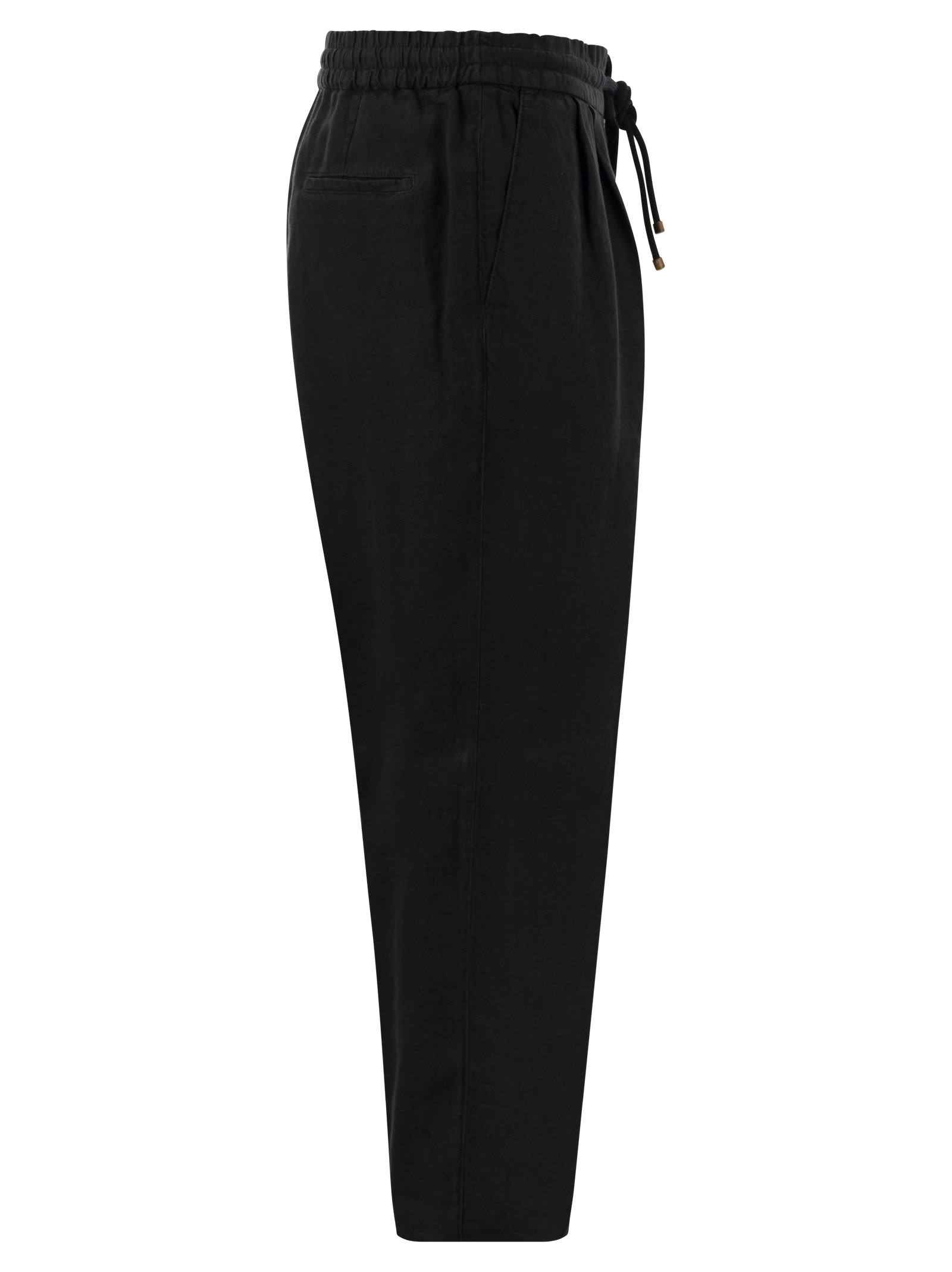 Brunello Cucinelli Leisure Fit broek in kleding geverfd linnen gabardine met trekkoord en dubbele darts