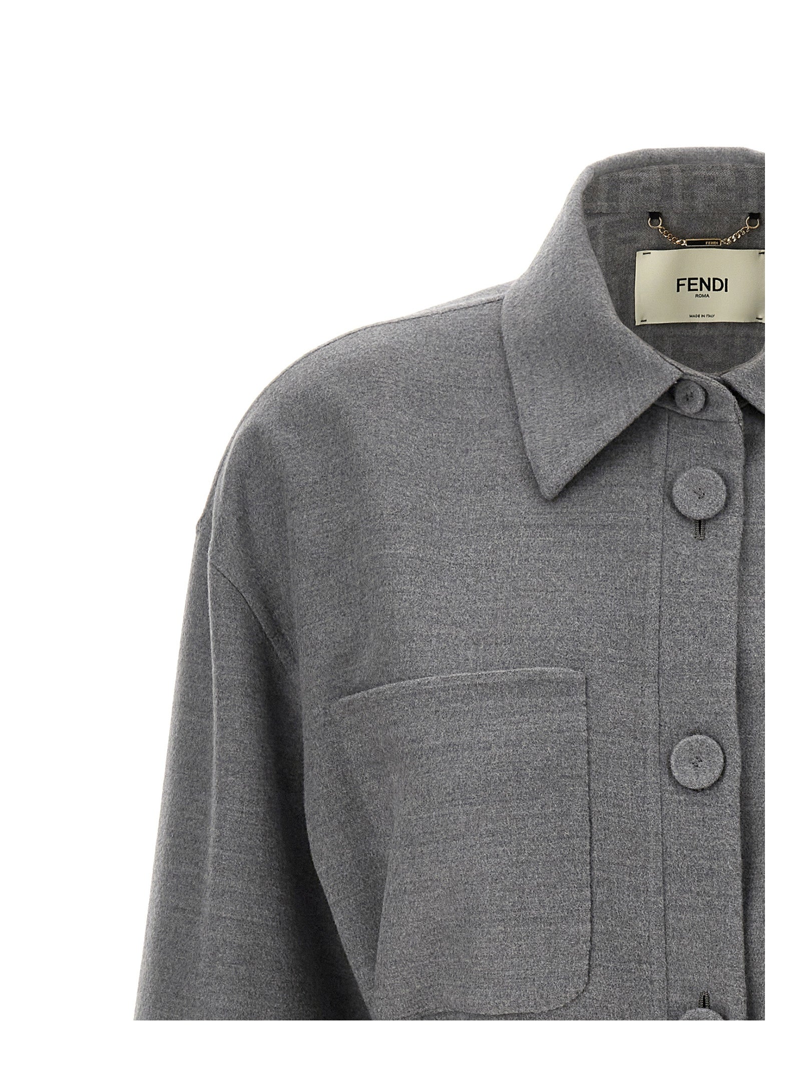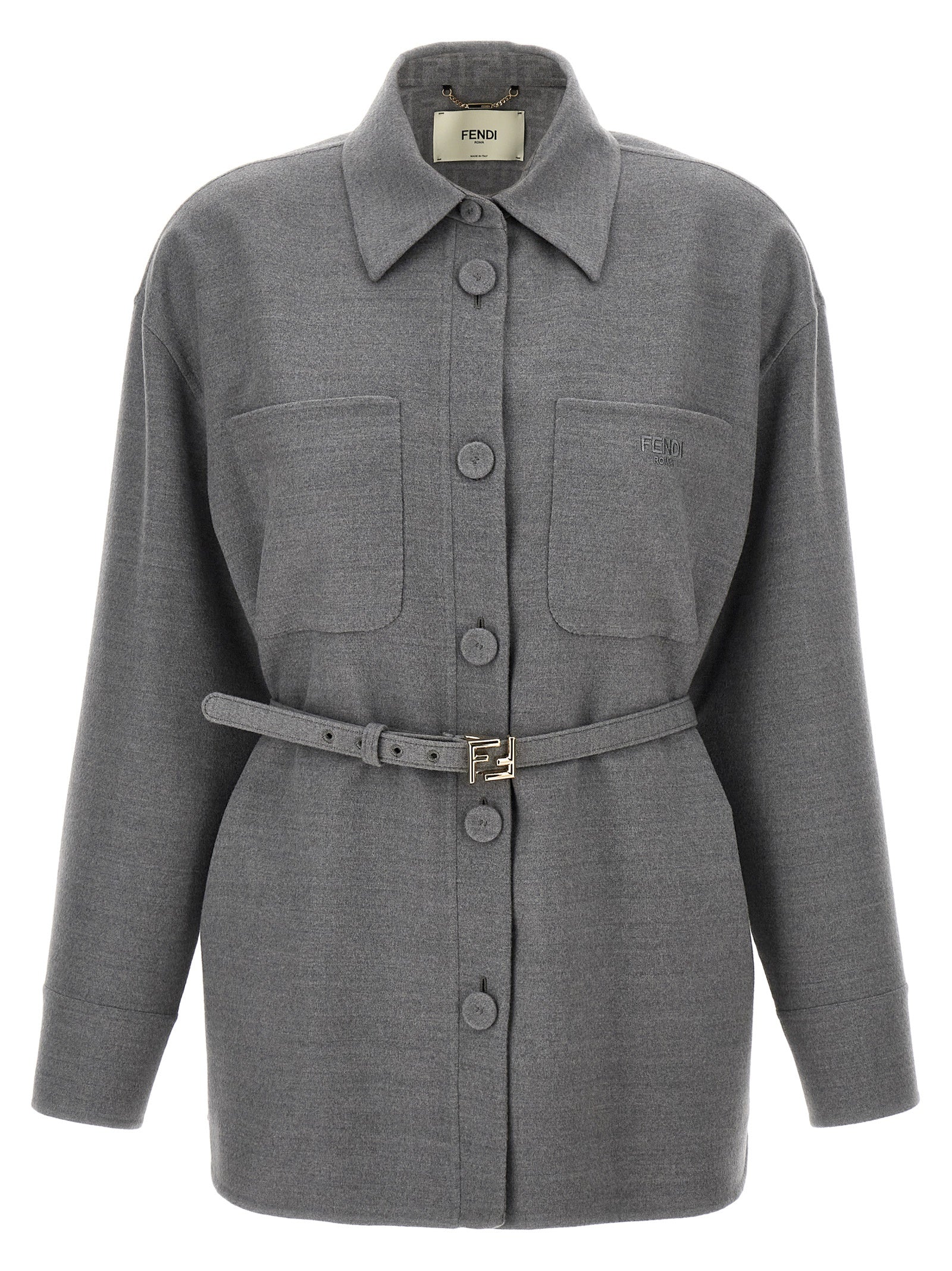 Go-to 'wollen jasje met shirt kraag, knoopsluiting, voorste borstzakken met een toon-op-tone geborduurd logo en verstelbare en verwijderbare FF metalen gesp gordel.