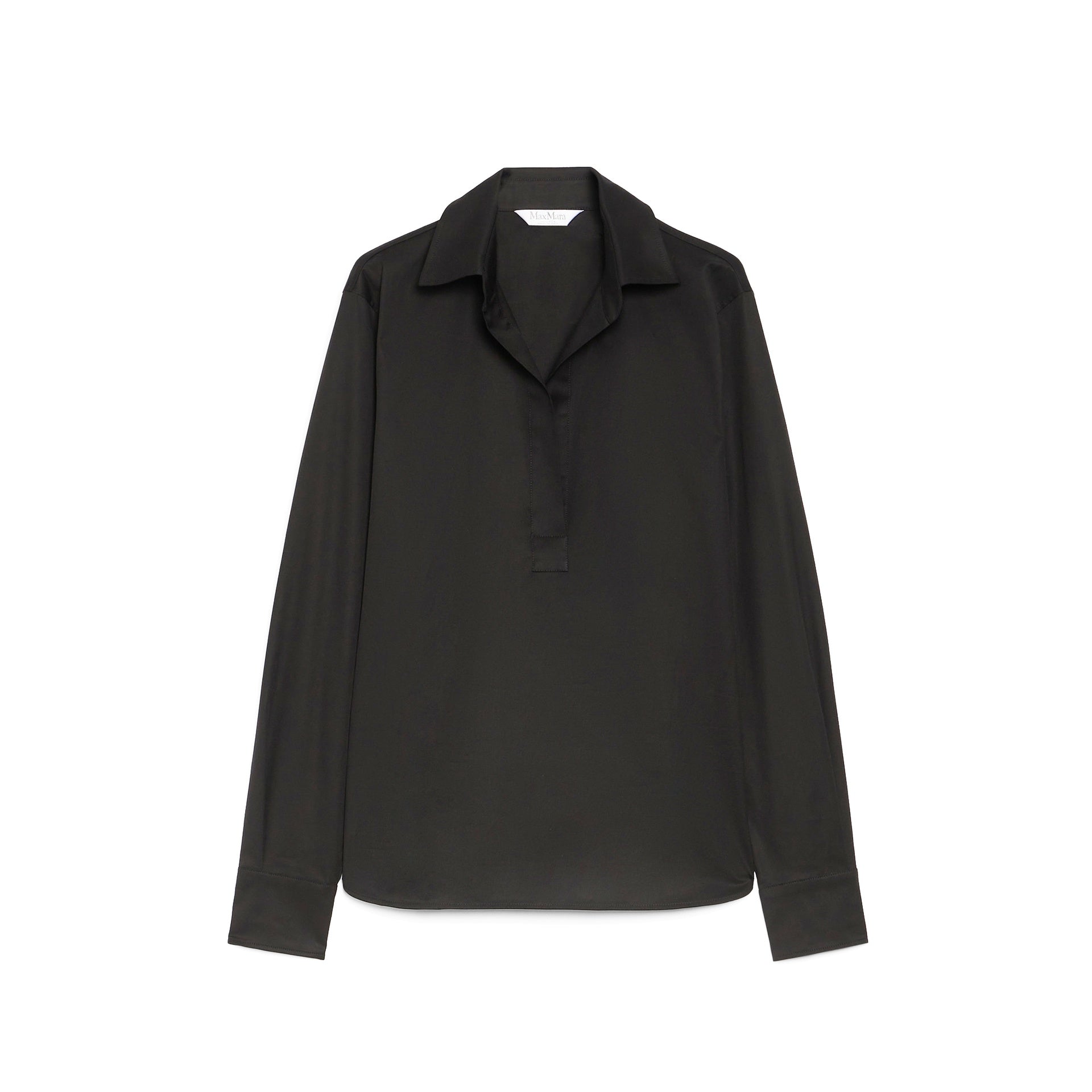 Samenstelling: 100% katoenen lange mouwen vneckline knop manchetten afgeronde zoom met zijspleten rechte cut los silhouet open poloshirt kraag gemaakt in Italië