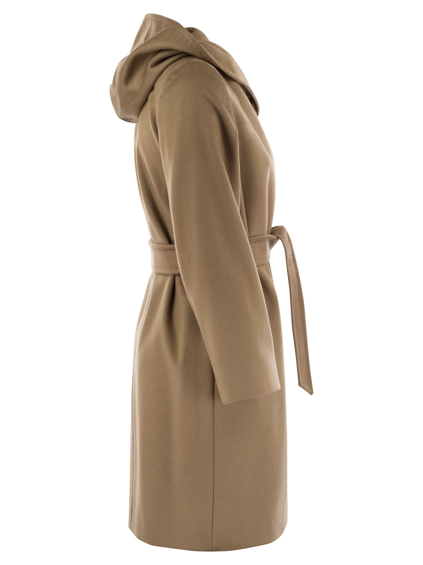 Een korte laag met capuchon gemaakt van een zeer zachte en lichtgewicht dubbele pure wolstof. Het model heeft lange ronde mouwen en een bijpassende riem in de taille om het silhouet te benadrukken. - Hood - Lengte boven de knie - Regelmatige fit Designer ID: 2526016061600 006