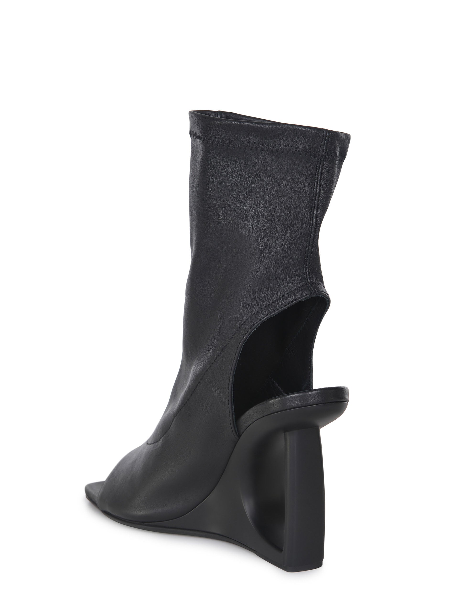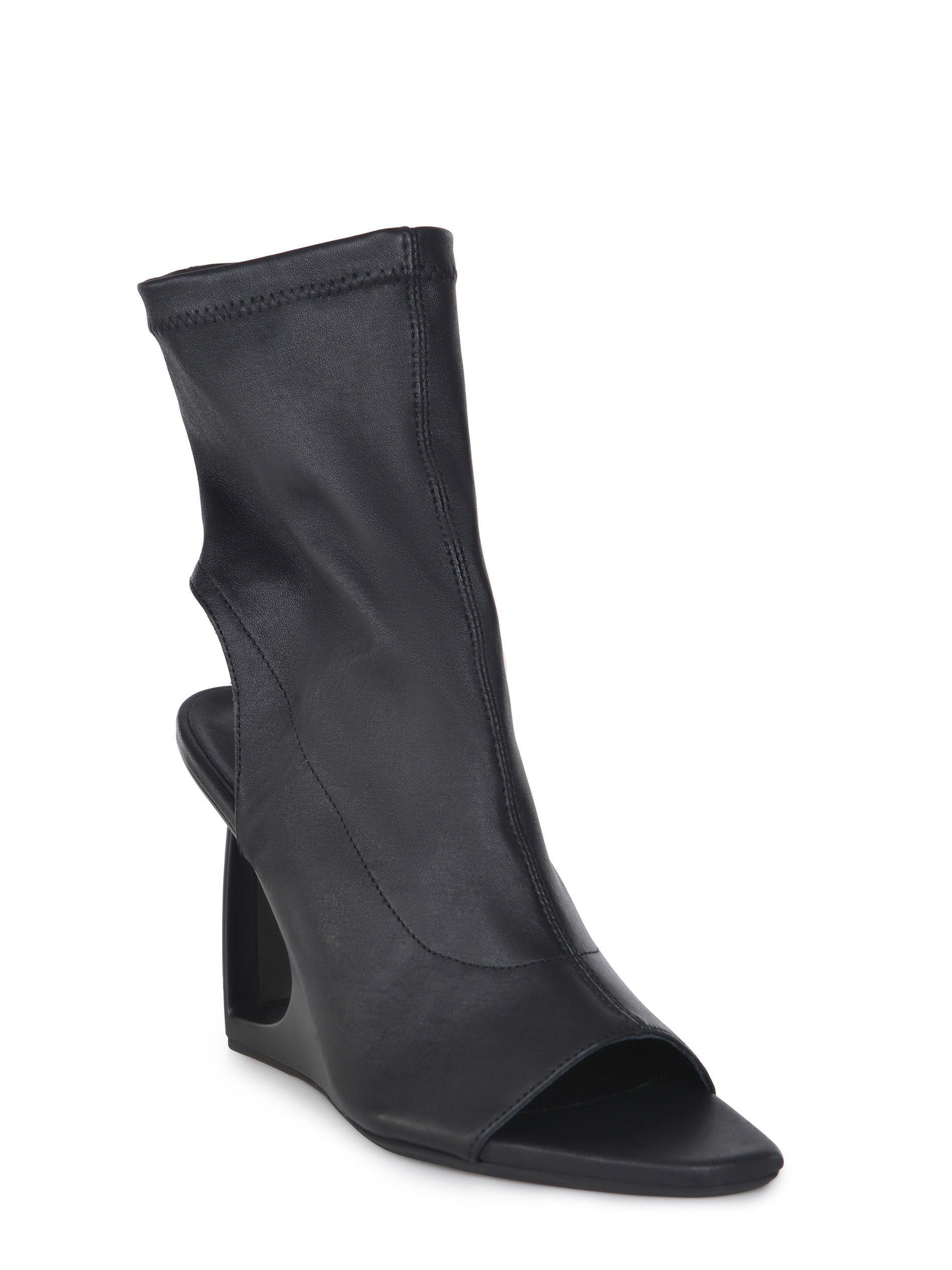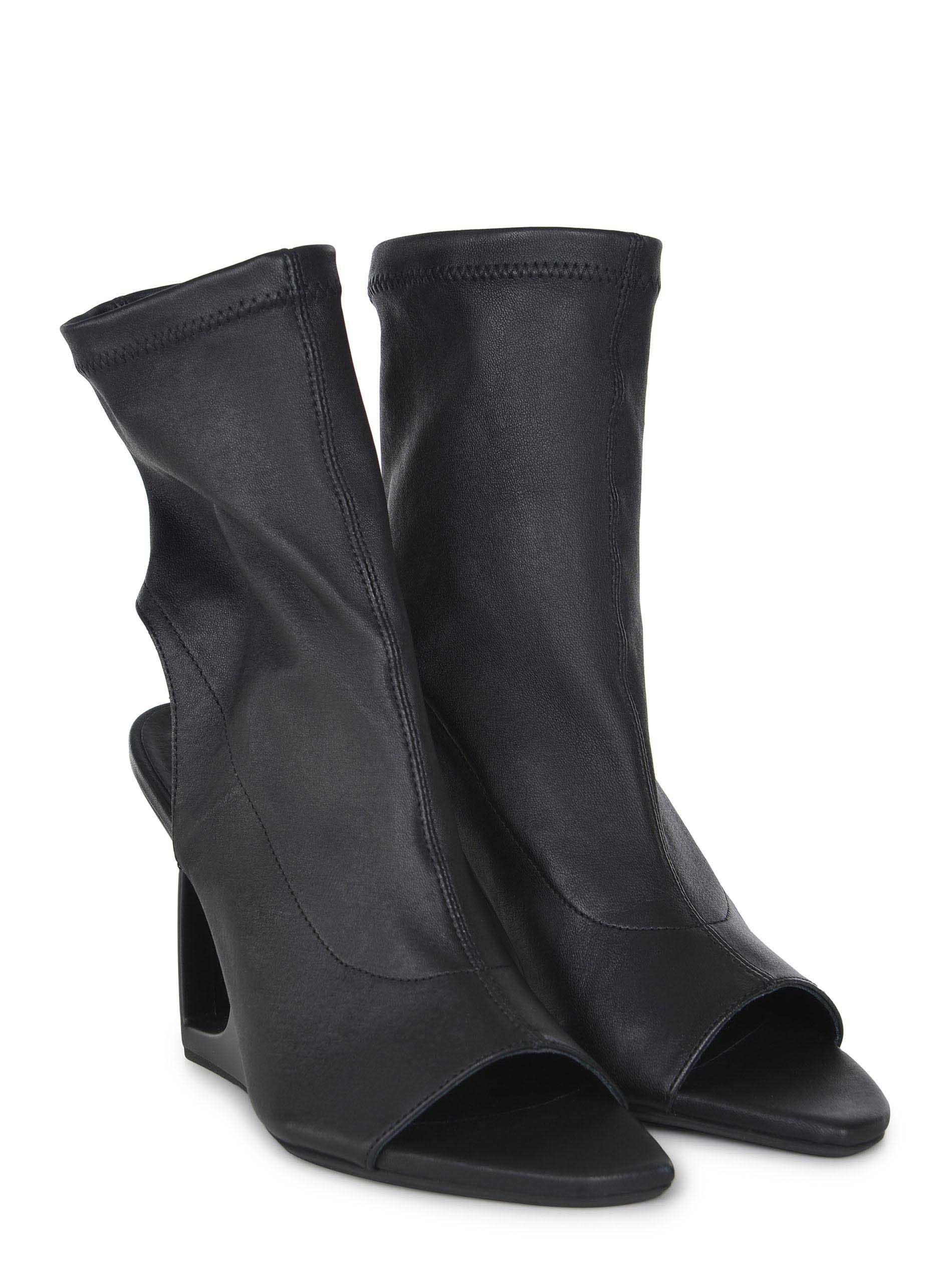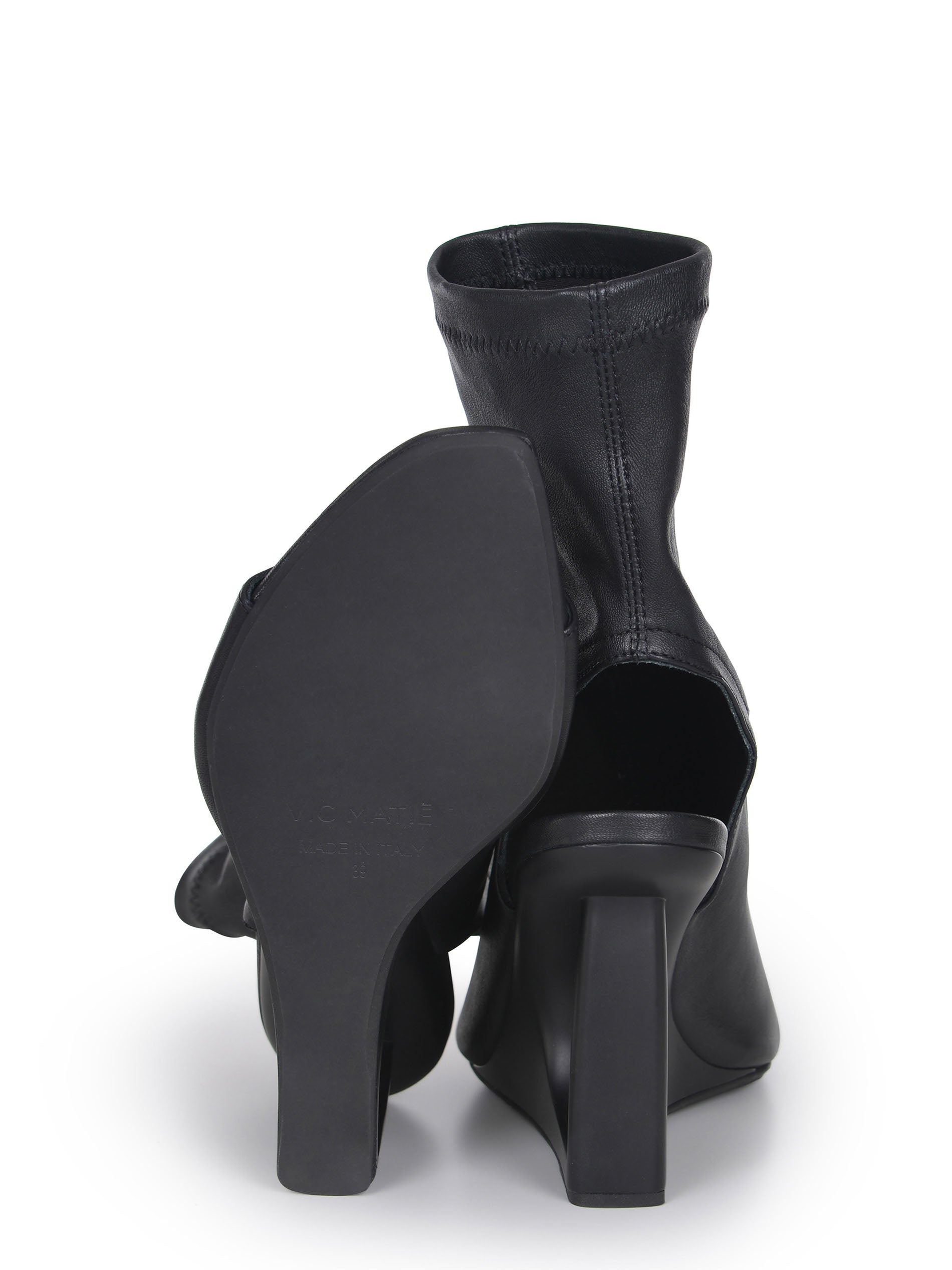 Vic Matiè -laarzen gemaakt van zwart leer. Open teen. Uitgebracht detail op de achterkant. High 'D' Heel. Logoed lederen binnenzool. Hielhoogte 10 cm. Enige 100% rubber. 100% leer. Gemaakt in Italië.
