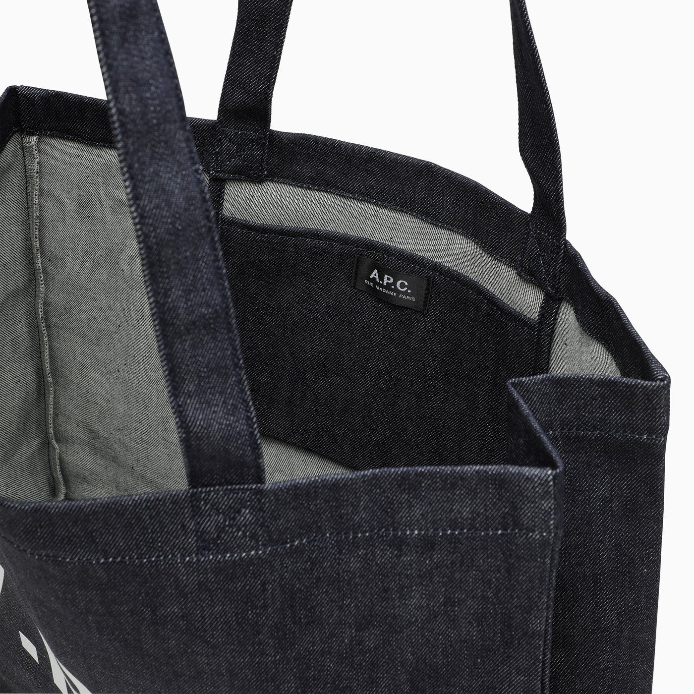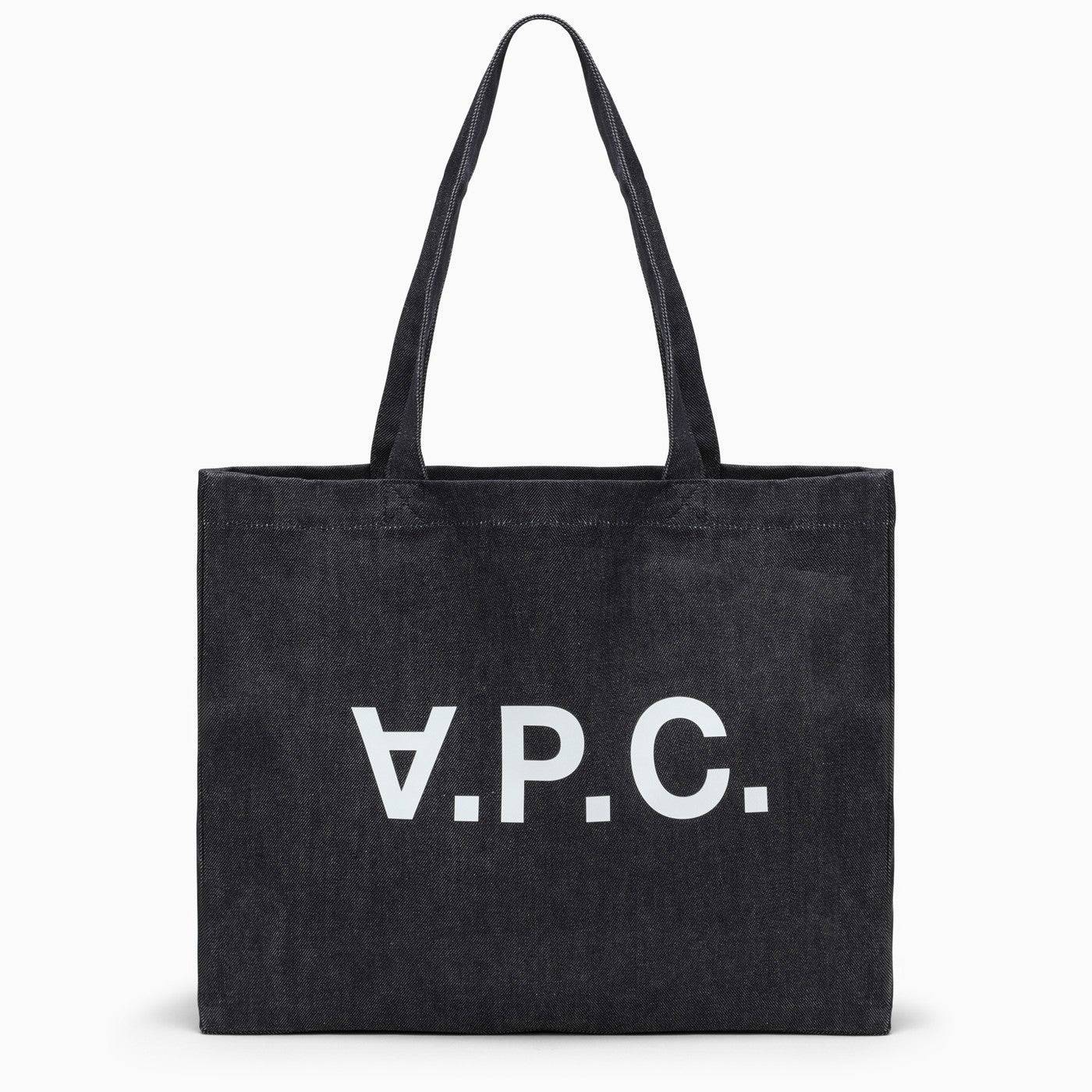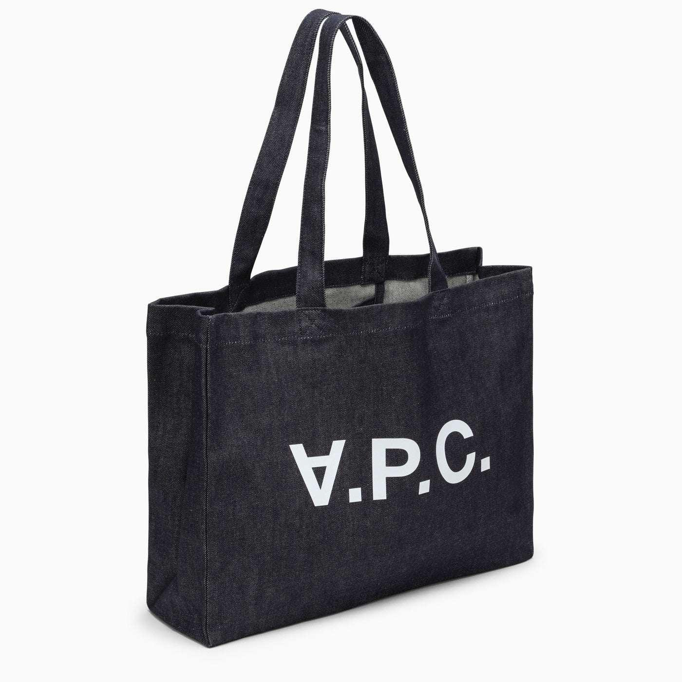 Winkelzak door A.P.C. In Blue Indigo Cotton Blend, met twee bovenste handgrepen, logo -print op de voorkant en de interne slipzak.