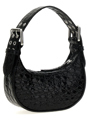 'Mini Soho' Patent Leather Handtas, oversized gespen, verstelbare handgreep, zip -sluiting. Duurzaam: veruit is verreweg toegewijd aan het vermijden van ontbossing en bosdegradatie, geassocieerd met leerproductiepraktijken, door de huid niet te kopen van vee die in het Amazon Biome is opgegroeid.