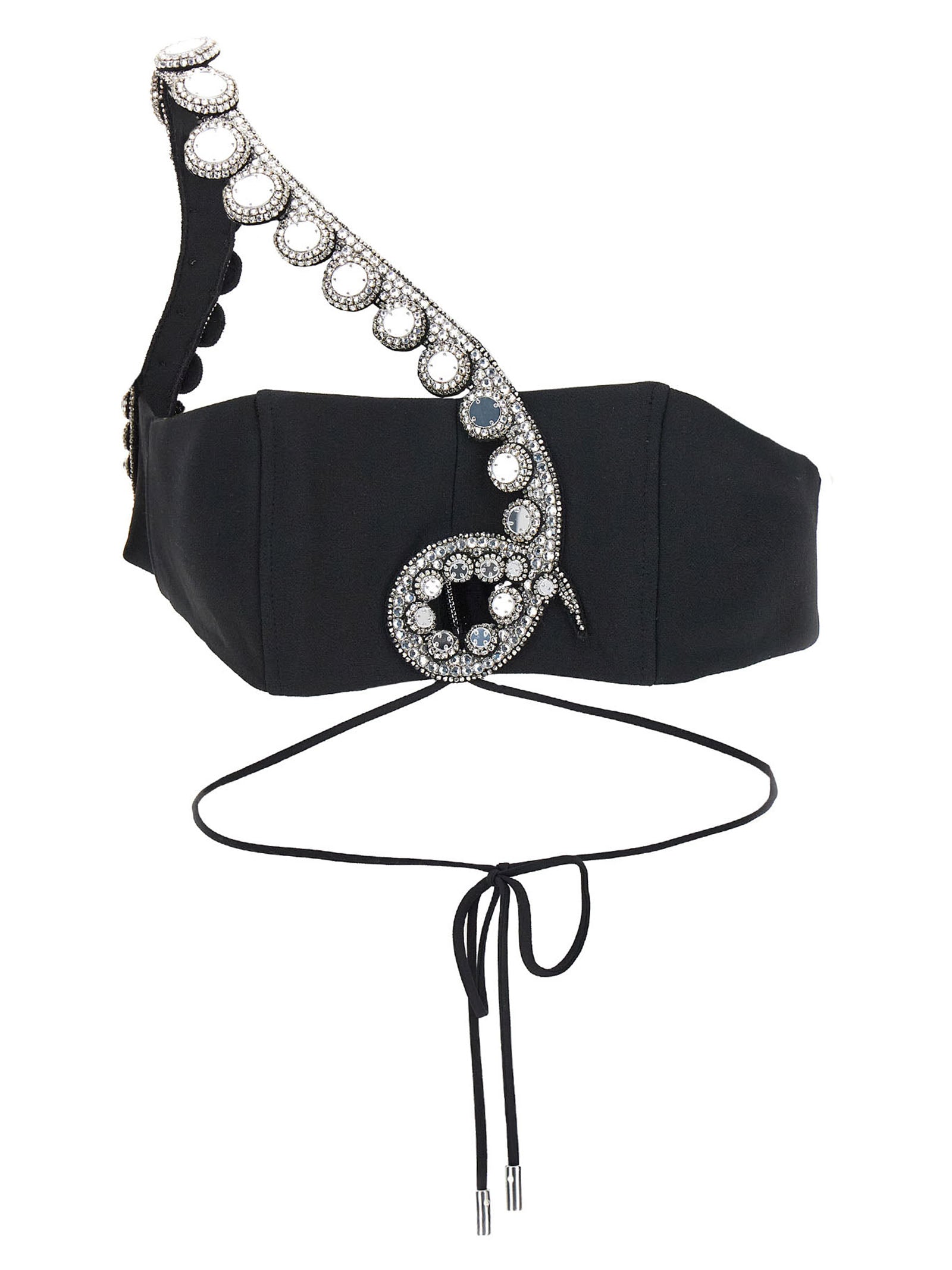 'Cashmere Straps' viscose blend stof een schoudertop met juweelapplicaties, achterste zipafsluiting en een bijgesneden stijl.
