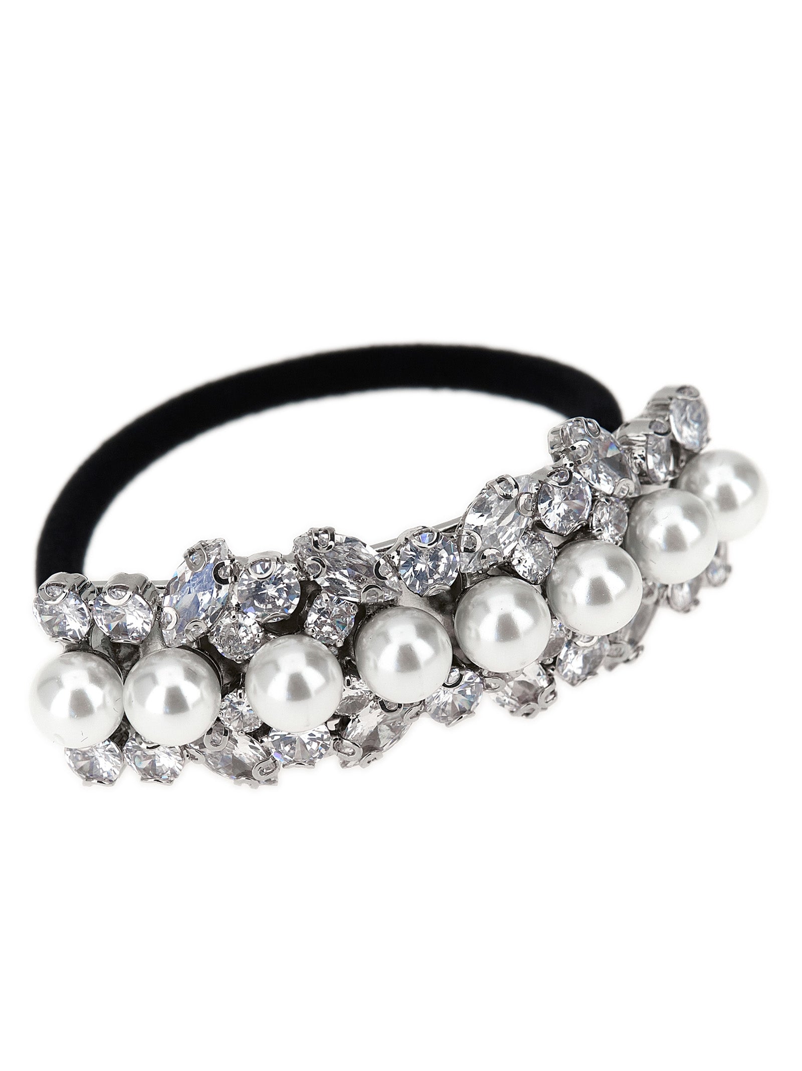'Multi Crystal' haarelastisch met zilveren messing topdetail met kristallen en nepkralen aangebracht.