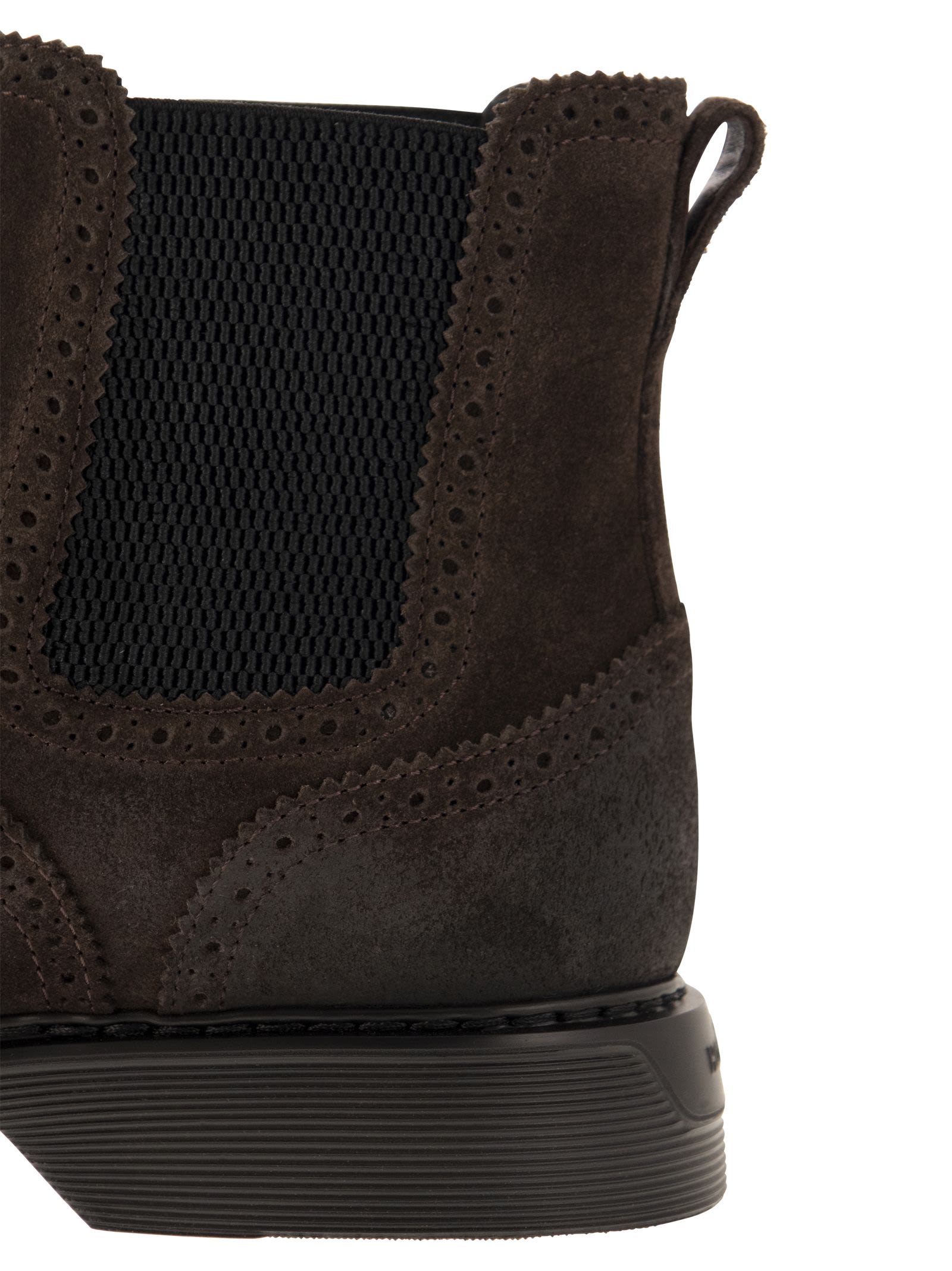 Een fusie van klassieke stijl en informele smaak, deze vintage-look Suede enkelschoen heeft een extreem rijke bovenwerk. Uitgerust met elastische inzetstukken aan de zijkanten, wordt het bewerkt met verfijnde perforaties en een zwaluwstaart. De schuine snede van de hiel geeft herkenning en beweging aan de rubberzool, terwijl het traagschuimvoetbed op comfort en prestaties zorgt. - Gemaakt in Italiƫ - Suede bovenste - gaten en zwaluwstaart - zijelastische inzetstukken - gestikte las - 8 mm geheugenschuim voetbed - rubberen zool - Totale hoogte 4,5 cm - stofzak inbegrepen Designer ID: HXM5760DT40HG0S8077