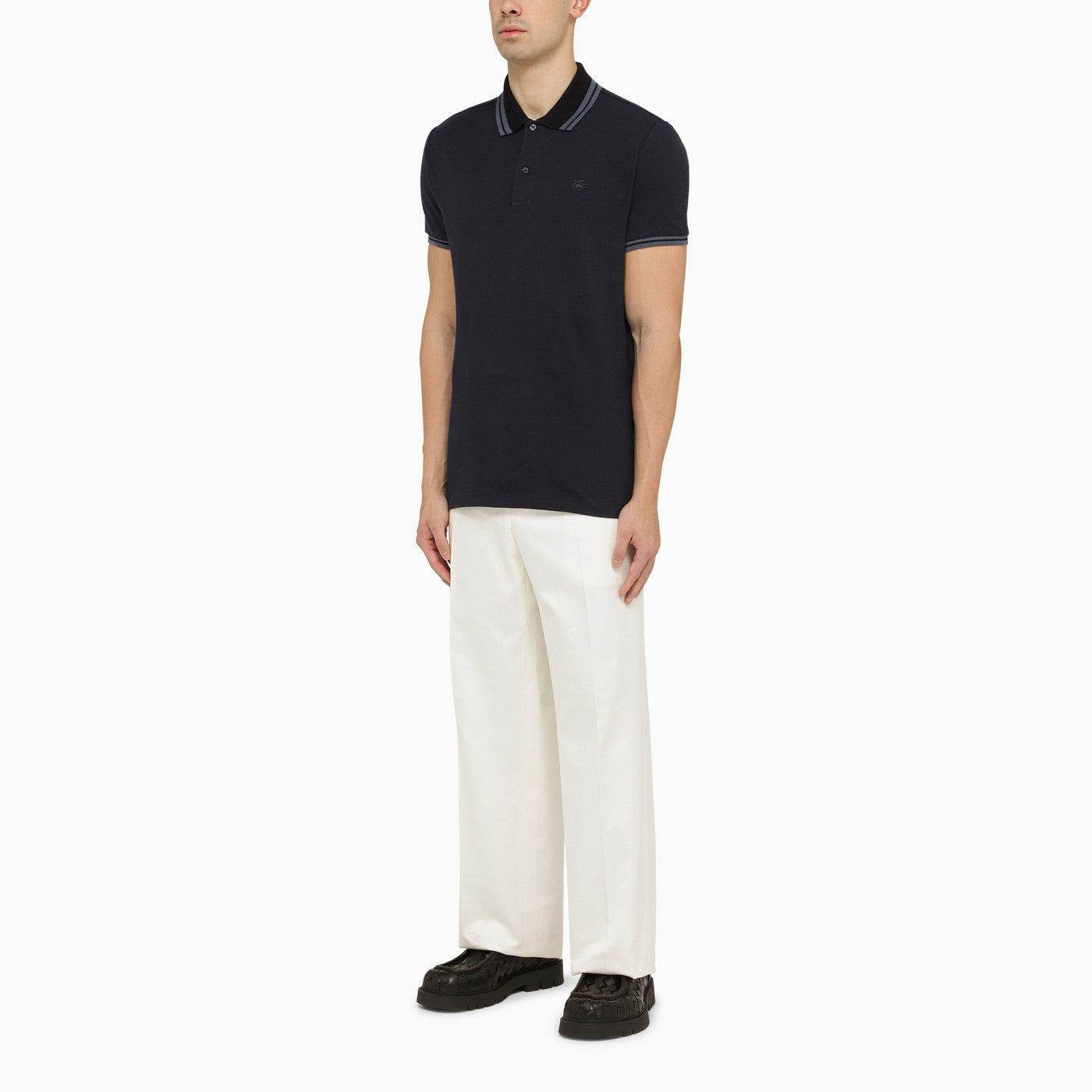 Polo shirt met korte mouwen van etro in blauw katoen, met een logo-borduurwerk op de borst, een klassieke button-down kraag, contrasterende gestreepte randen en regelmatige pasvorm.