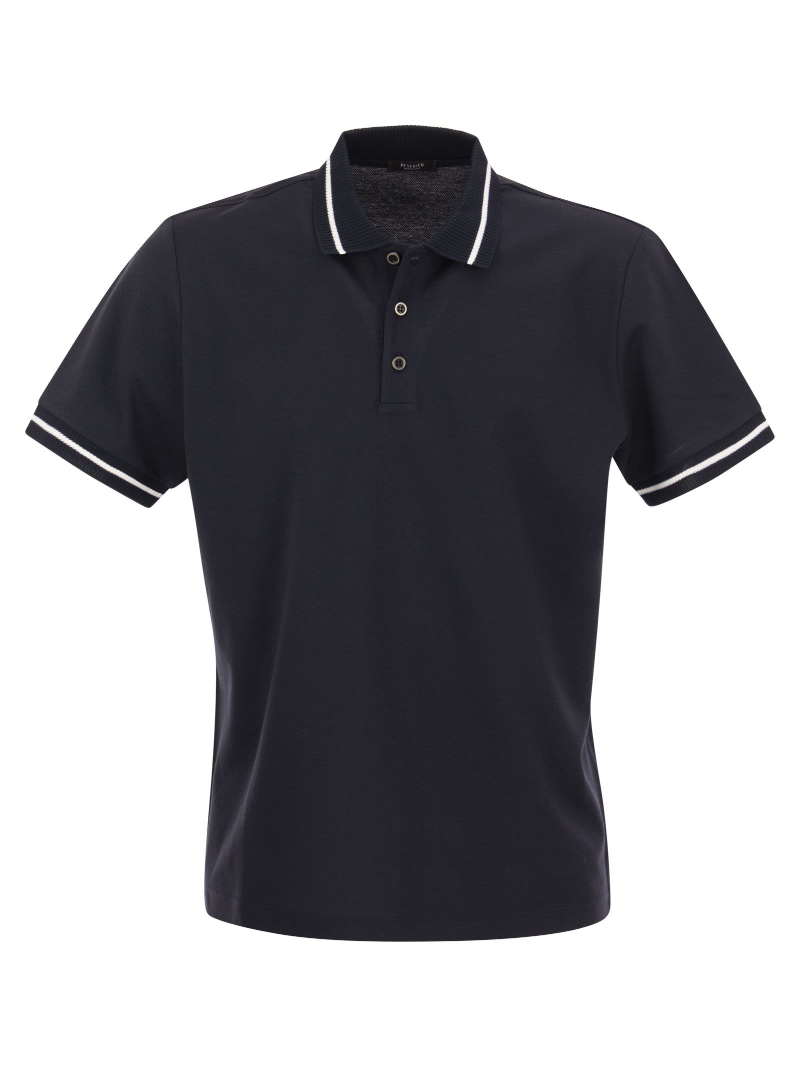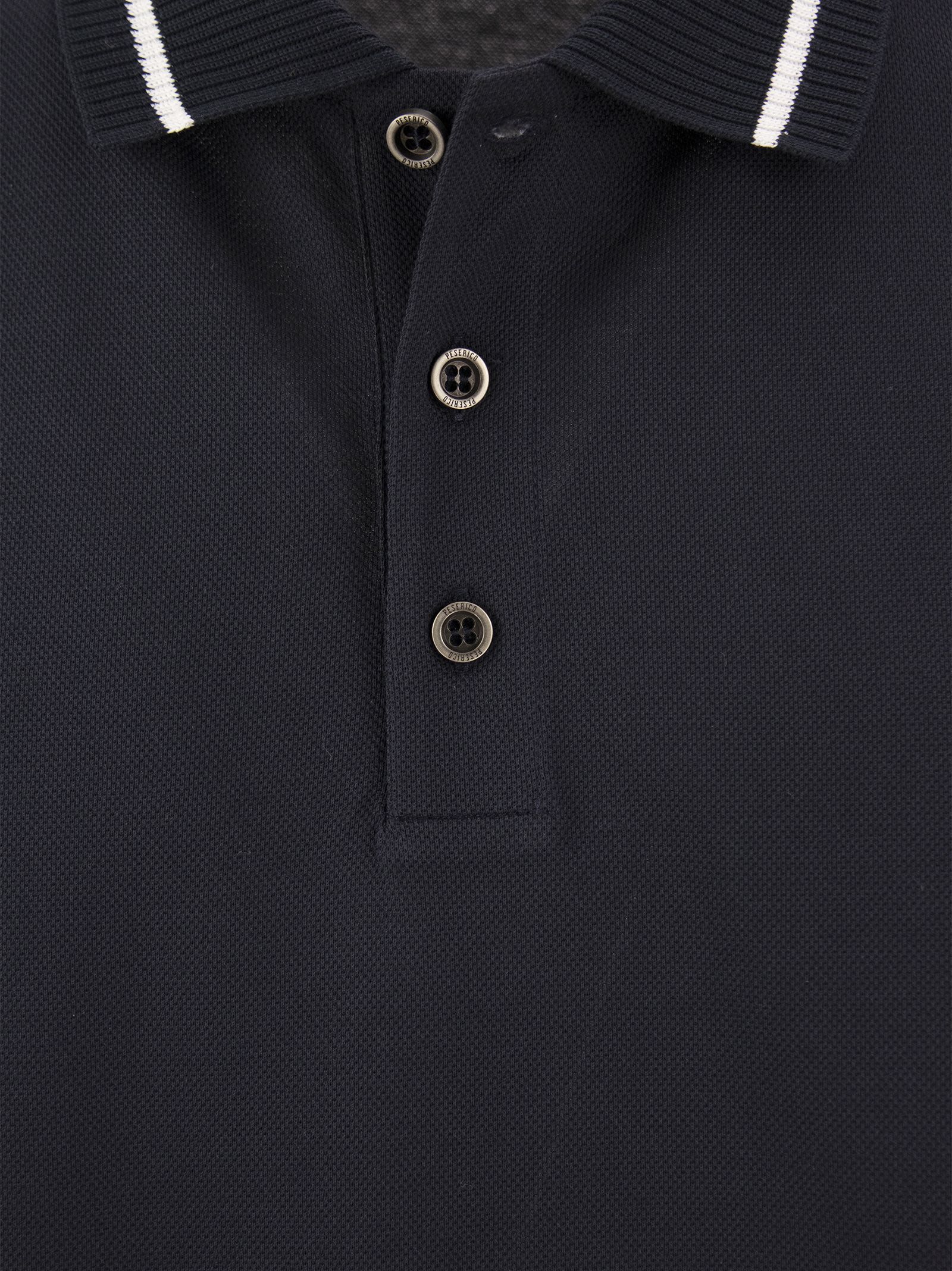 Polo shirt met korte mouwen in puur katoenen piqué met gestreepte bekleding op de kraag- en mouwranden. - Zeilkraag - ronde hals met korte mouwen - gestreepte rib kraag - zoom in dezelfde stof - gewone pasvorm - sluiting met 3 logo -knoppen Designer ID: R55018 00850 562