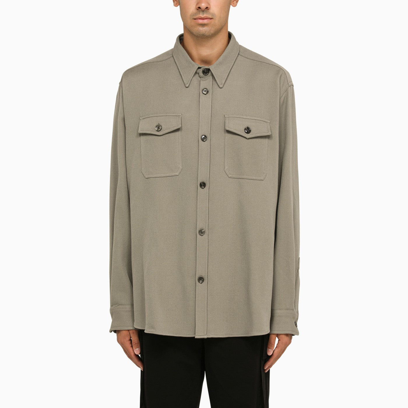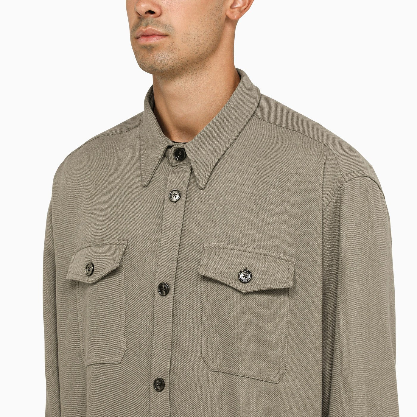 Shirt van Ami Paris in Taupe Gray Virgin Wol, met klassieke kraag, voorste knoopplacket, klep en geknoopte borstzakken, lange mouwen, geknoopte manchetten en een gebogen zoom.
