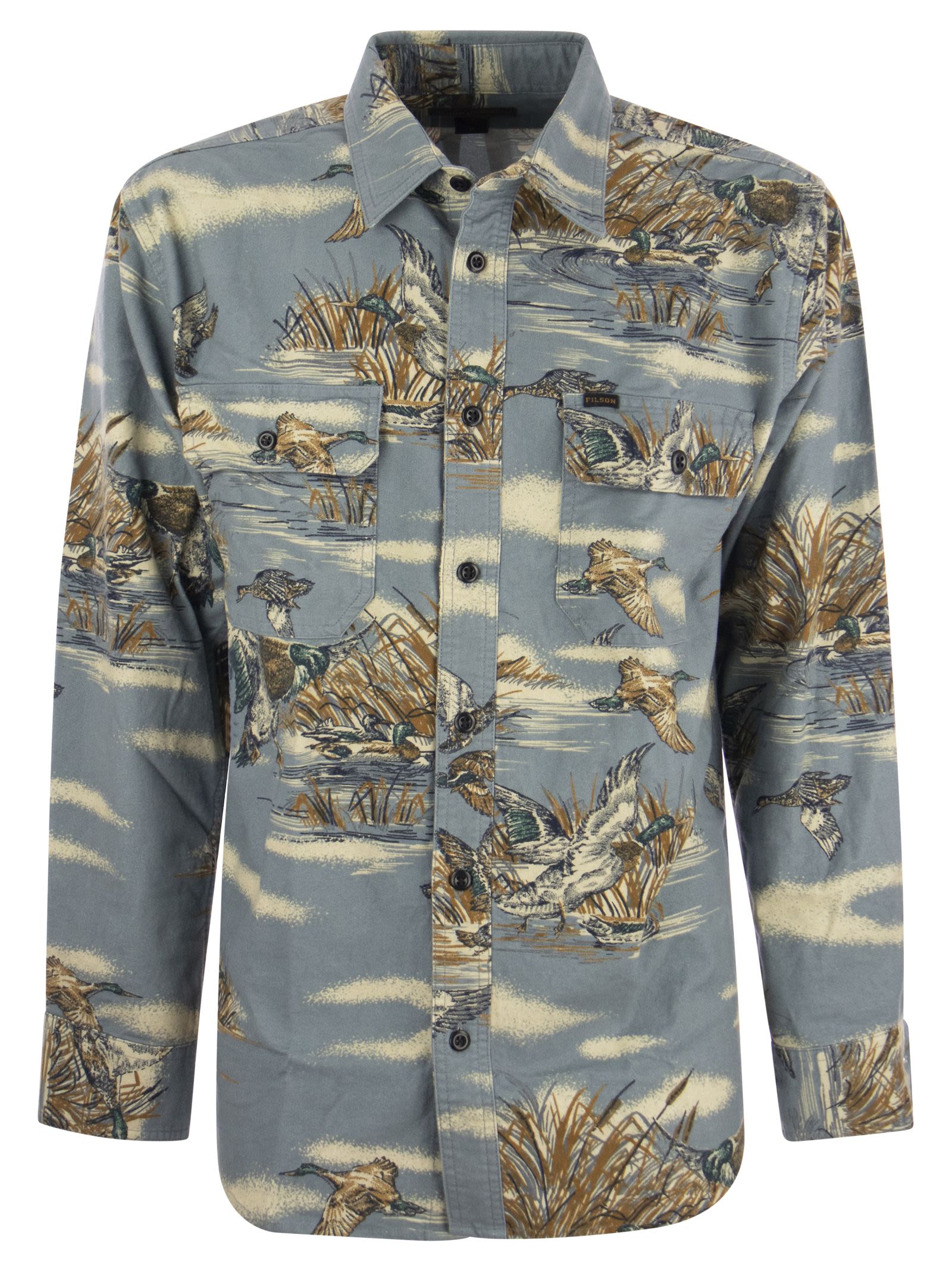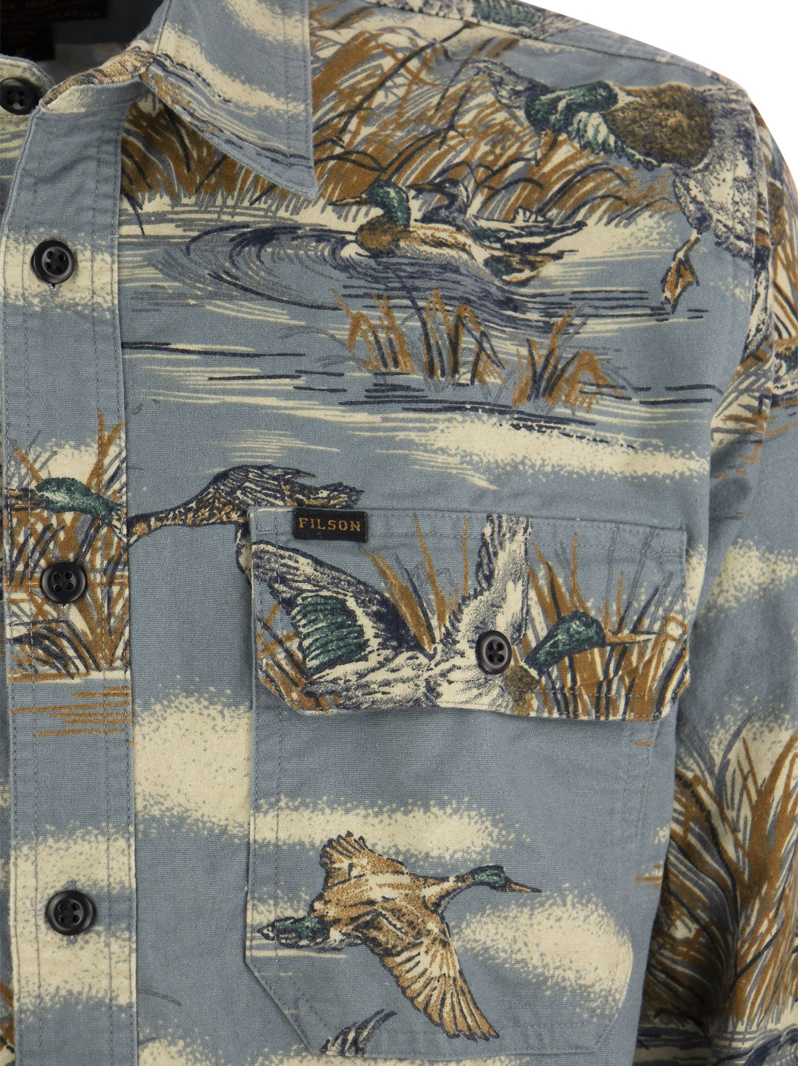 Het flanellen shirt is licht, comfortabel en betrouwbaar: het heeft alle ingaan van een nieuwe Filson -klassieker. Het is gemaakt van duurzaam geborsteld katoen van gemiddelde dikte, wat zo zacht is als taai. Het beschikt over een eendenprint. De melamineknoppen voor militaire kwaliteit zijn praktisch onverwoestbaar. De manchetten zijn verstelbaar met knoppen. Het wassen van het kledingstuk geeft het vanaf de eerste dag uitstekend. - Regelmatige pasvorm - Patchvakken op de borst - knopen bevestigingsontwerper -ID: FMCAM0010 W0242 476