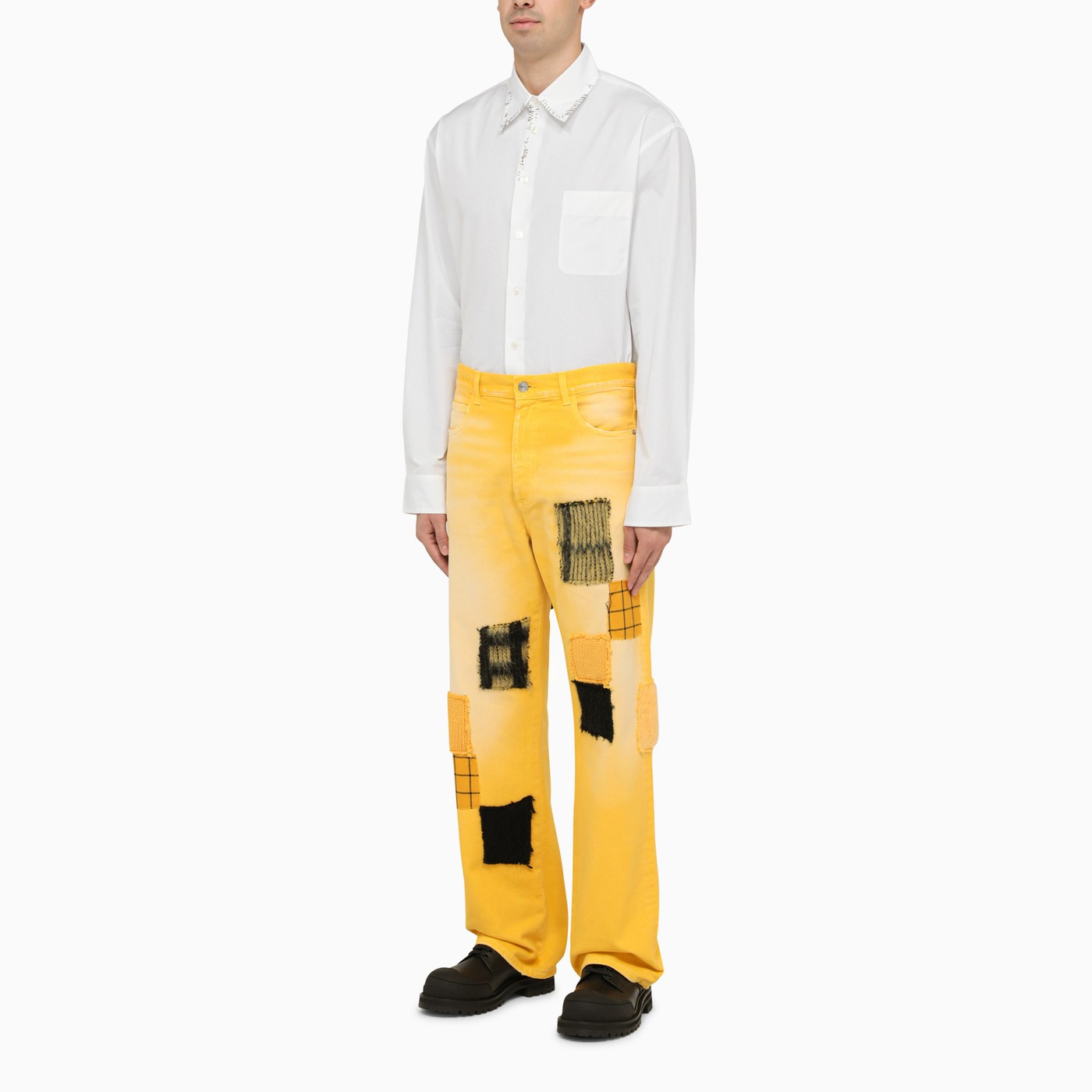 Wit katoenen popeline shirt van Marni met lange mouwen, contrasterende kraagdetails, borstzak en rechte zoom.