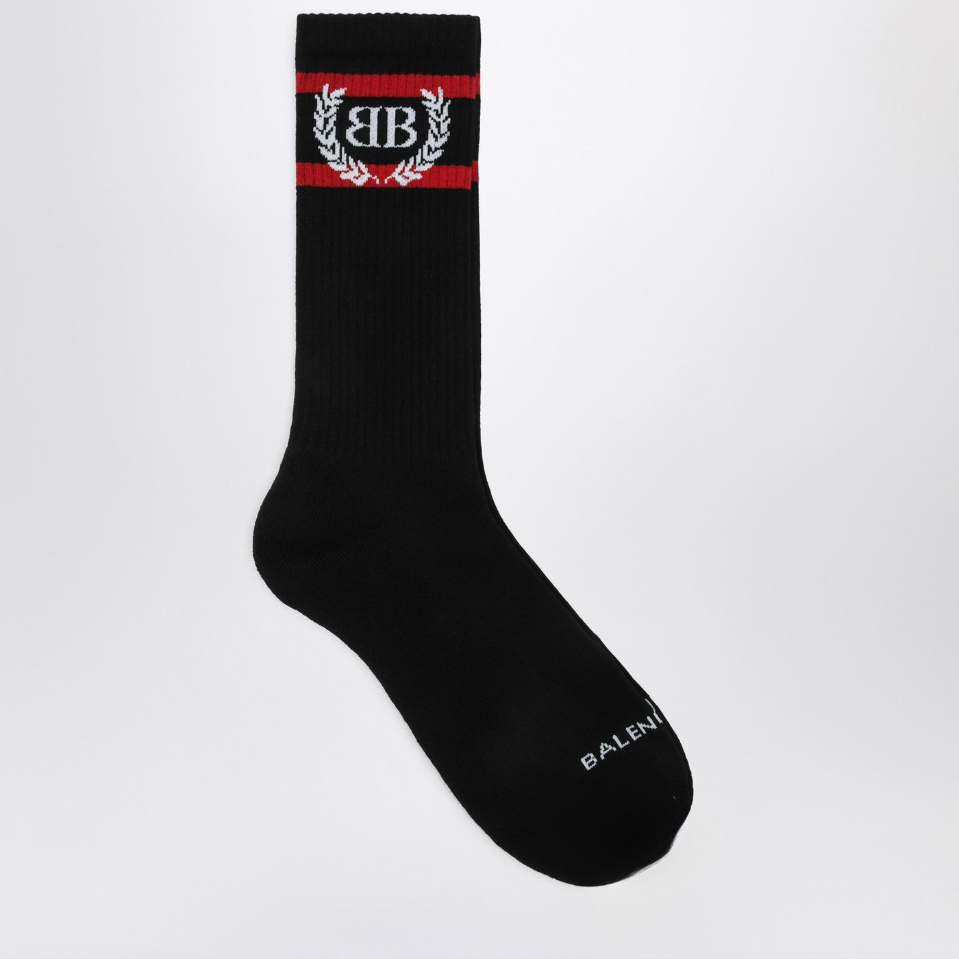 Balenciaga Sokken in Black Cotton Blend, met klassiek laurier -borduurwerk op het bovenste enkel- en logo -letters borduurwerk op de voet.