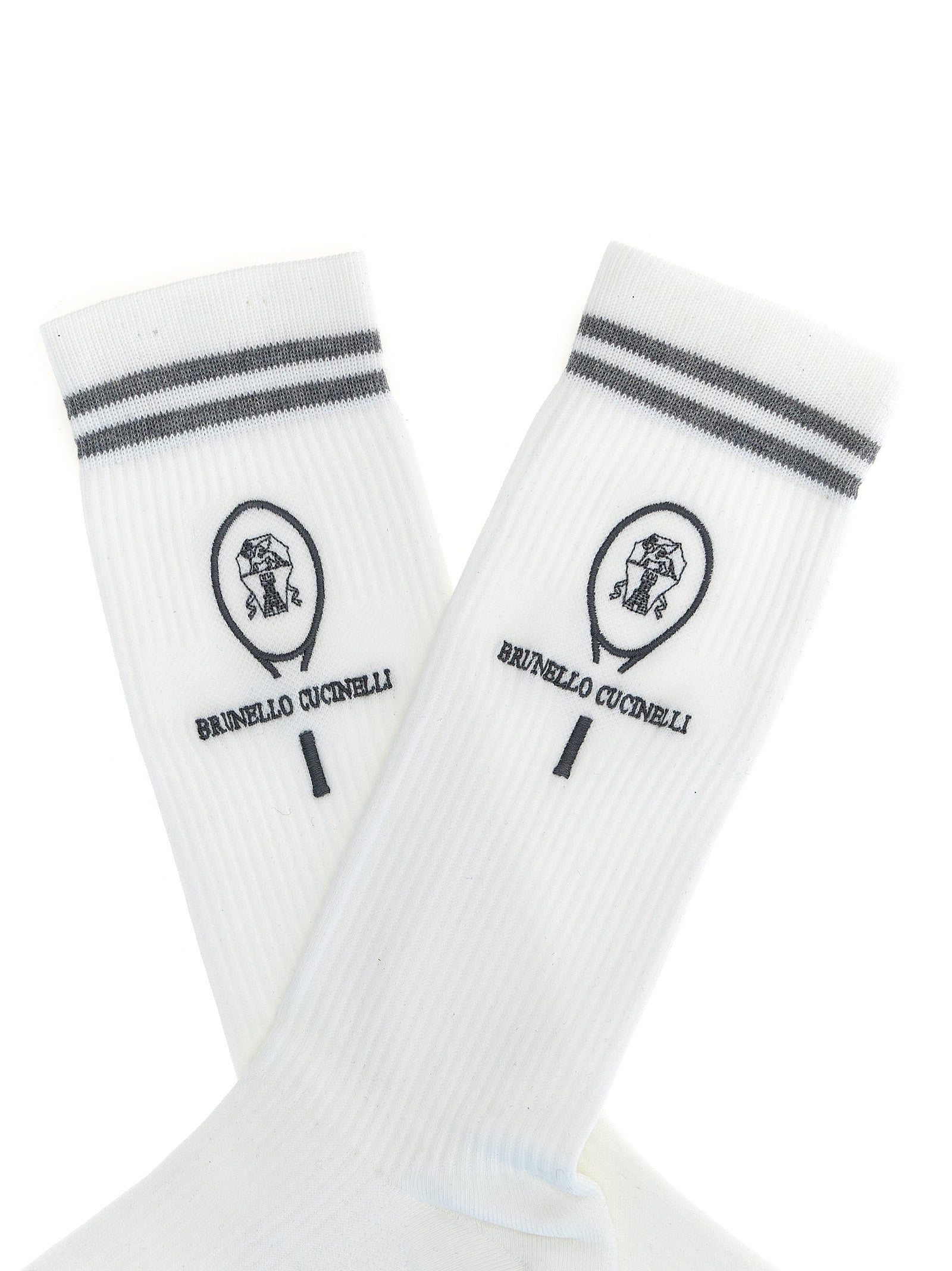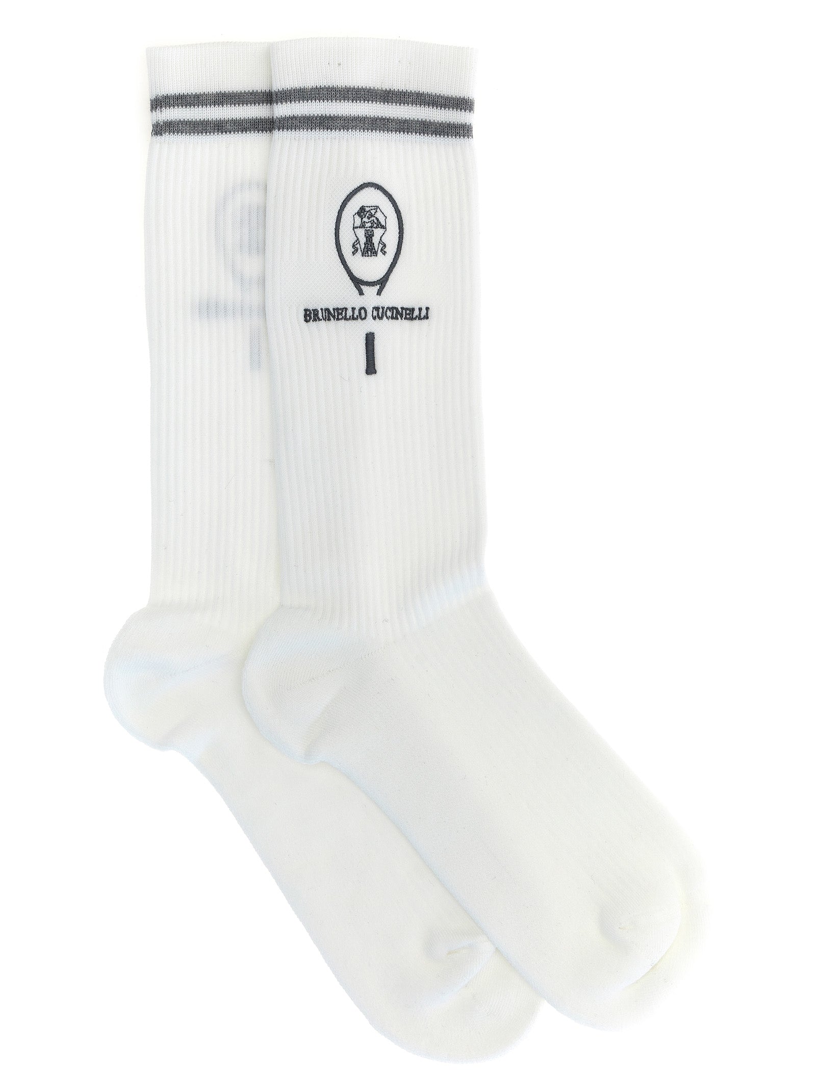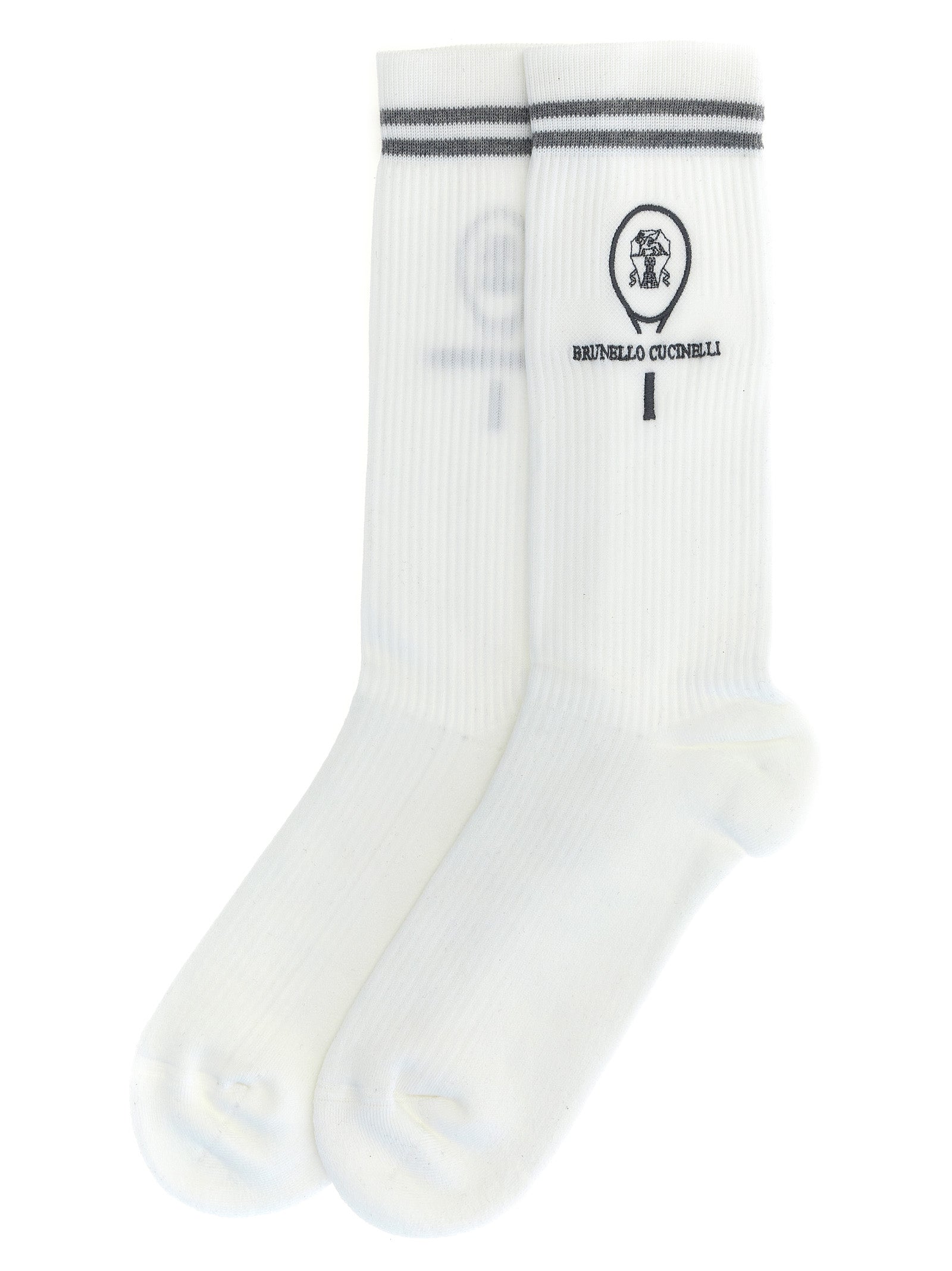 Sokken in geribbelde katoenmix met contrasterende gestreepte details.