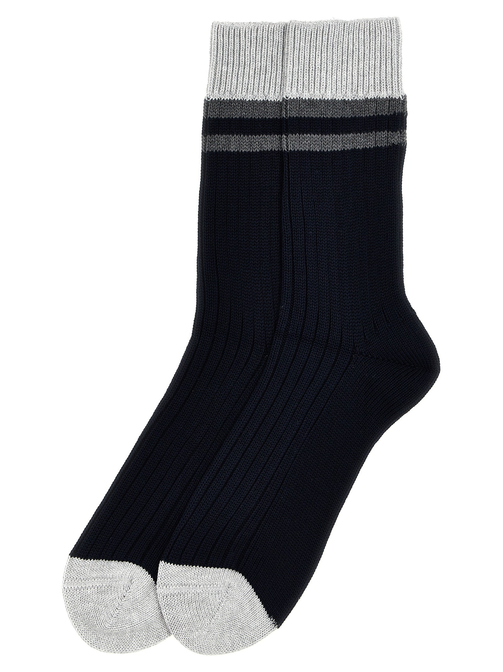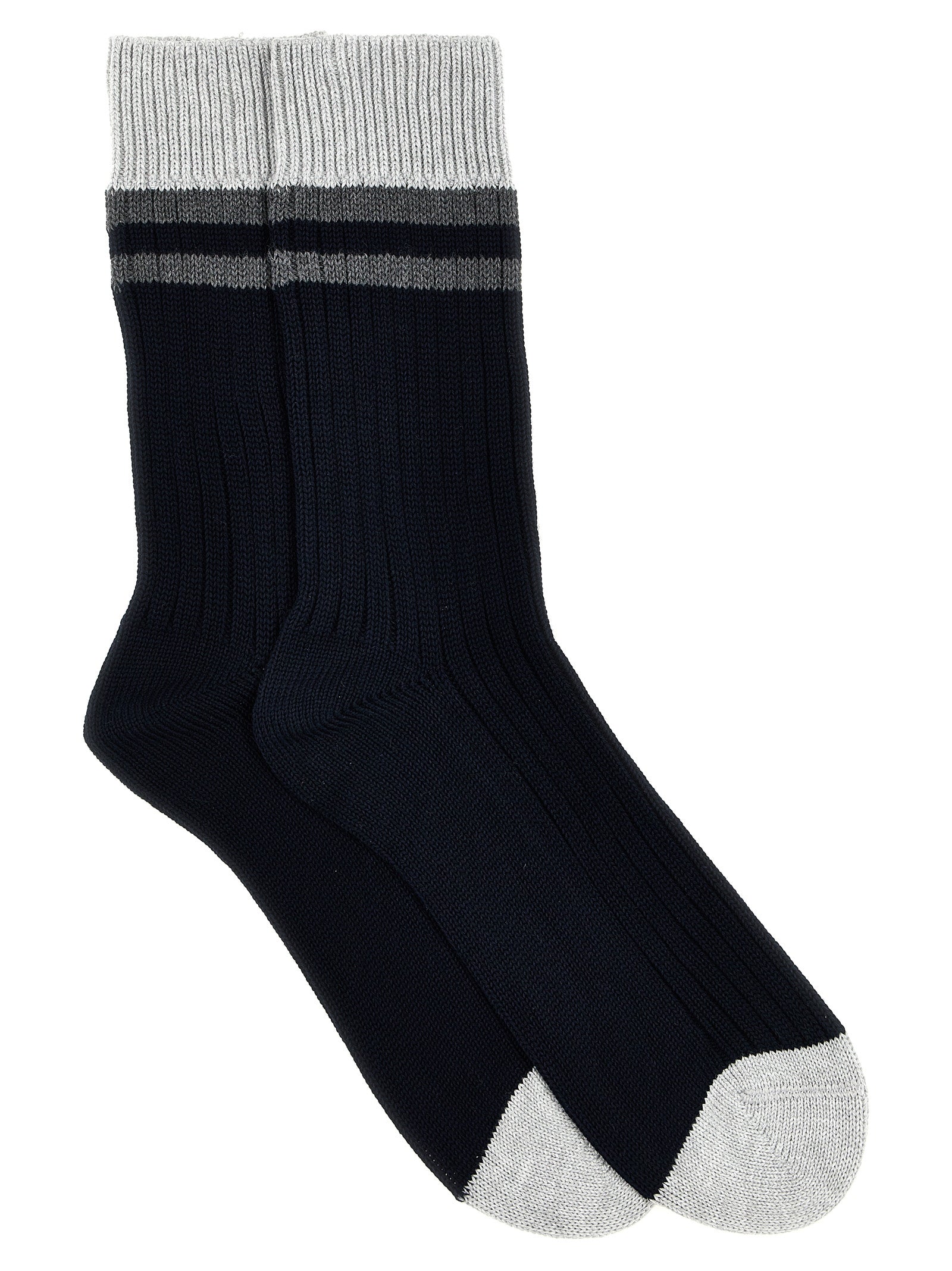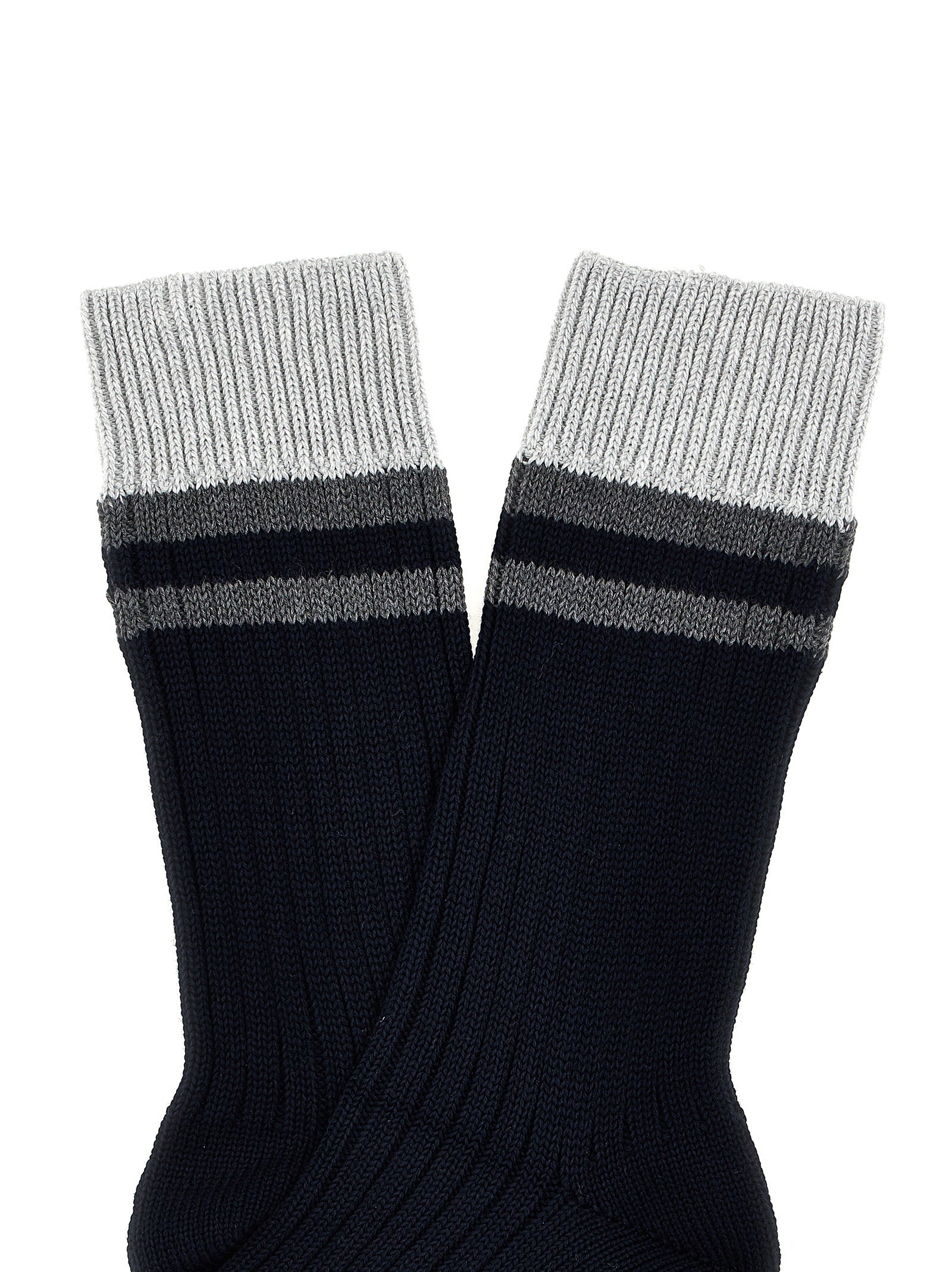 Geribbelde katoenen sokken met strepen en contrastdetails.