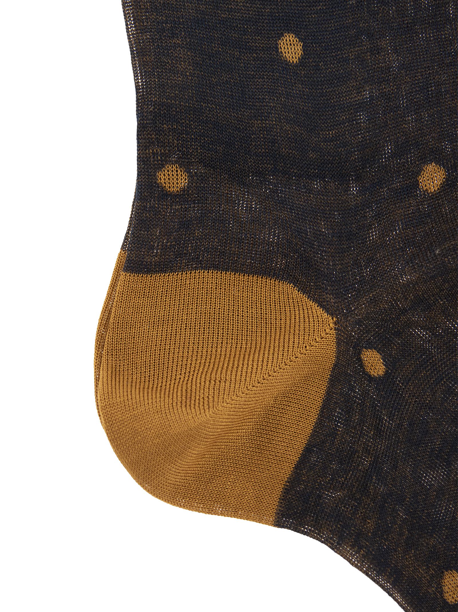 Heren's Lange katoenen sokken, gemaakt in Italië. Zeer zacht aanvoelen, gemaakt voor degenen die geen stijlvol detail afzien. Het iconische polka -puntpatroon op een iriserende effectachtergrond, in tinten van dennengroen en mosterd, maakt ze origineel maar herkenbaar. Geschikt voor een formele of extravagante look. Designer ID: AP106187 13275