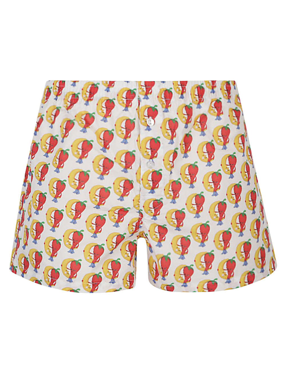 Witte bokser, met afdrukken, elastische levensduur, vooraan sluiten met knoppen.