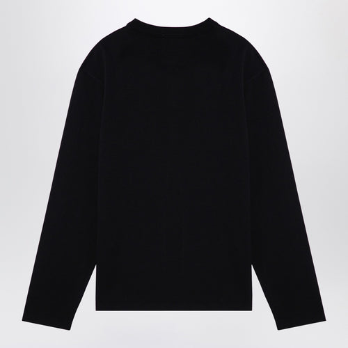 Zwarte organische katoenen crew-neck pyjama-trui van Tekla met lange mouwen, zijlogo-plaquette en rechte zoom.