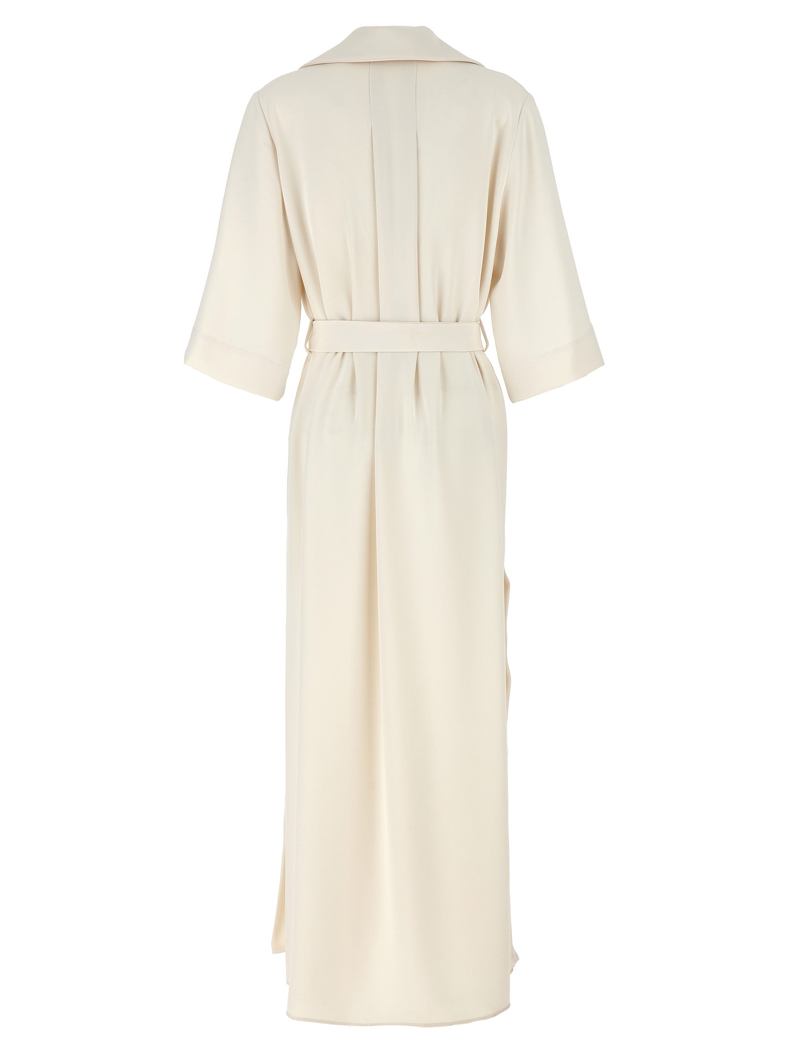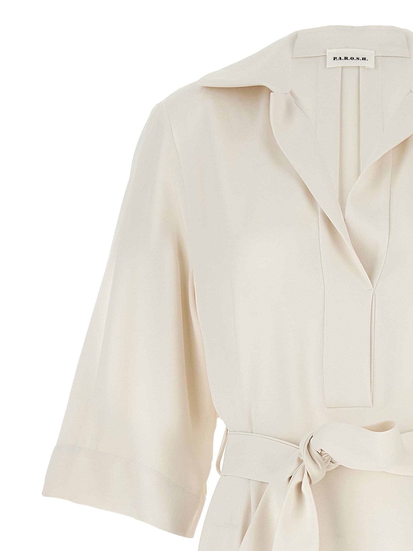 'Panty' jurk in cady, v-neck en kraag, korte mouwen, riem aan de taille, zijspleuken op de zoom.