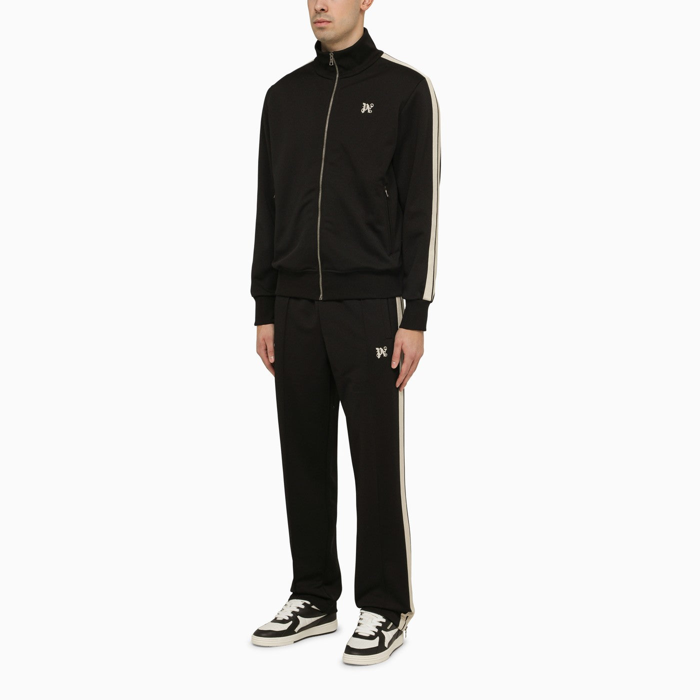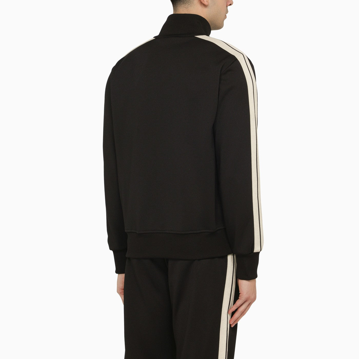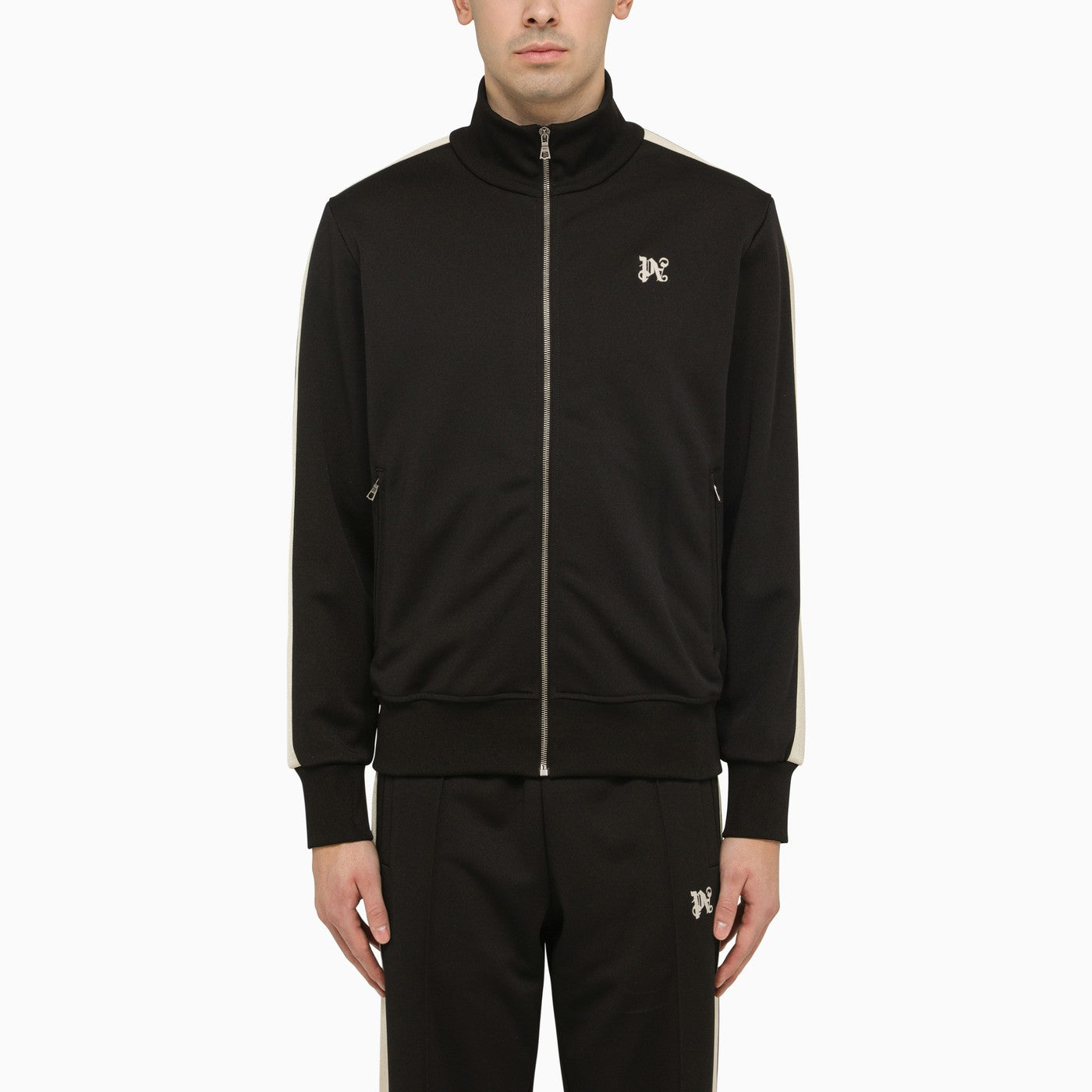 Gesipt sweatshirt door palm engelen in zwart katoen met monogram -borduurwerk op de borst, contrasterende banden op mouwen, hoge kraag, zip -knipbevestiging, ritssluiting bij de ritssluiting, geribbelde manchetten en zoom.