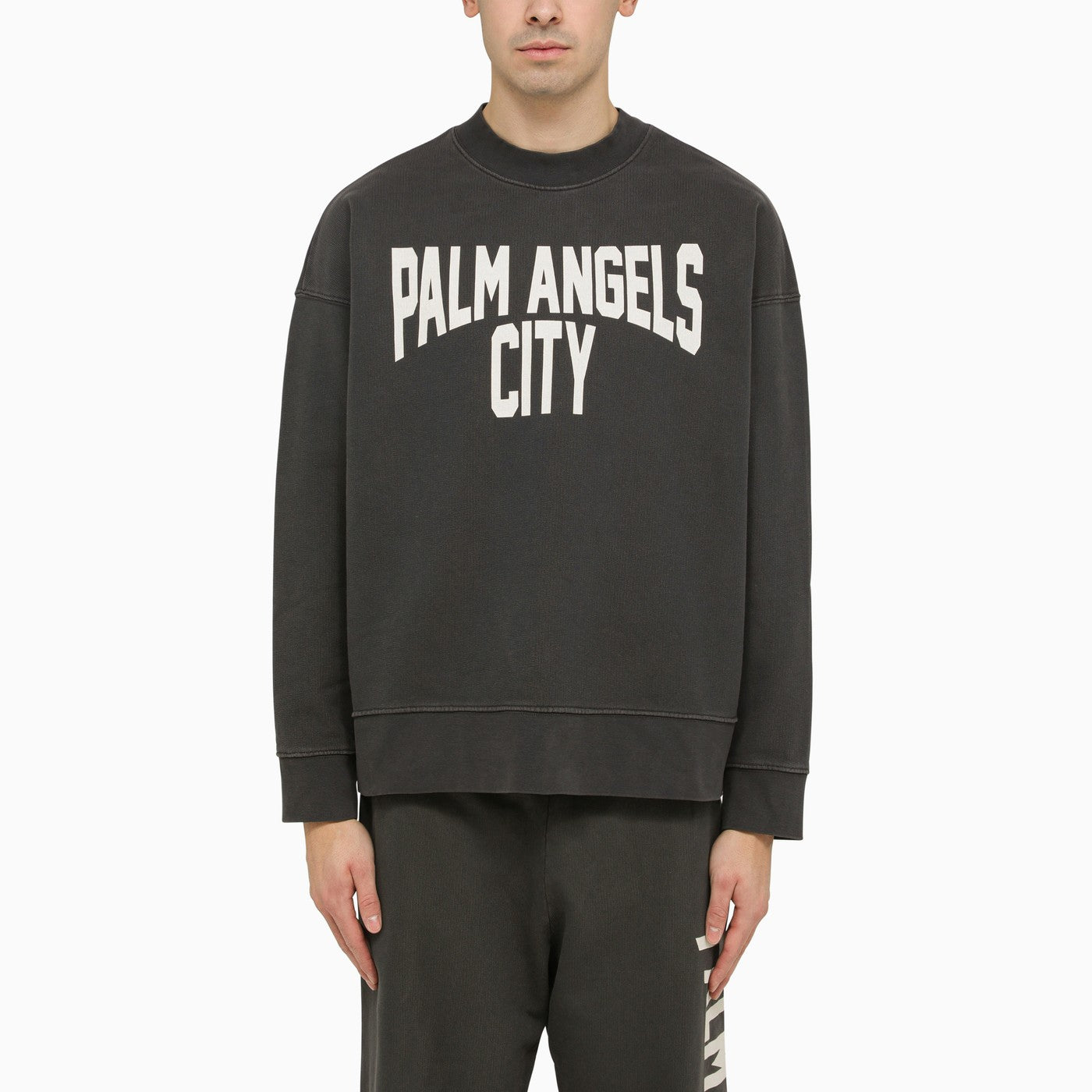 Crew-neck sweatshirt door Palm Angels in Delavé Gray Cotton met contrasterende print aan de voorkant.
