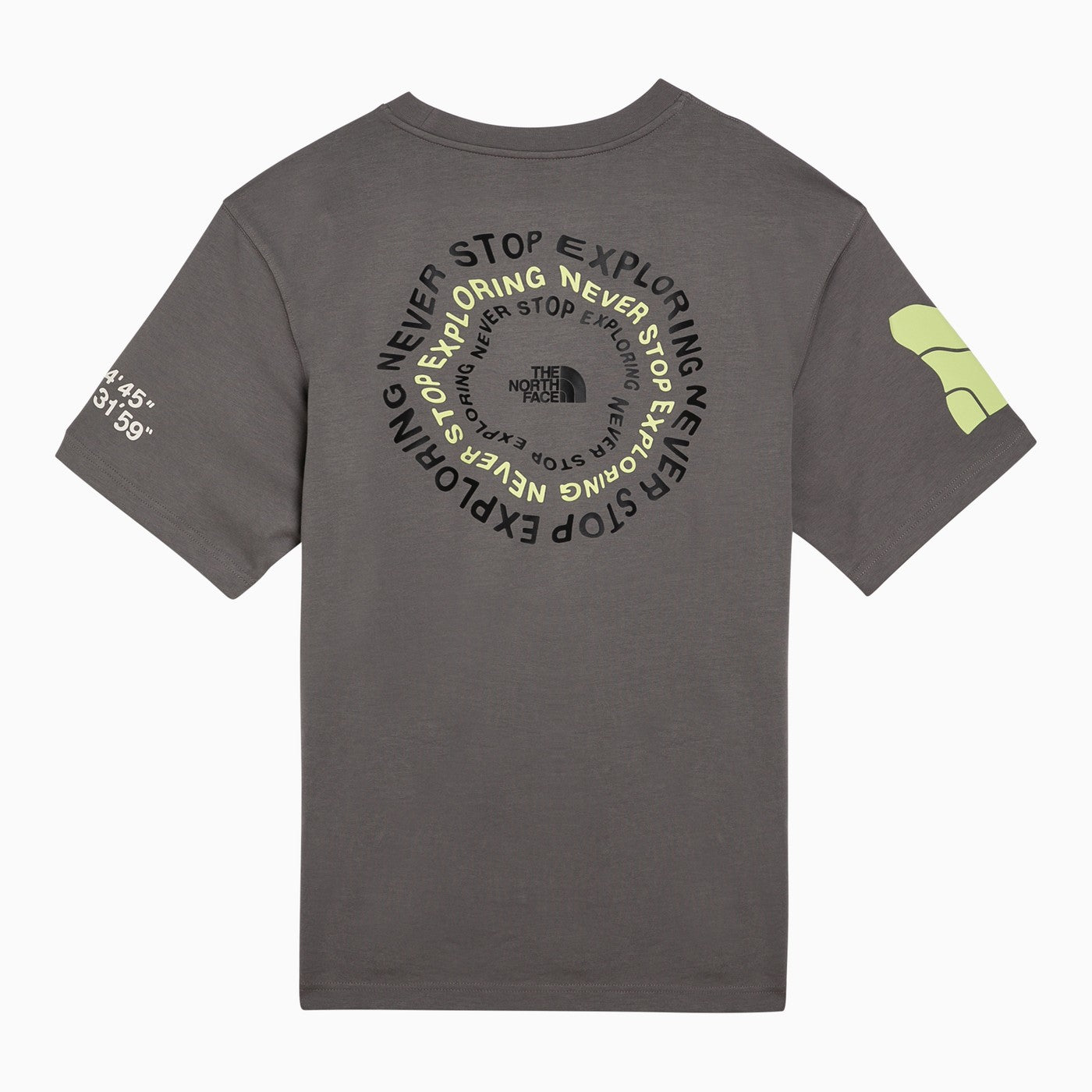 Crew-neck t-shirt bij de North Face in Pearl Gray Cotton met logo-print op borst, afdrukken op mouw, het verkennen van nooit stopprint op de achterkant, korte mouwen en rechte zoom.