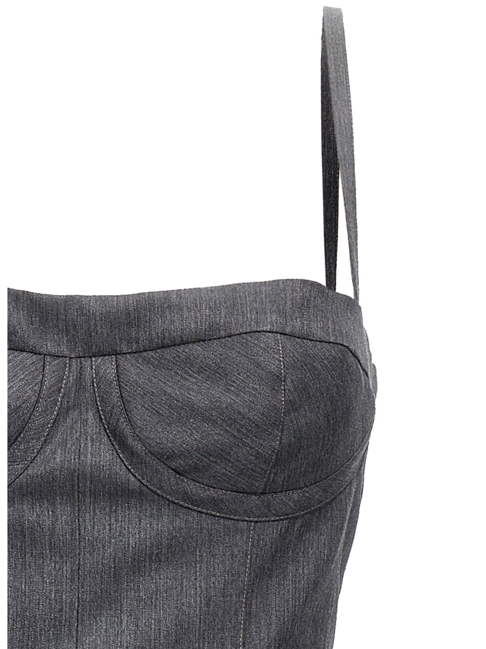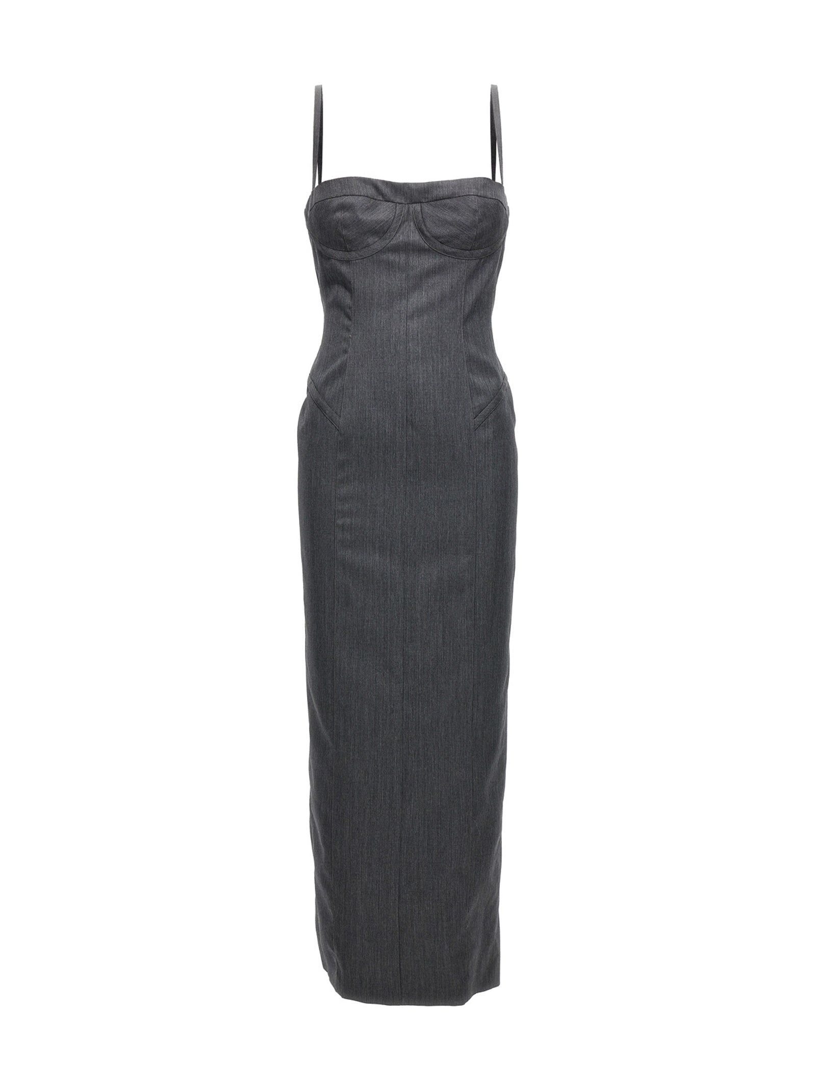 Abito Lungo Modello Bustino in Lana, Slim Fit Con Spalline Sottili.