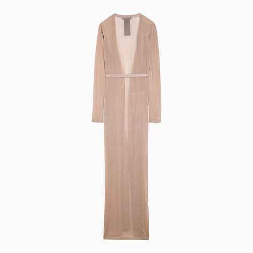 Lichtgele viscose met Lurex lang vest van Max Mara Pianoforte, met lange mouwen en een tailleband.