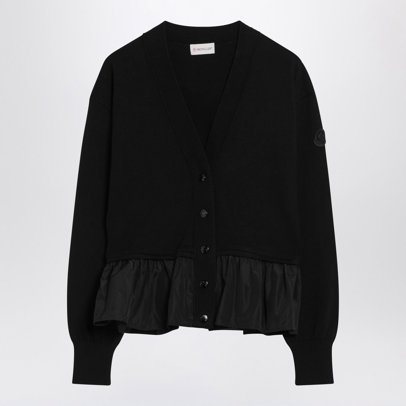 Moncler Cardigan in een mix van katoen, kasjmier en zwarte zijde, gekenmerkt door een V-hals, lange mouwen met een met een toon-op-tone logo-patch, voorknopen, een gegolfde zoom en geribbelde manchetten.
