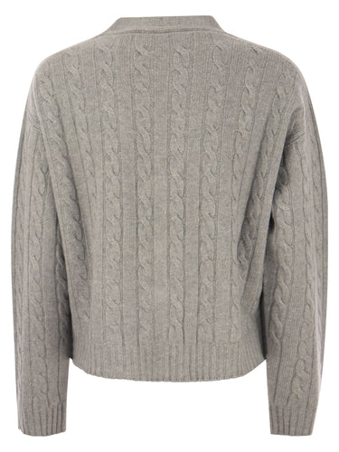 Wol, zijde, kasjmier jumper verlicht door Lurex. De speciale breier van één stuk wordt voorgesteld met een verfijnd geribbeld en gevlochten patroon. De v-hals, zachte pasvorm en gevallen mouwen maken het kledingstuk ontspannen. - Geven en geribbelde integrale vakmanschap - V -hals - mouwen met gevallen ronde - geribbelde manchetten, kraag en onder zoom - Loose Fit Designer ID: S99019F07 09095 871