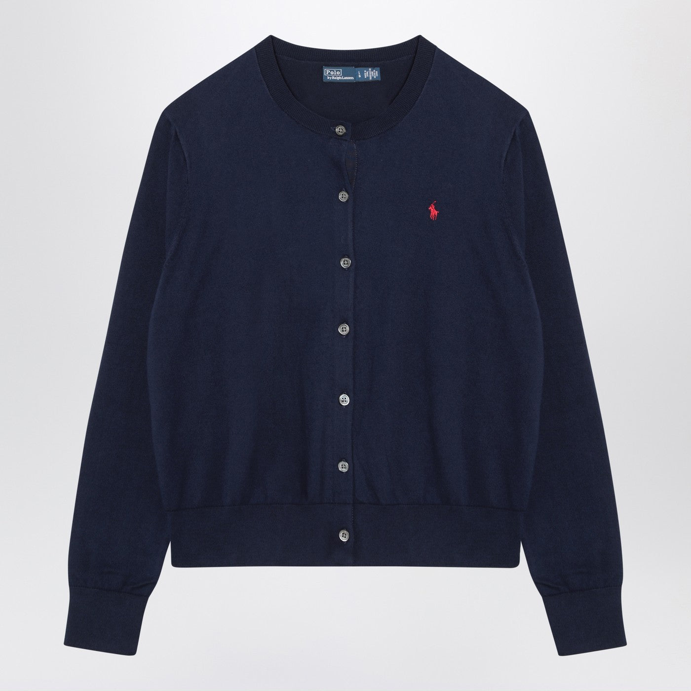 Cardigan by Polo Ralph Lauren in bright navy cotton blend featuring a crew neck design, front button placket, long sleeves, ribbed hems and an embroidered logo on the chest.