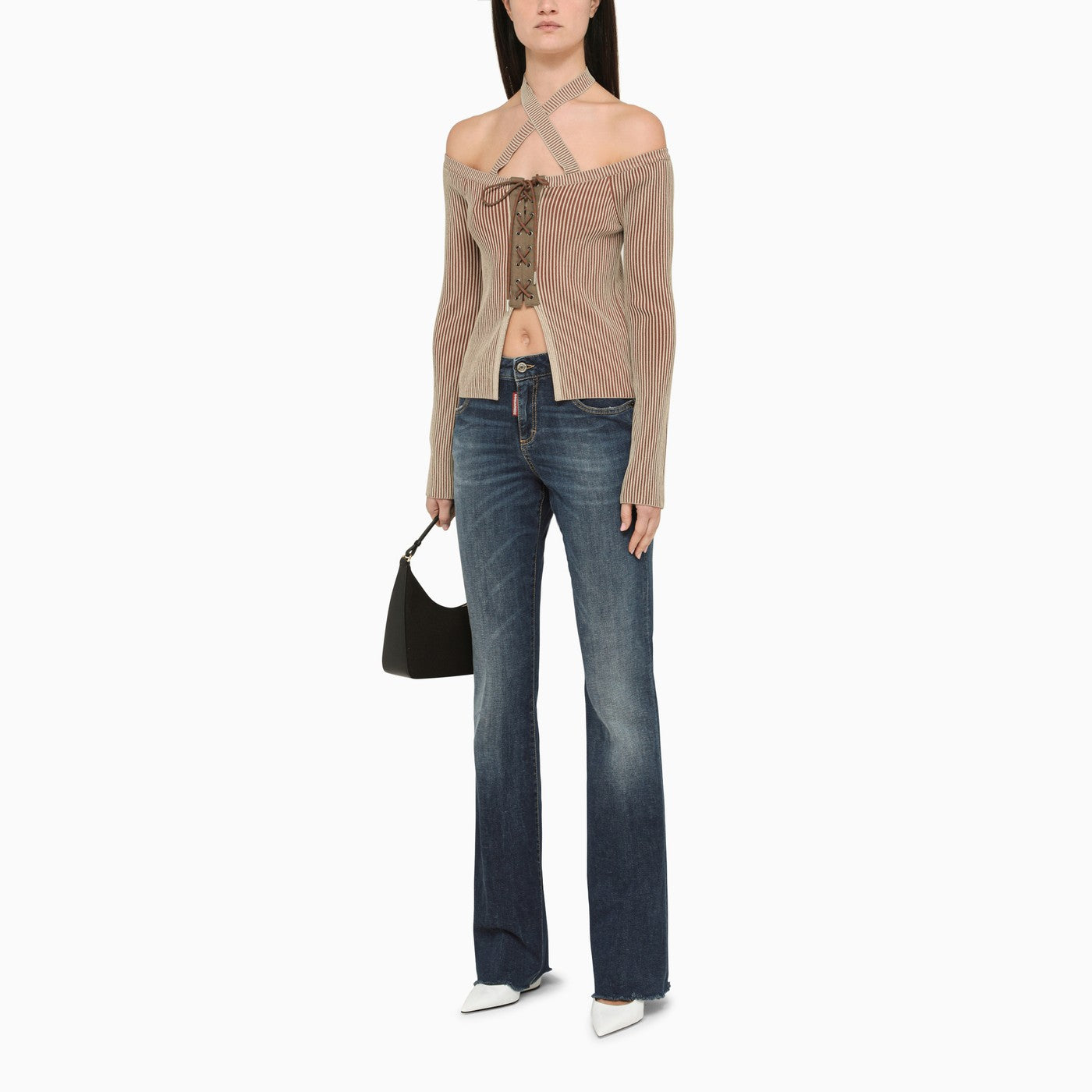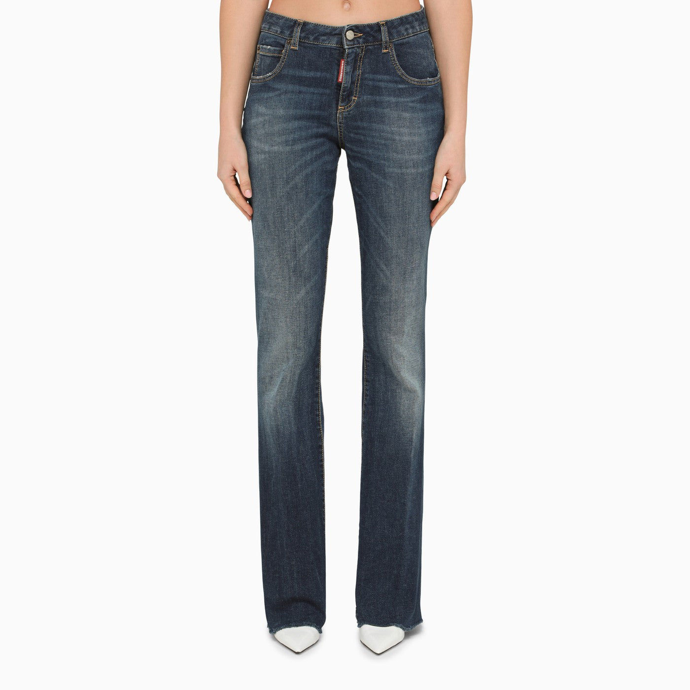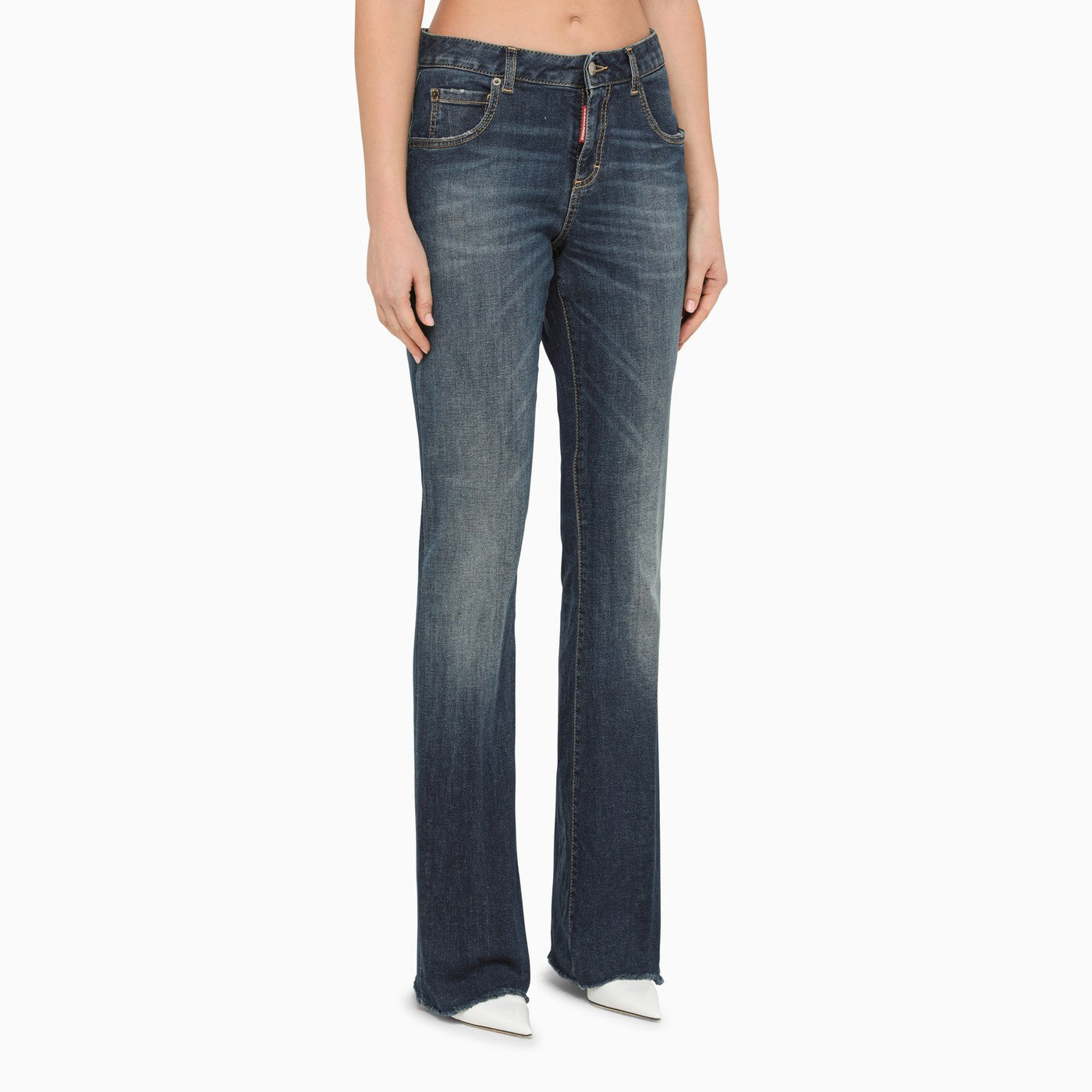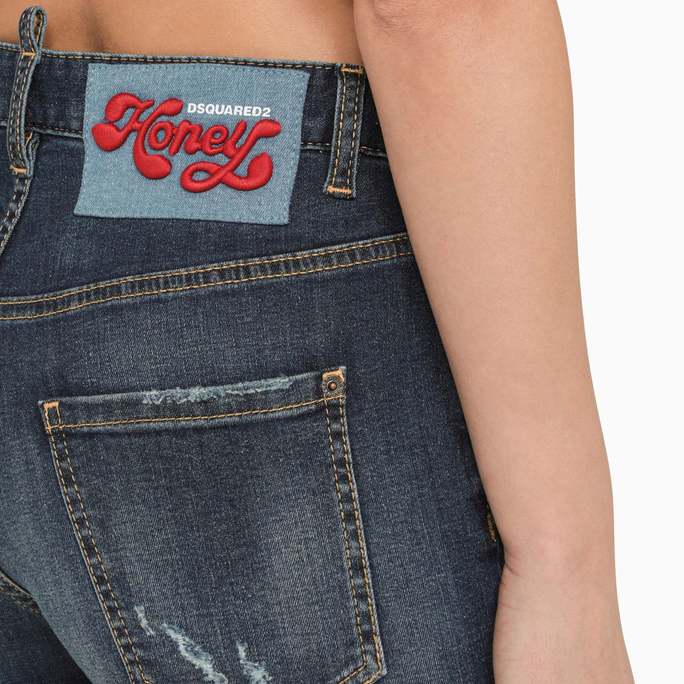 Uitgewassen blauwe katoenen denim jeans van DSquared2 met een middelgrote taille, riemlussen, decoratieve stiksels, drie voorzakken, twee achterzakken, honingpleister gestikt op de achterkant en gelokaliseerde slijtage.