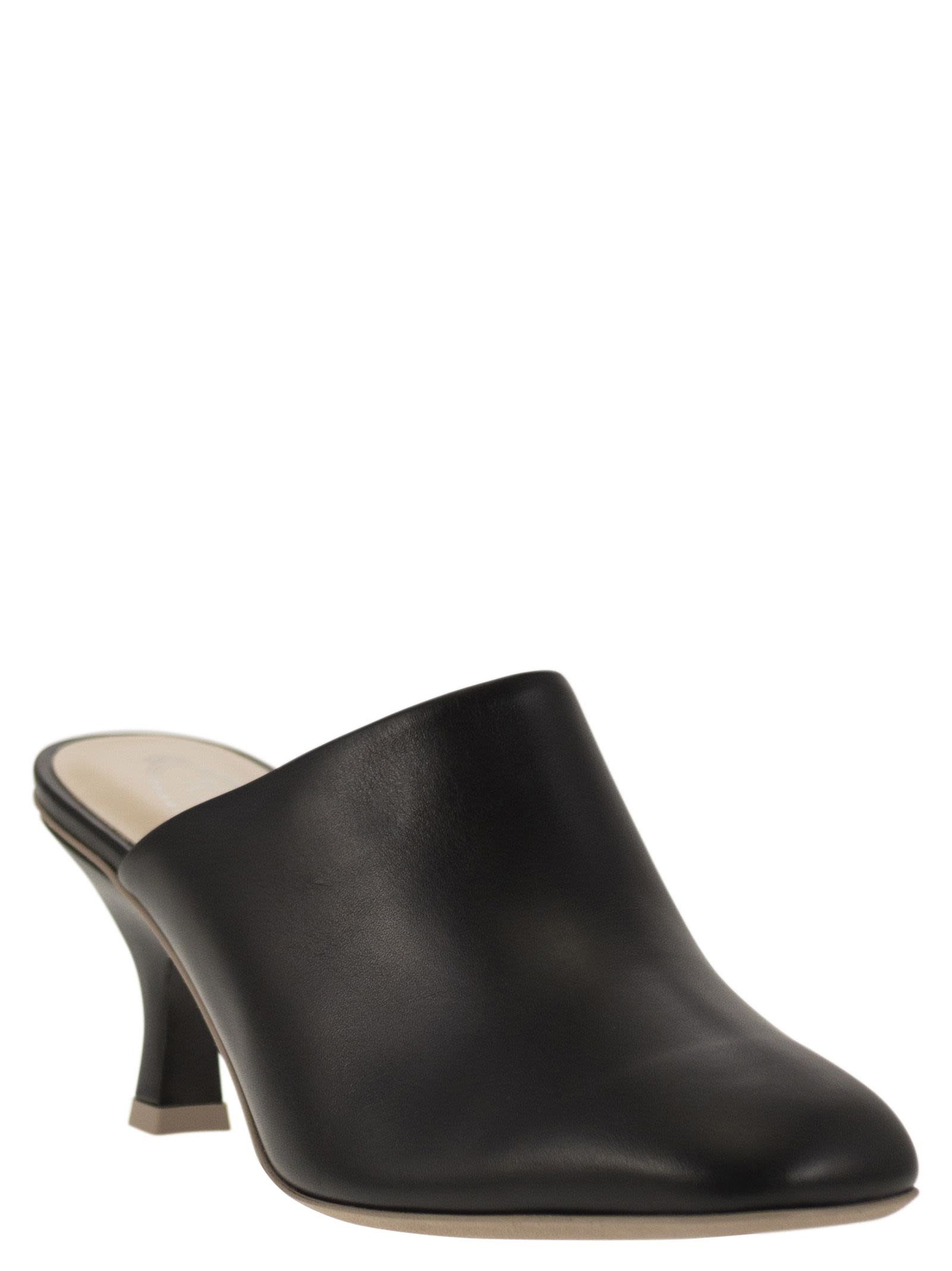 Fijn glad lederen sabot met smalle hiel, zichtbare stiksels en kleur contrasteren met lederen zool. - Gemaakt in Italië - Lederen bovenwerk - Lederen hak met rubber detail - Lederen Sole Designer ID: XXW19L0ij40GOCB999
