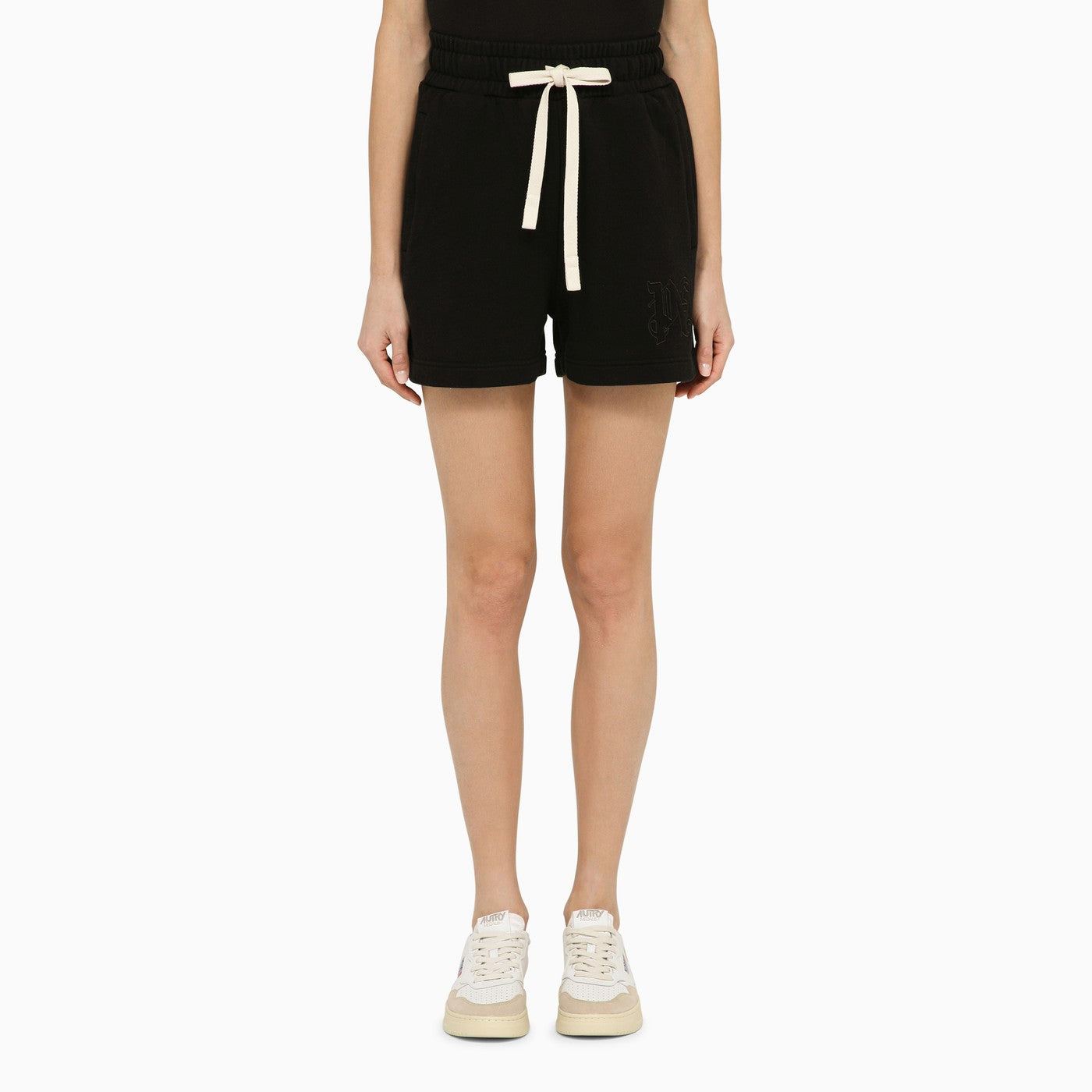 Zwarte katoenen shorts door palm engelen met een elastische tailleband met trekkoord, toon-op-tone geborduurd logo aan de voorkant, twee zijzakken en een achterste patchzak met een klein logo-plaque.