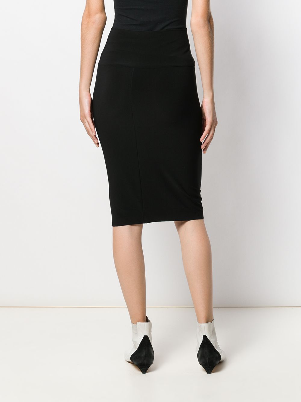 Zwarte middenlengte buis-snelkir van Norma Kamali met een gepast silhouet, stretch fit en dikke tailleband.