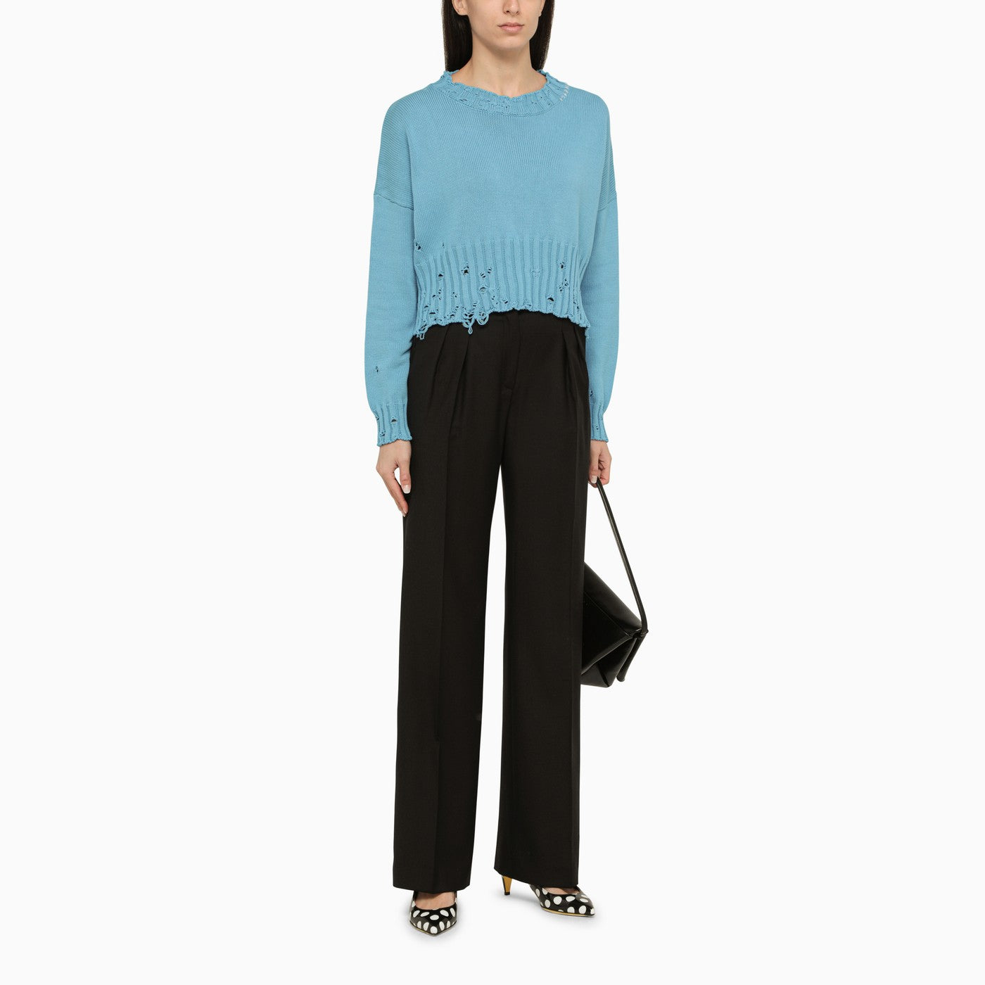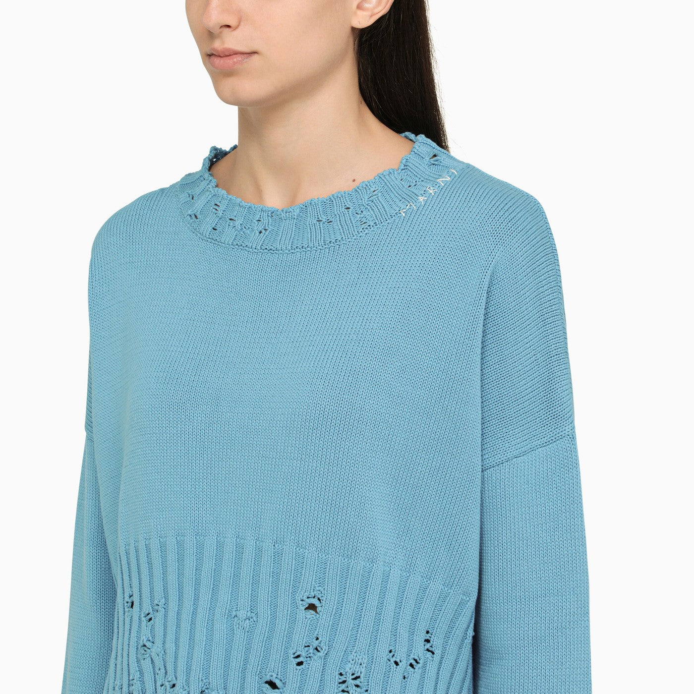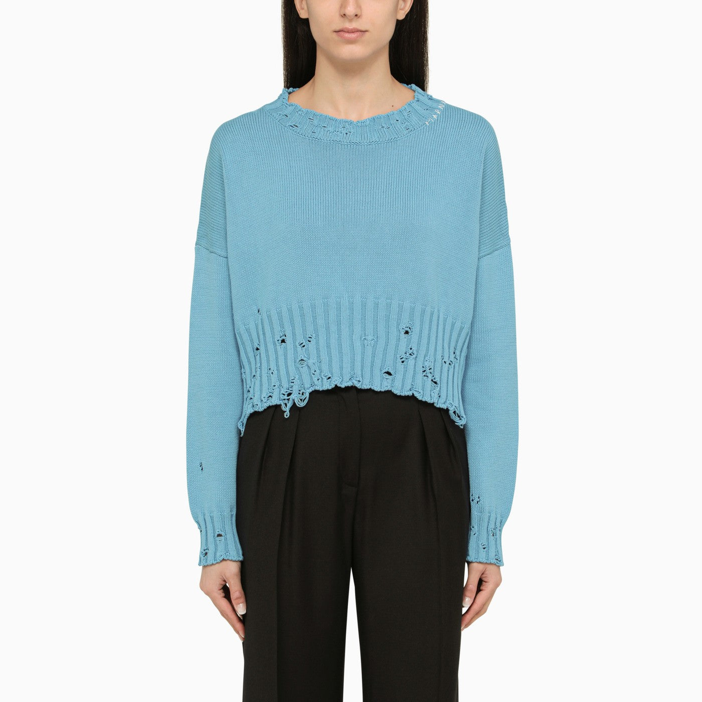 Lichtblauwe katoenen crew-hals trui van Marni met handgestikte kraag, versleten effectdetails en een enigszins bijgesneden pasvorm.
