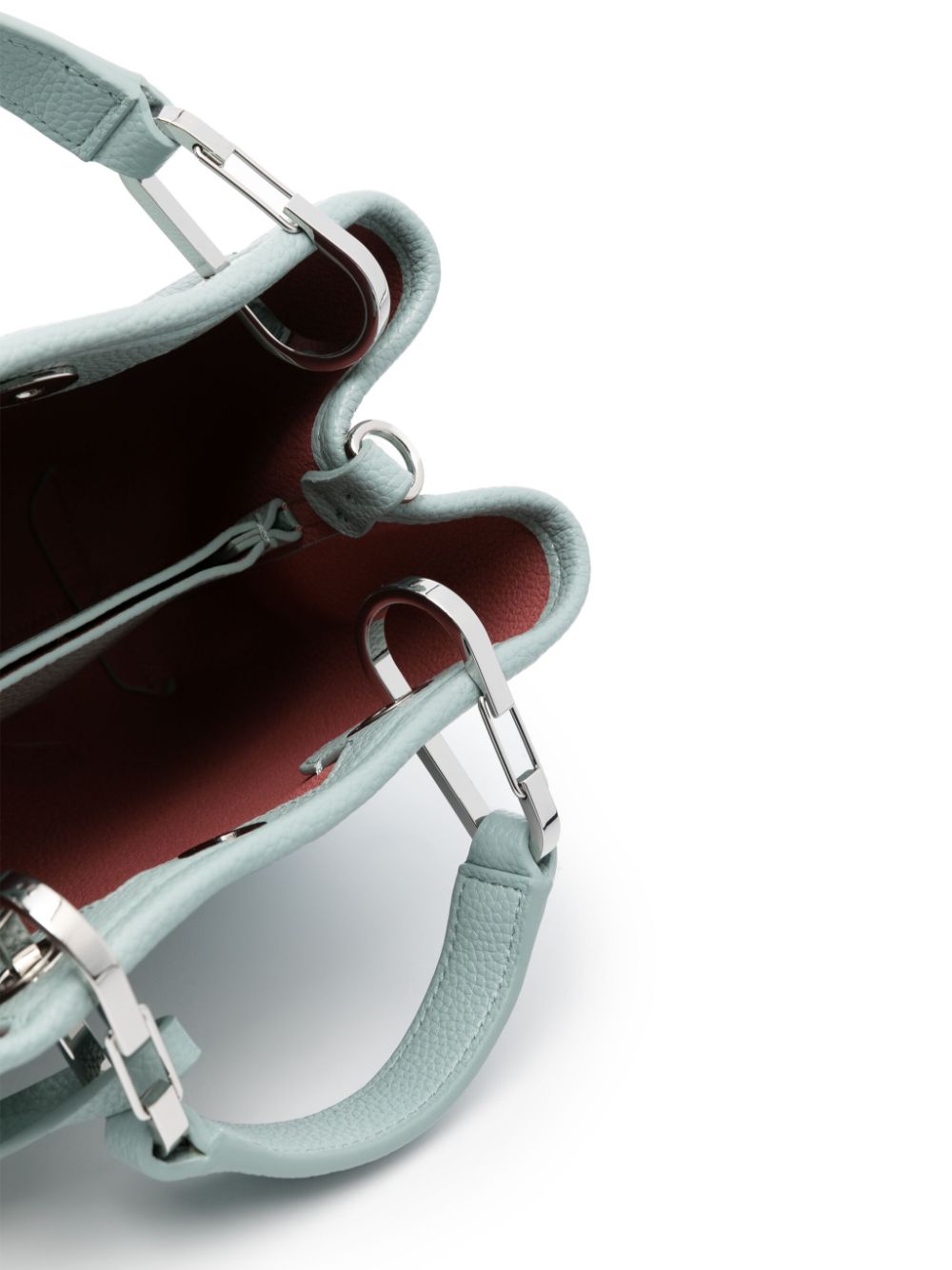 blauw/blush roze faux lederen korrelige textuurstreep details aan de riem debosseerde logo naar de voorste logo-gegraveerde zilvertone hardware logo-print riem magnetische bevestiging -Leervoering
