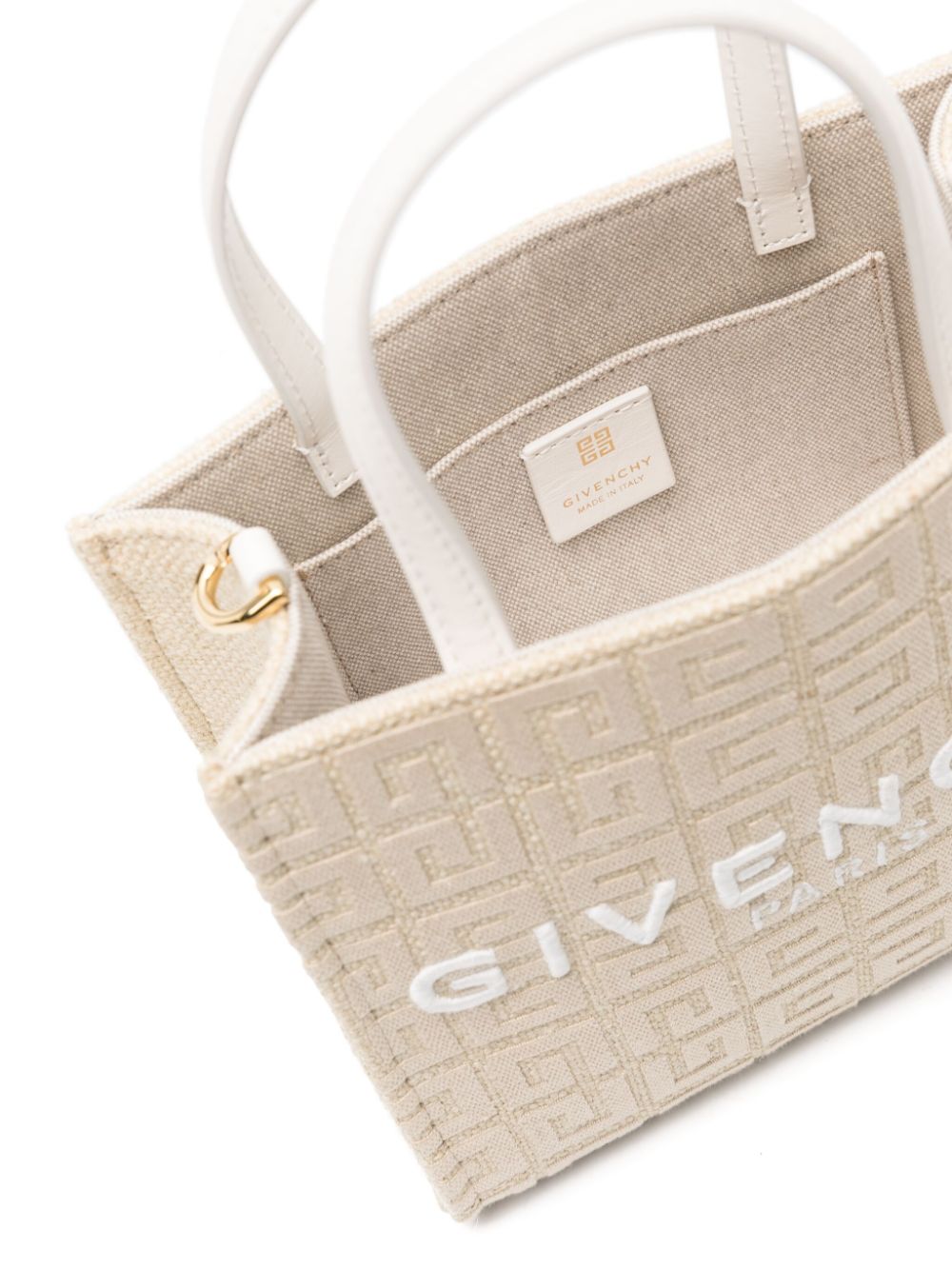 Licht beige canvas Signature 4G Motif LASERED PATROON BORGRUIDERED LOGO NAAR DE VOOR OPEN TOP TOM TWEE VLOTE TOP HANDGREEVEN Verstelbare afneembare schouderband Main Compartiment Interne slipzak Interne Logo Patch Canvas LIN GOUD TONE HARDWARE Dit stuk is compleet met een beschermende stofzak.