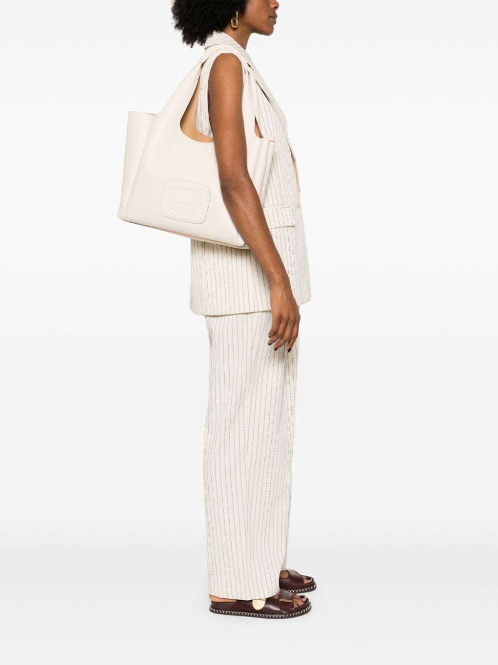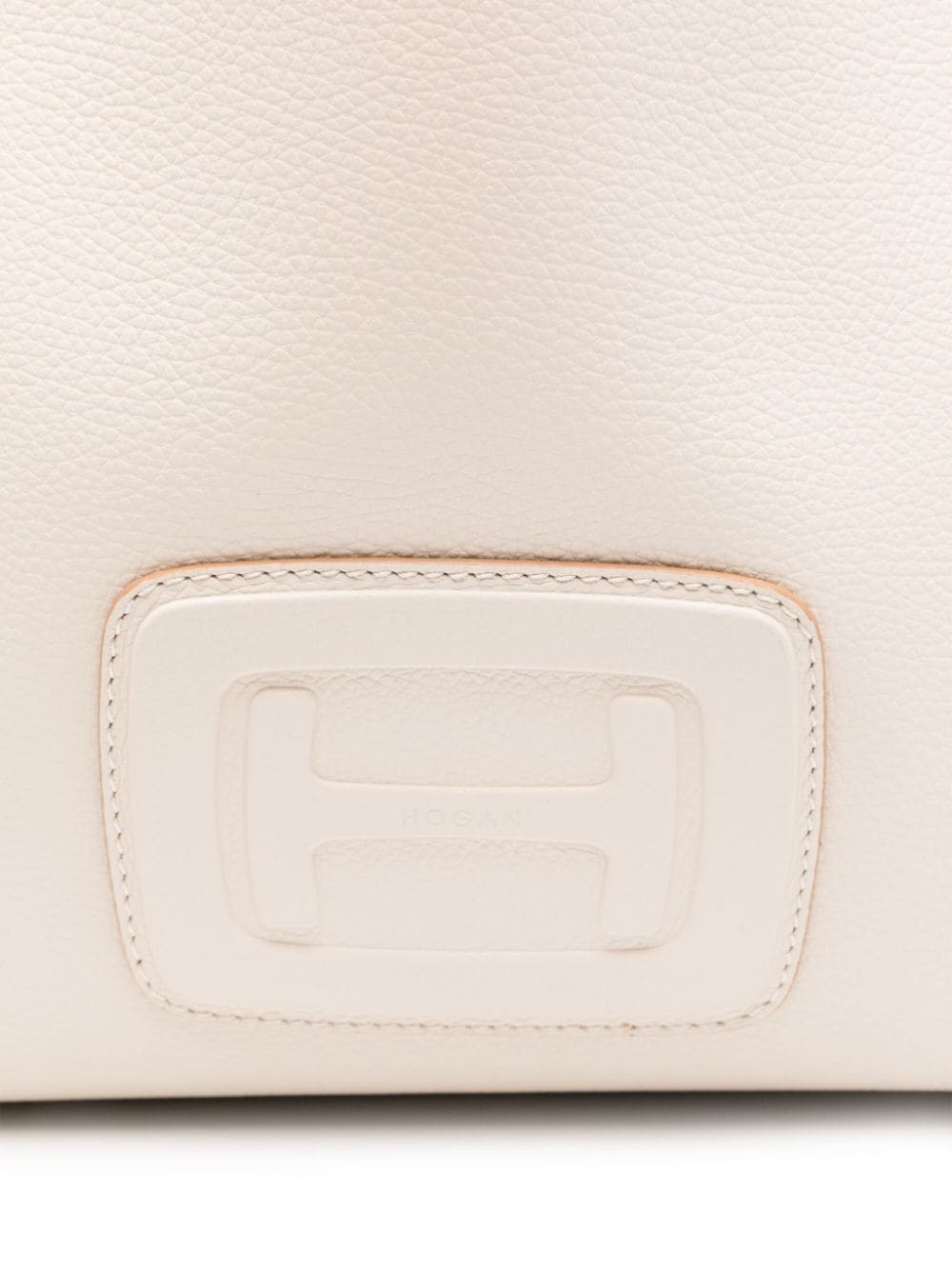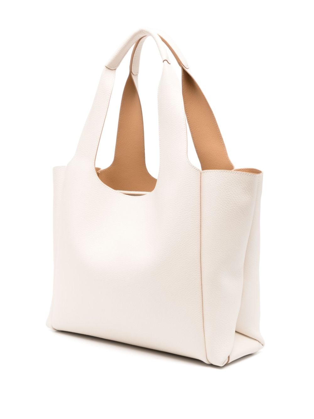 Beige kuitleren kiezelige textuur rechthoek body twee platte bovenste handgrepen logo patch naar de voorkant gepartitioneerd compartiment interne logo stempel interne zip-snelle pocket open top Dit stuk wordt compleet geleverd met een beschermende stofzak.