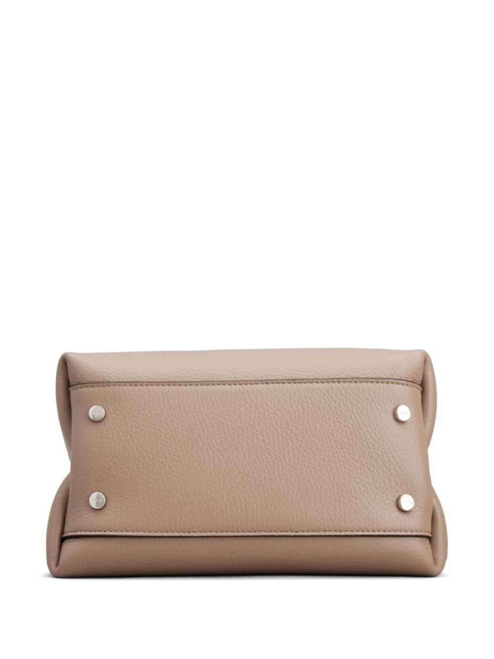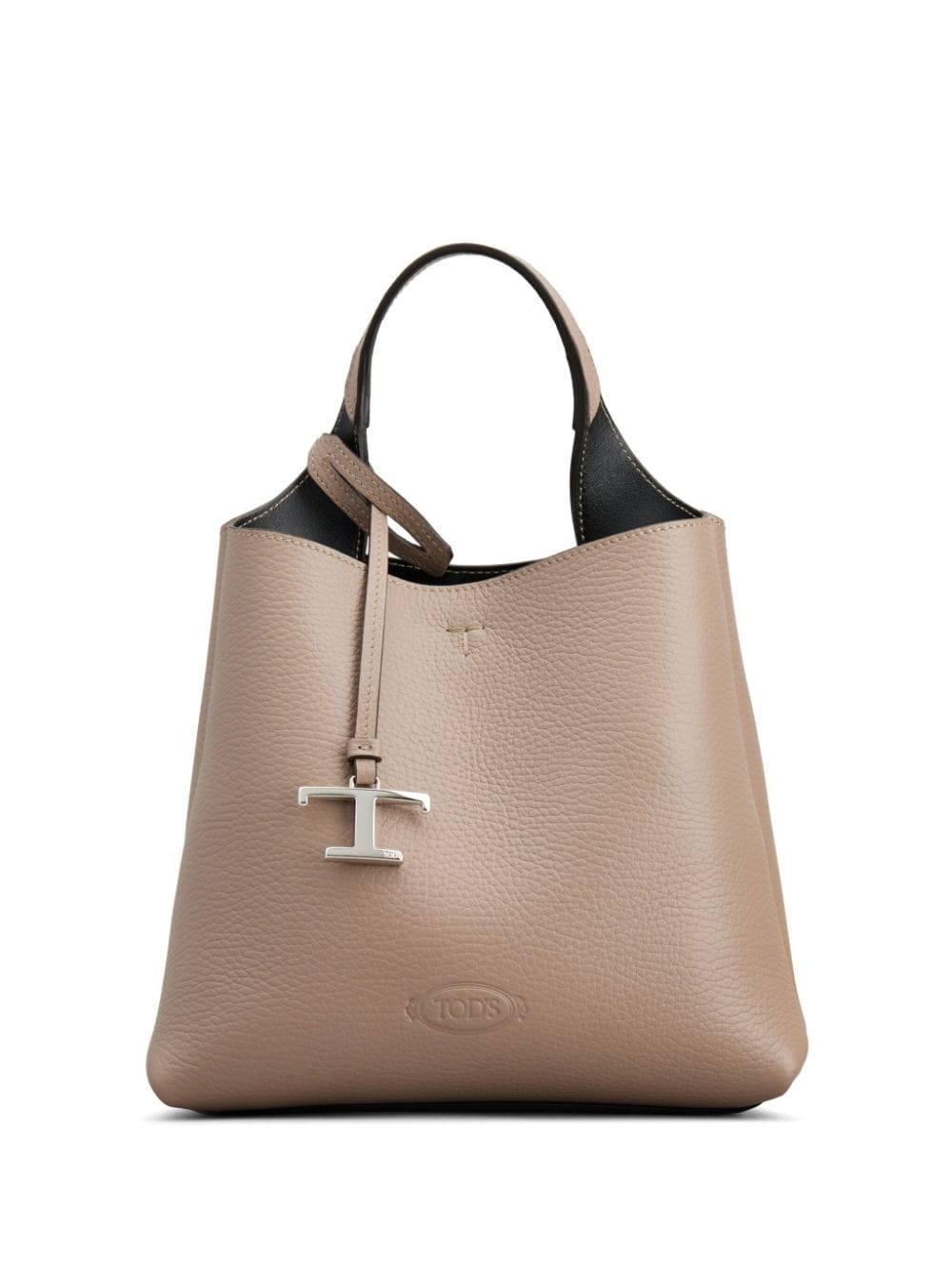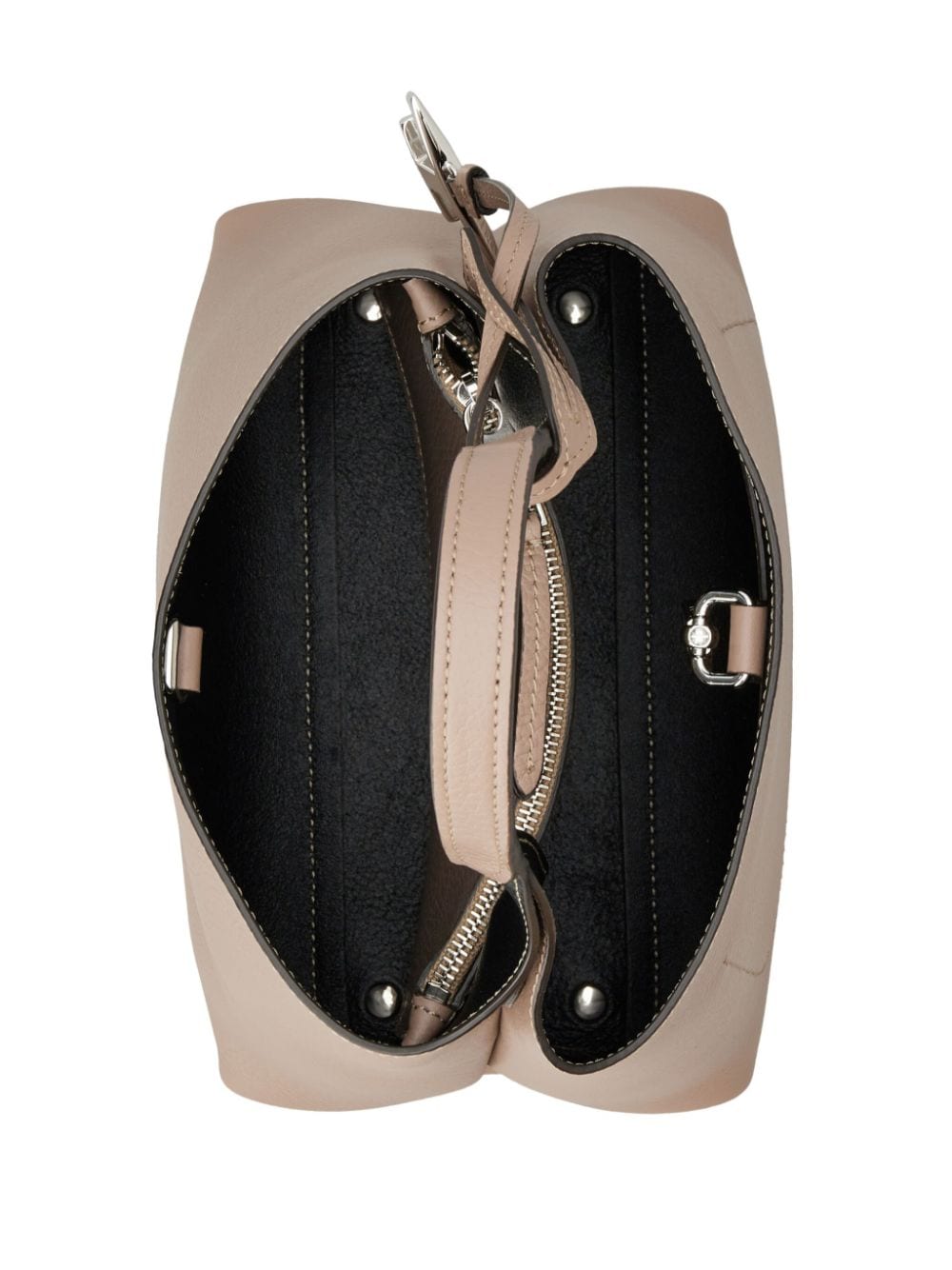 Beige kuitleren korreltextuur Debossed logo aan het voorste logo hanger kreeft klauw klauw bevestigen twee platte bovenste handgrepen verstelbare afneembare schouderband gepartitioneerde compartiment interne zip-snelle pocket logo-gegraveerde metalen voeten onbetrouwde zilveren ton hardware hardware
