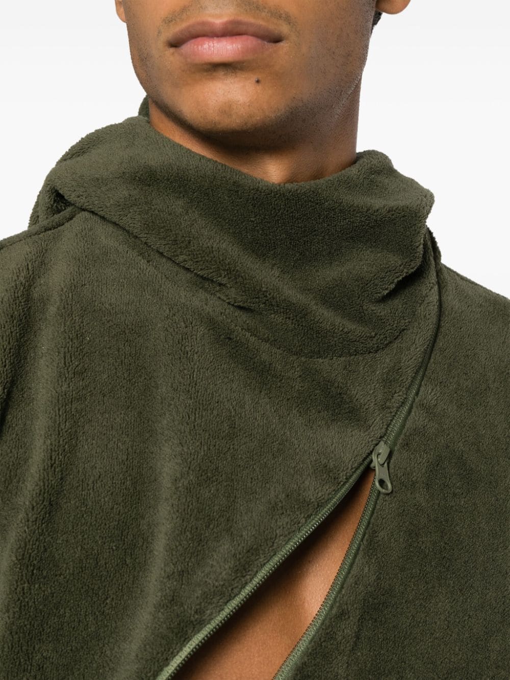 olijfgroene fleece textuur geborsteld effect slouchy cood drop schouder asymmetrische tweerichtingszip zip-fasterende lange mouwen elastische manchetten elastische zoom