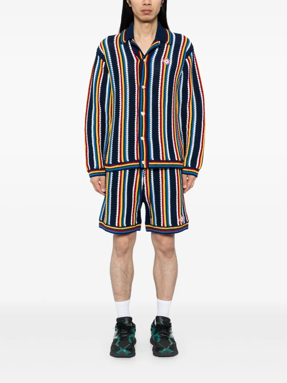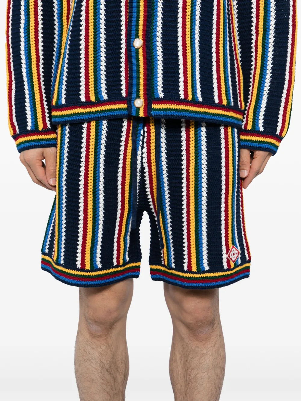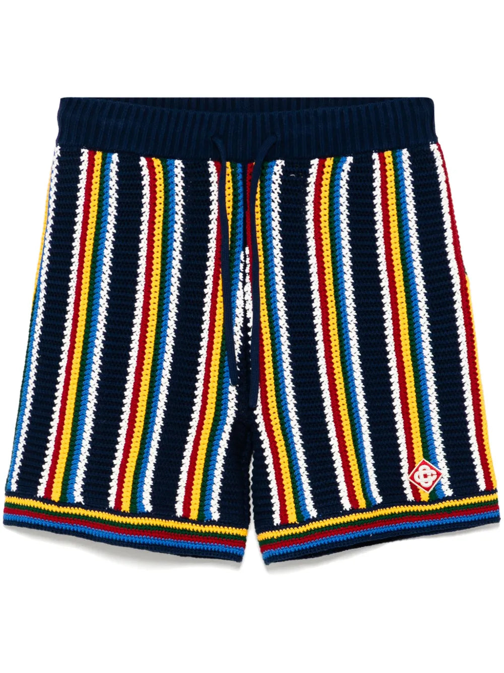 Casablanca shorts met logo -kenmerken marineblauw Drawstring Sluiting Front Toepassing met logo rechte zoom Samenstelling Katoen 96%, Polyamide 3%, Elastaan 1%Wasinstructies Handwasmerk ID: MPS25 KW83701