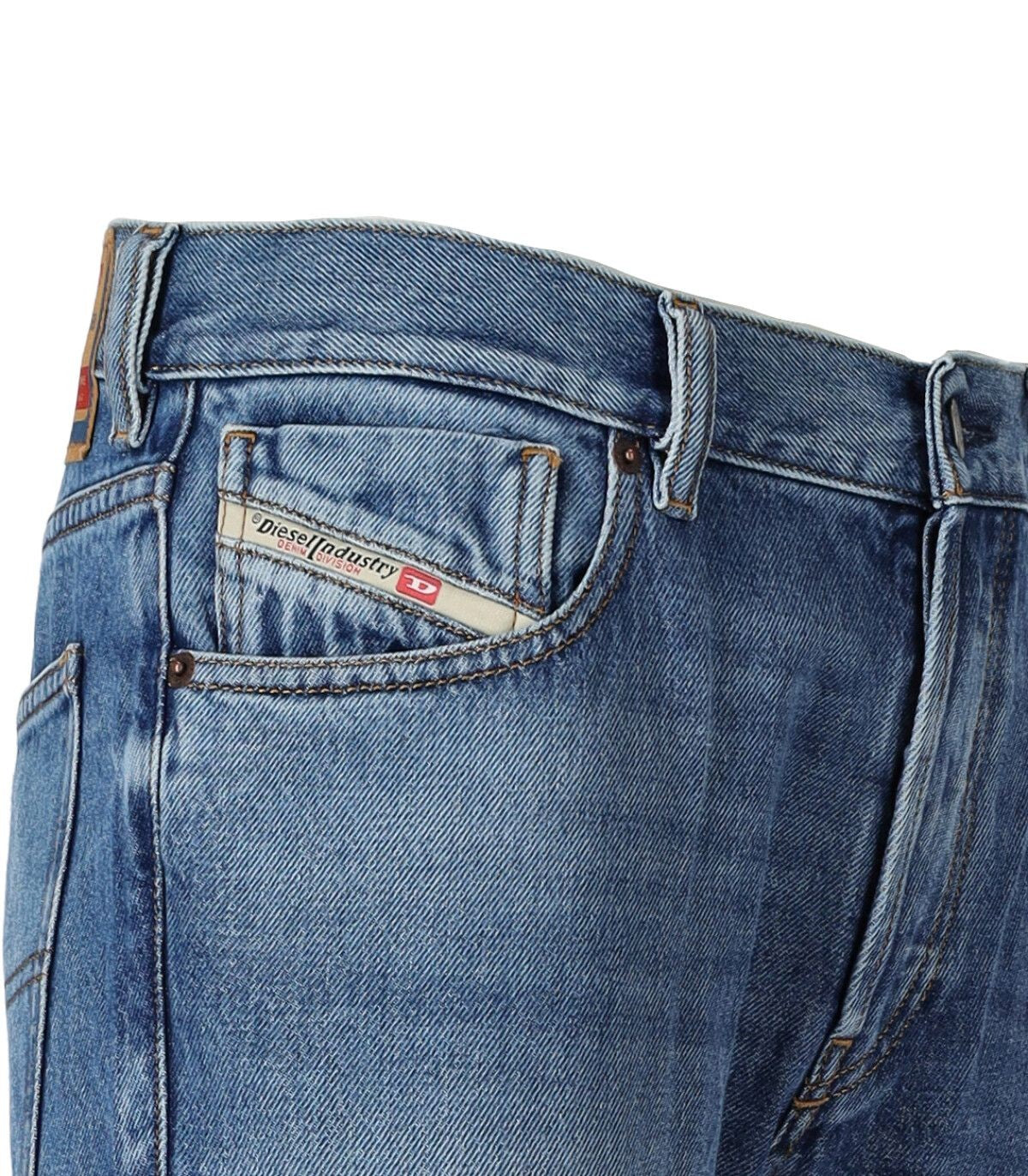 Diesel jeans gemaakt van lichte washenim, met 5 zakken en flap met knopen. Slim fit, middelgrote taille en rechte been. Lengte 32. Samenstelling: 100% katoen.