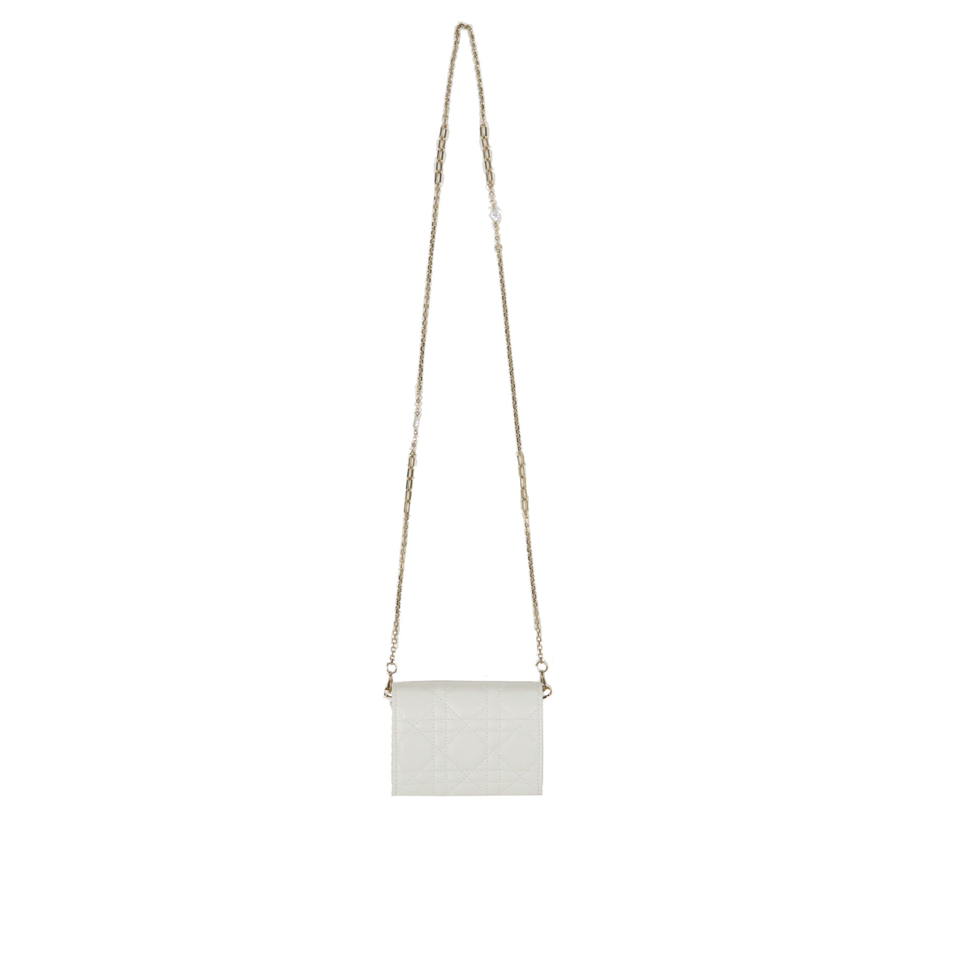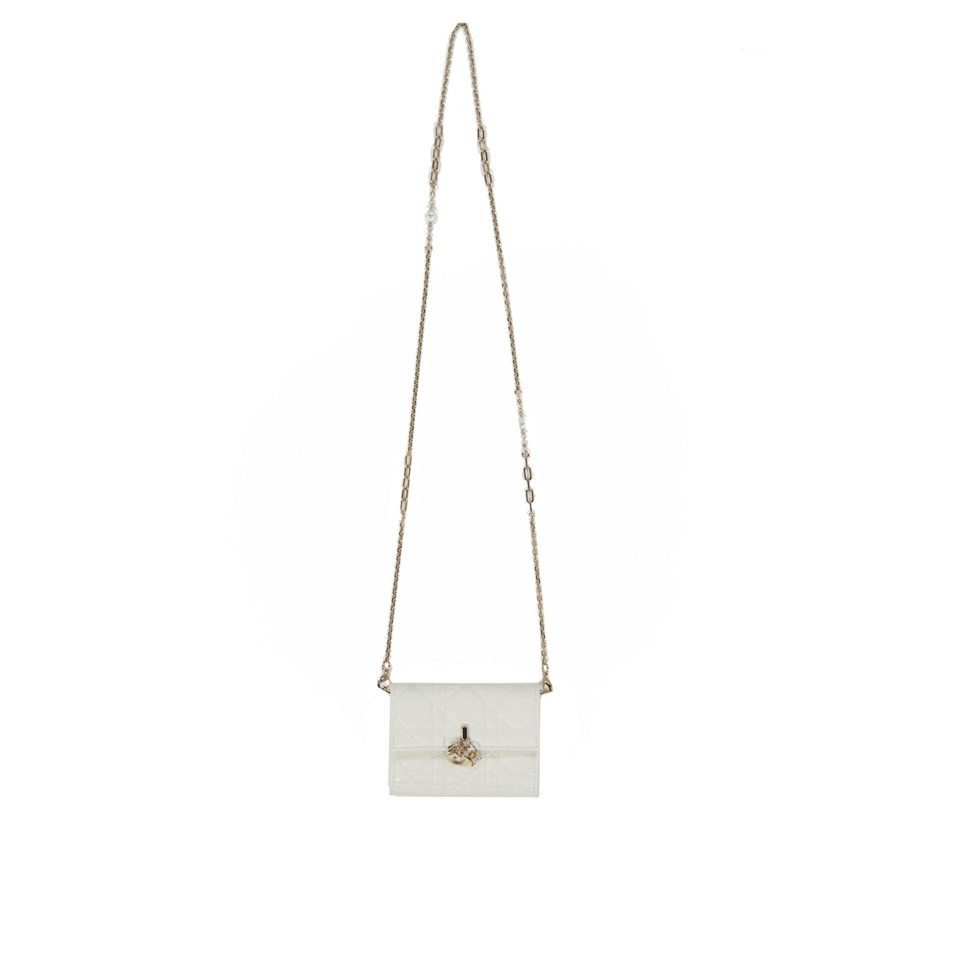 - Samenstelling: 100% kuitleer - Voering: leer - Hoofdcompartiment - Verwijderbare kettingband - Twee kaartsleuf - Klap Topknop Sluiting - Eén ritssluiting binnen - verfraaid met D.I.O.R. Charms - gemaakt in Italië -